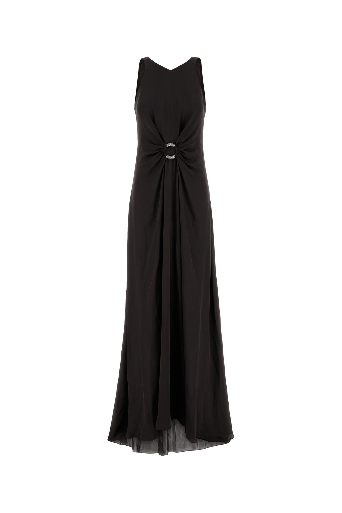 Long dress realized in pure silk crepe enriched by jewel embellishment at the waist.