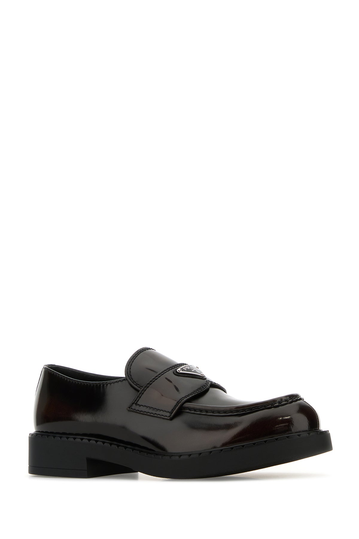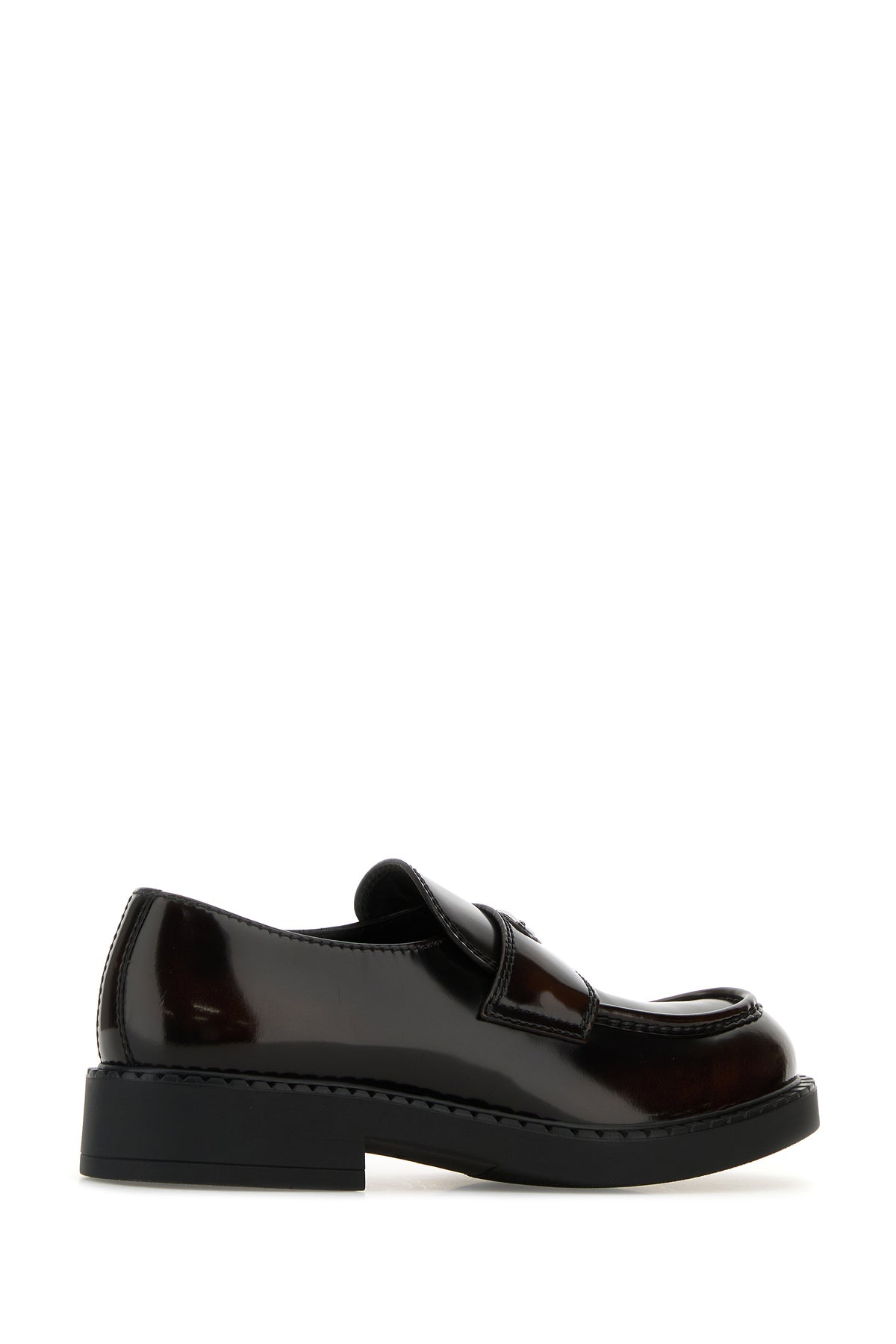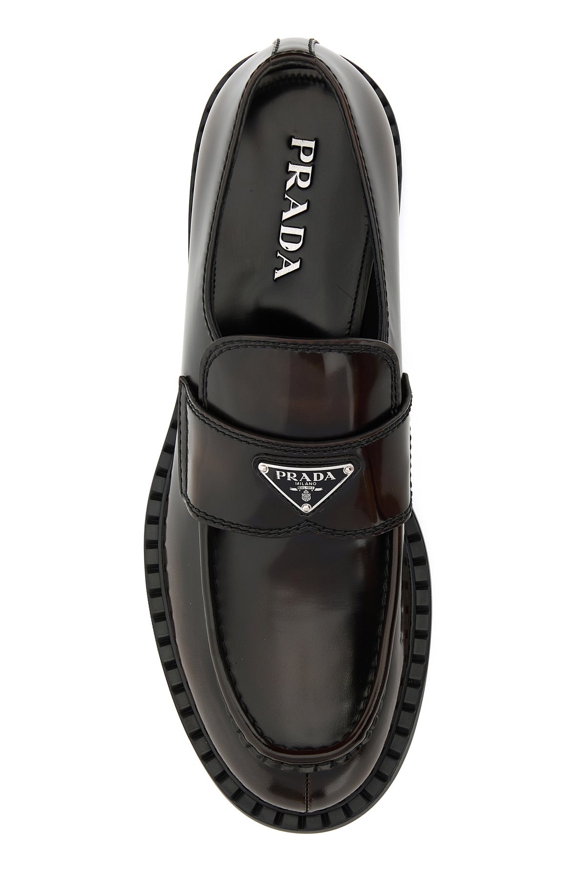 Loafers realized in polished-finish leather enriched by metal iconic logoed triangle on the vamp.