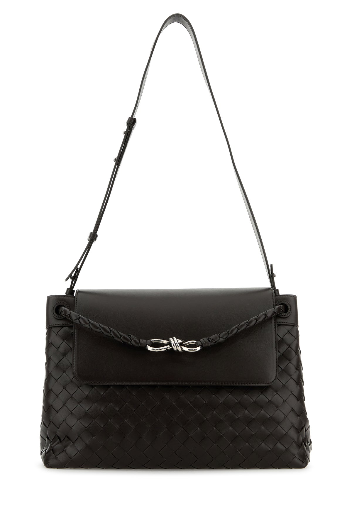 Handbag realized in calf leather characterized by iconic Intrecciato motif on the entire surface.