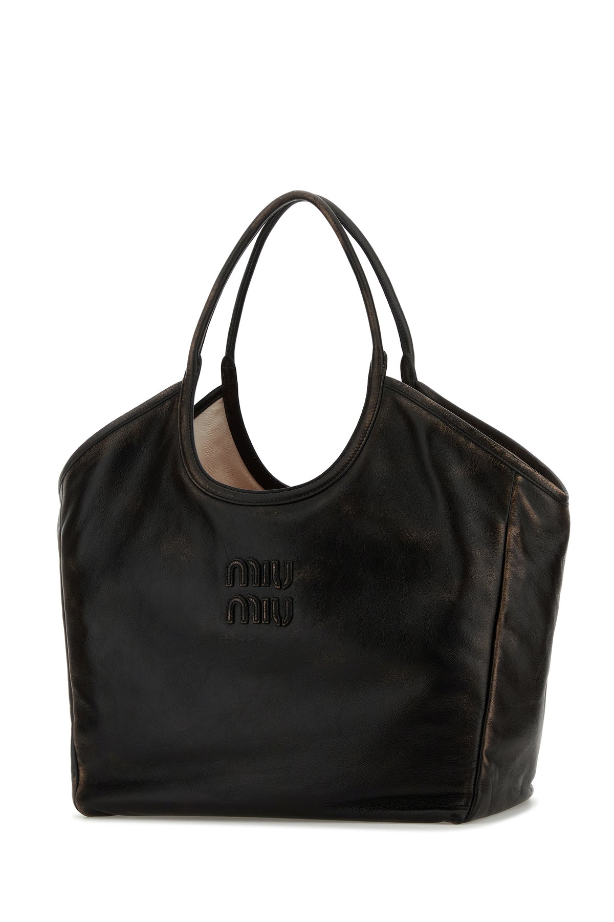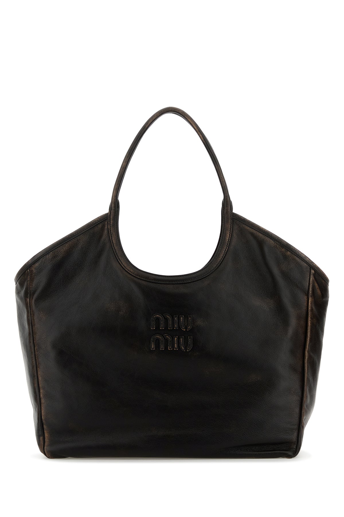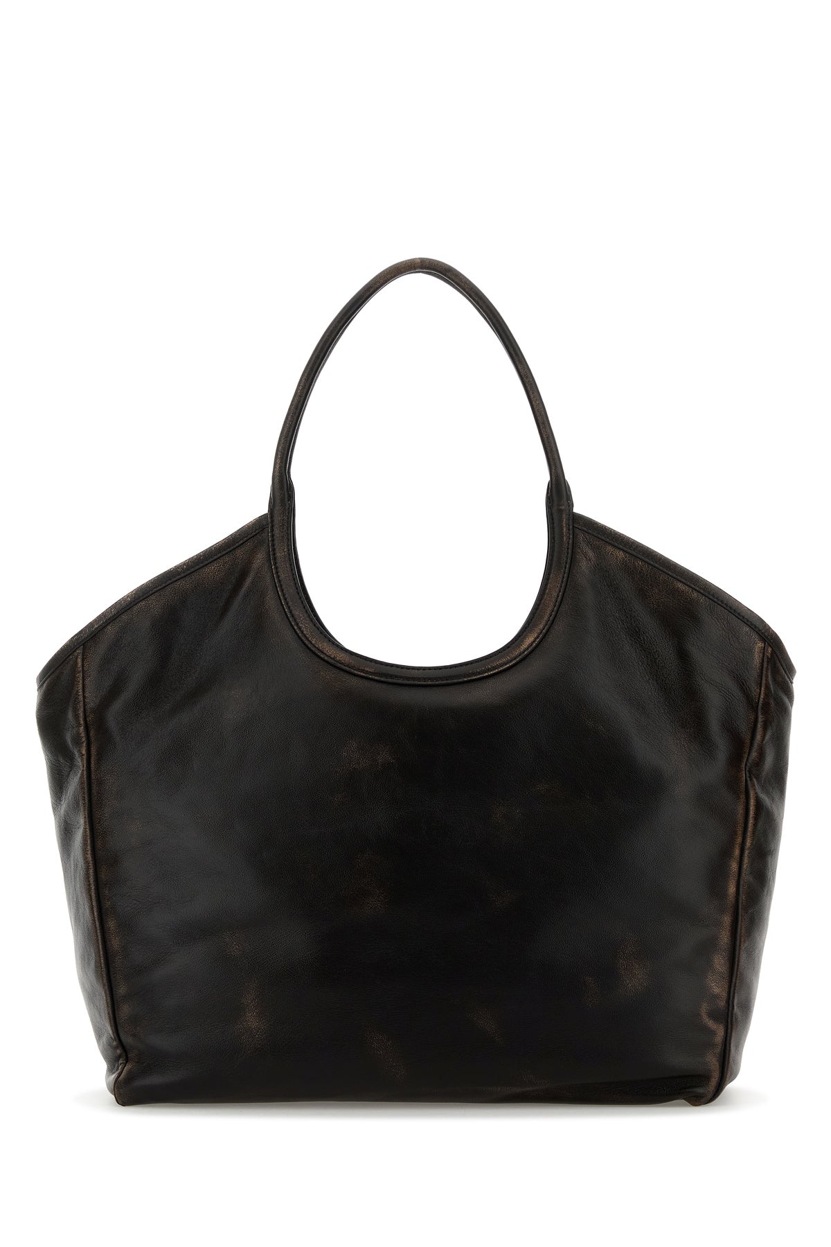Handbag realized in vintage effect leather enriched by tonal leather logoed patch at the front.