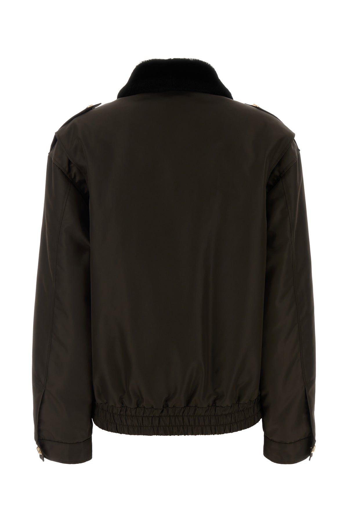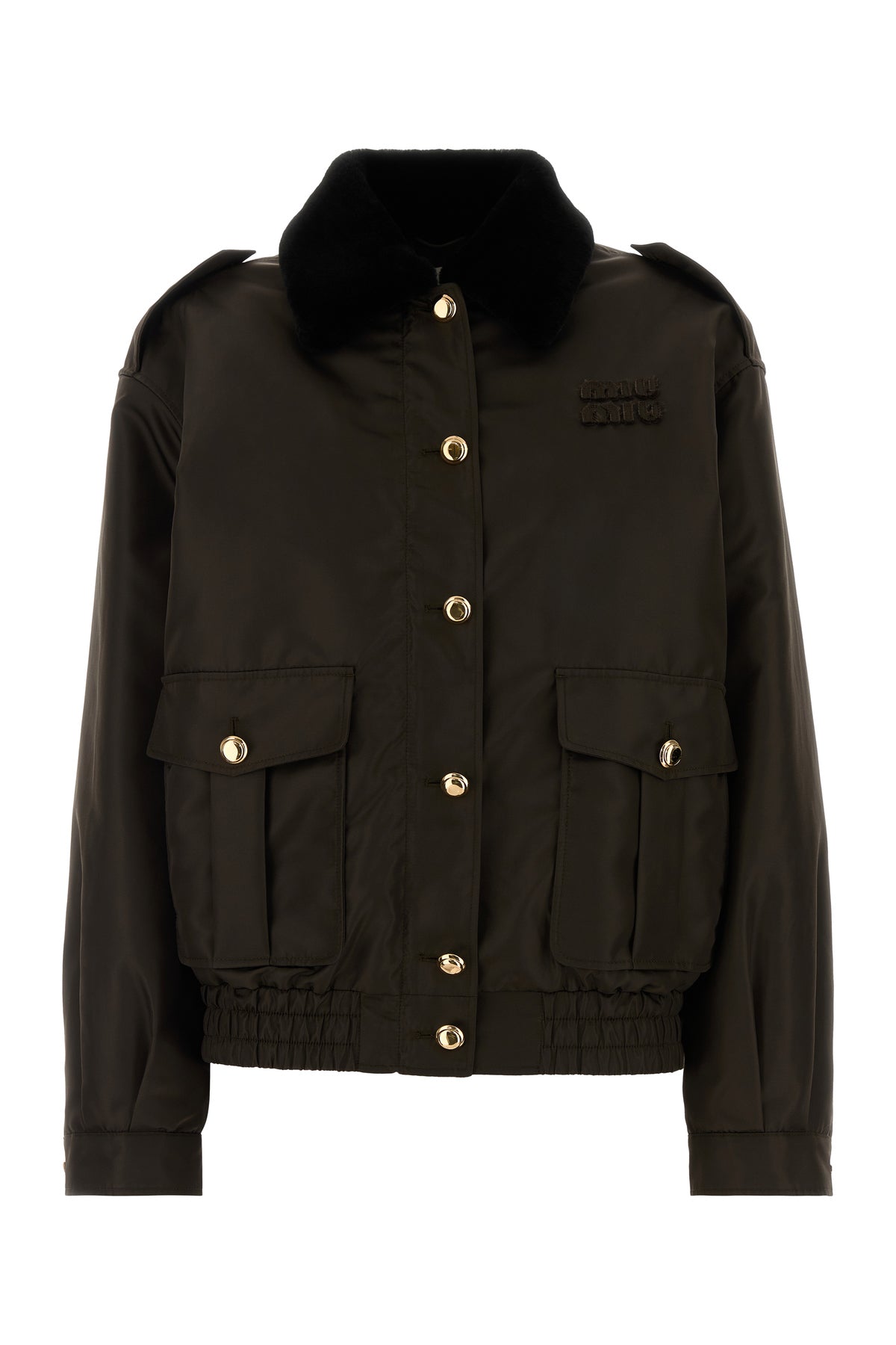 Padded jacket realized in recycled nylon enriched by tonal logoed patch on the chest.
