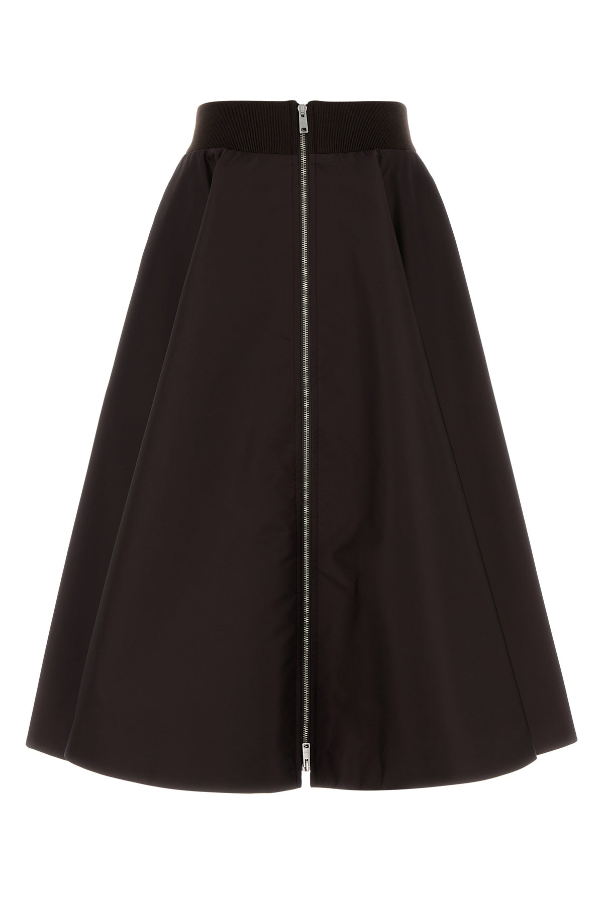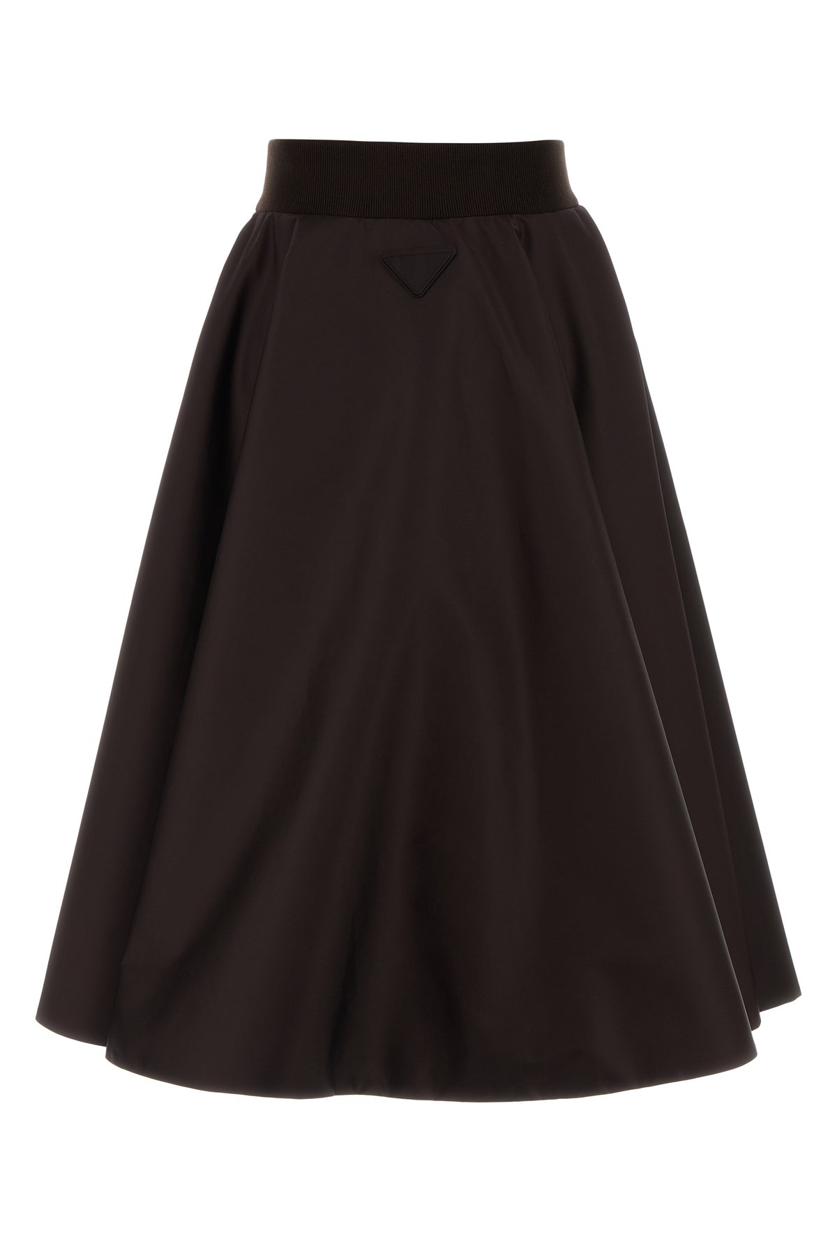 Midi-length skirt realized in Re-Nylon enriched by tonal fabric iconic triangle at the back.