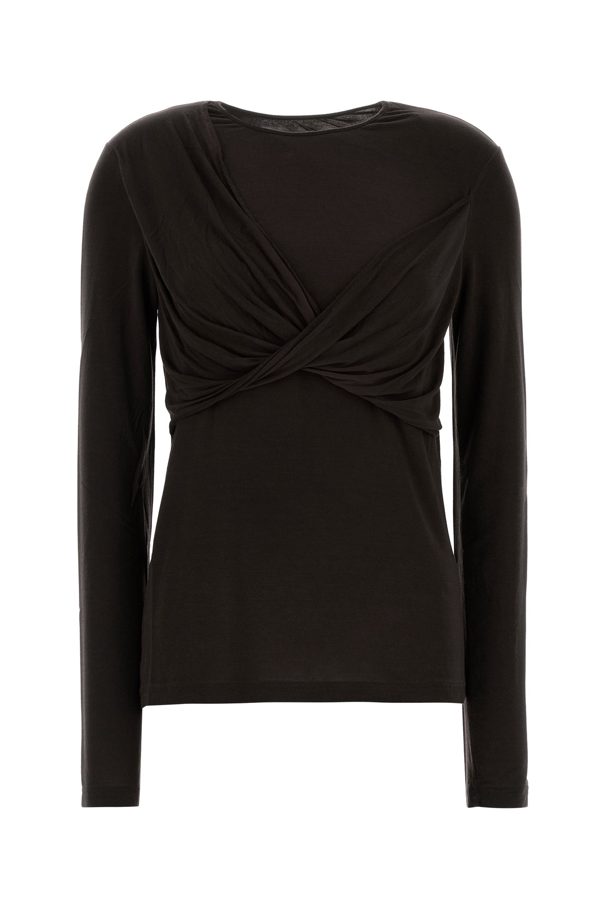 Long-sleeves t-shirt realized in stretch modal with tonal fabric insert on the chest.