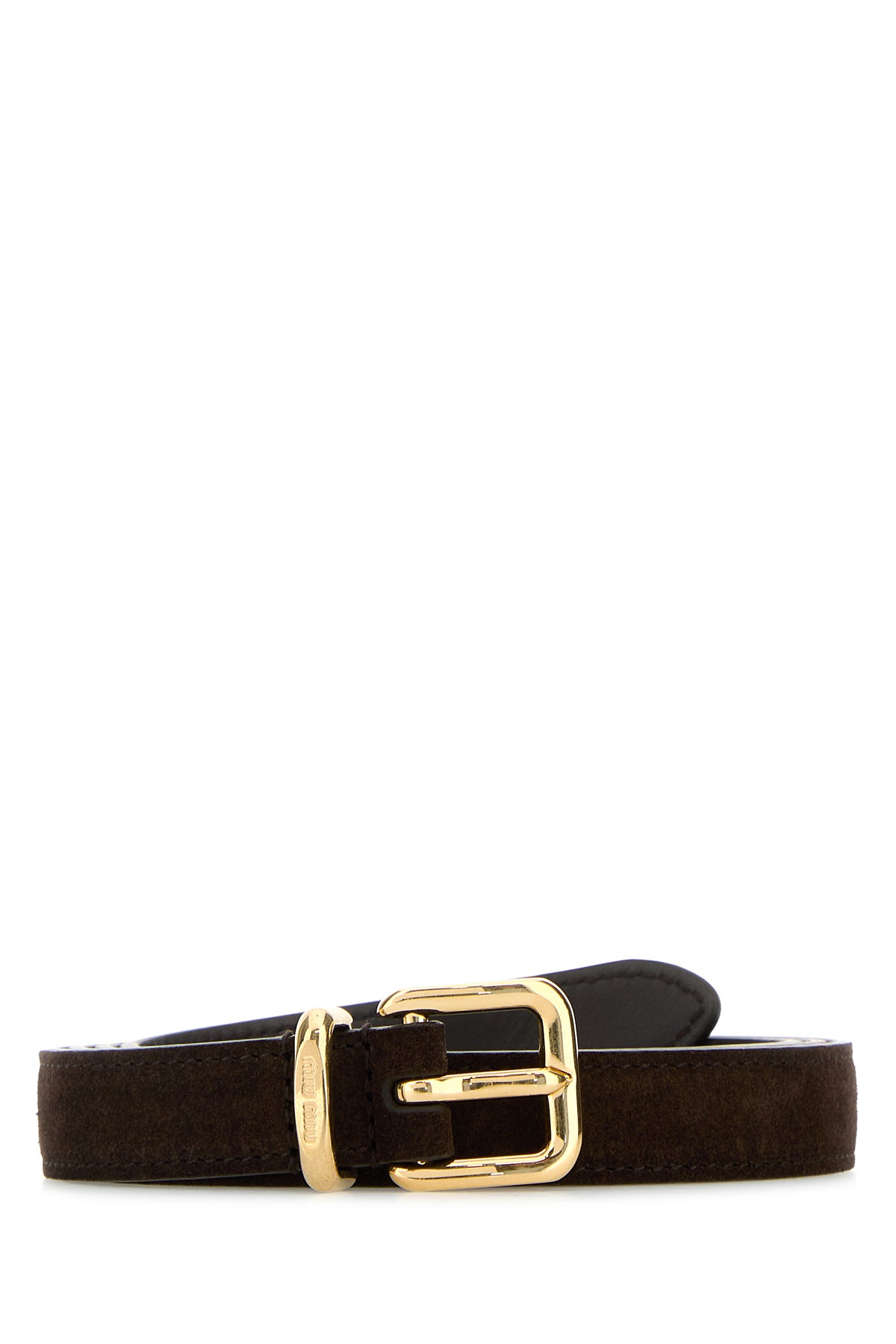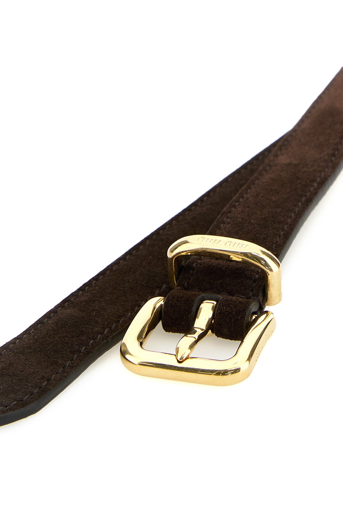 Belt realized in suede characterized by embossed logo on the belt keeper.