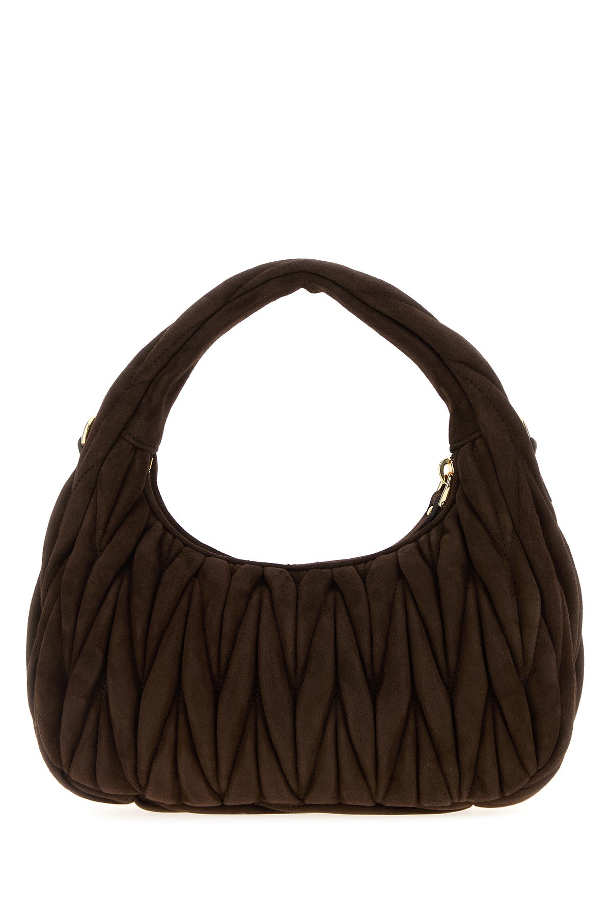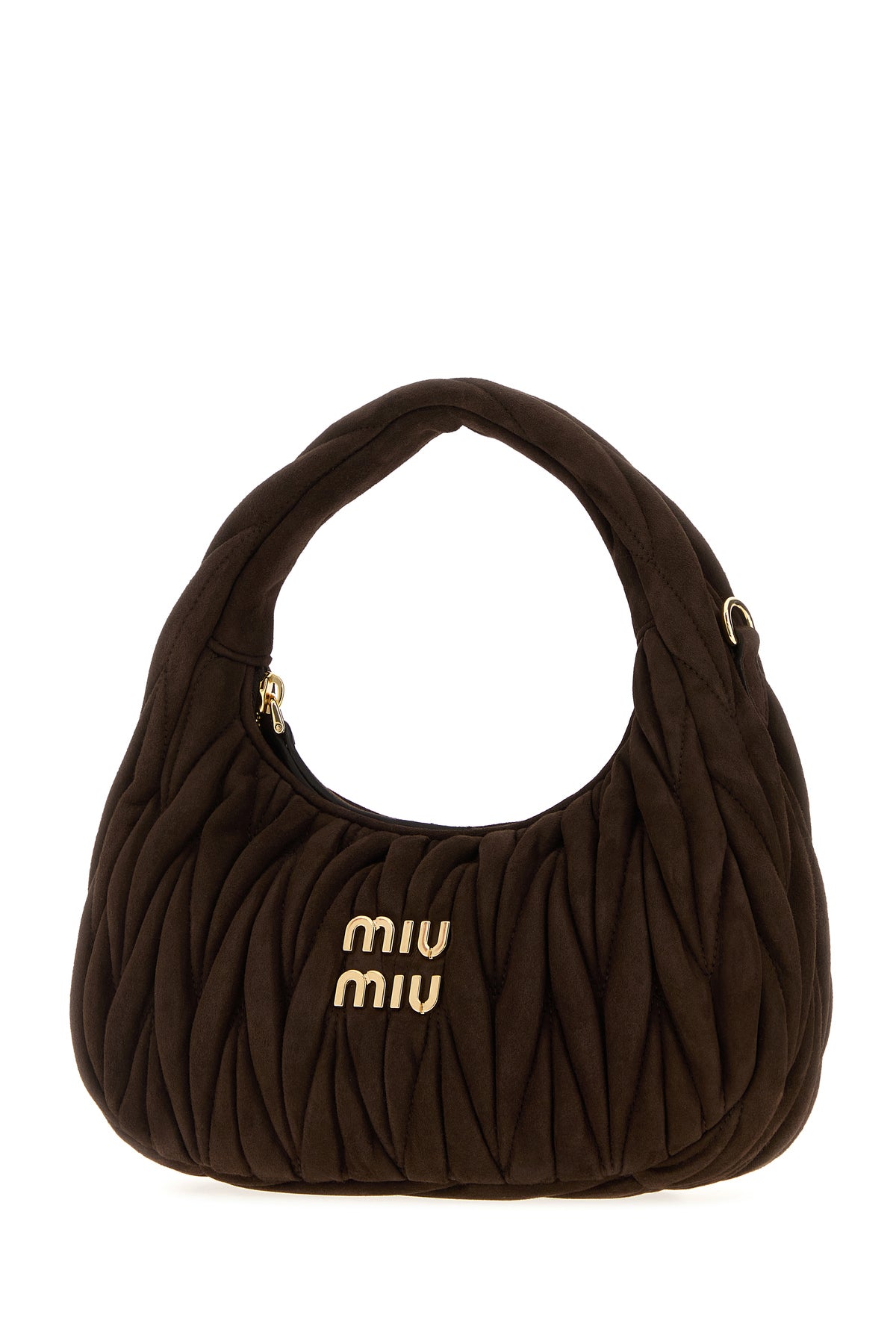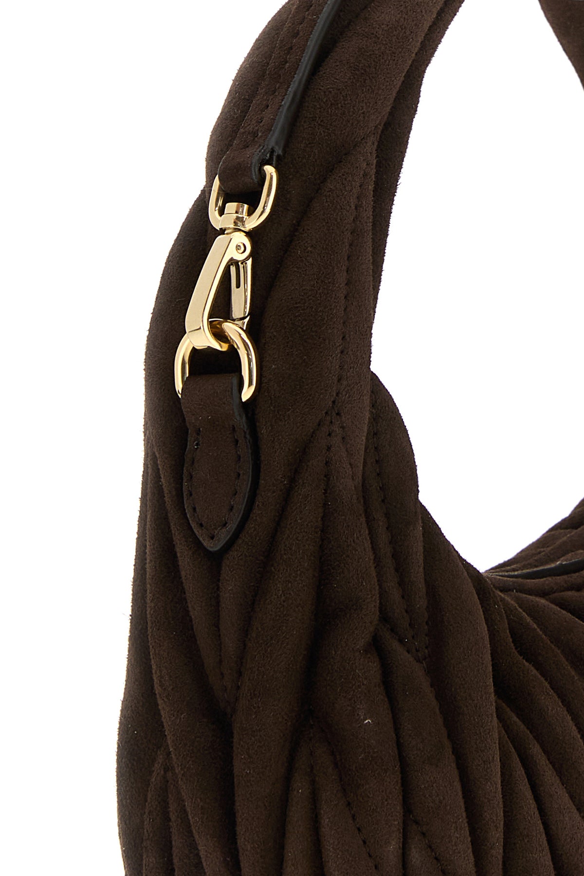 Handbag realized in matelasse suede enriched by metal lettering logo at the front.