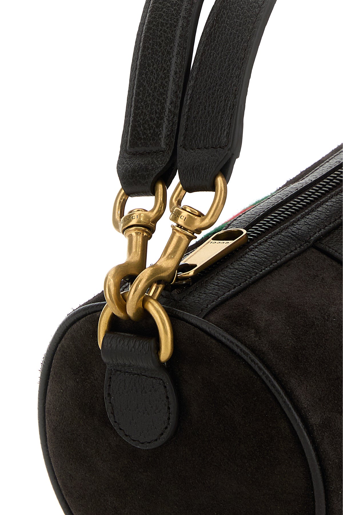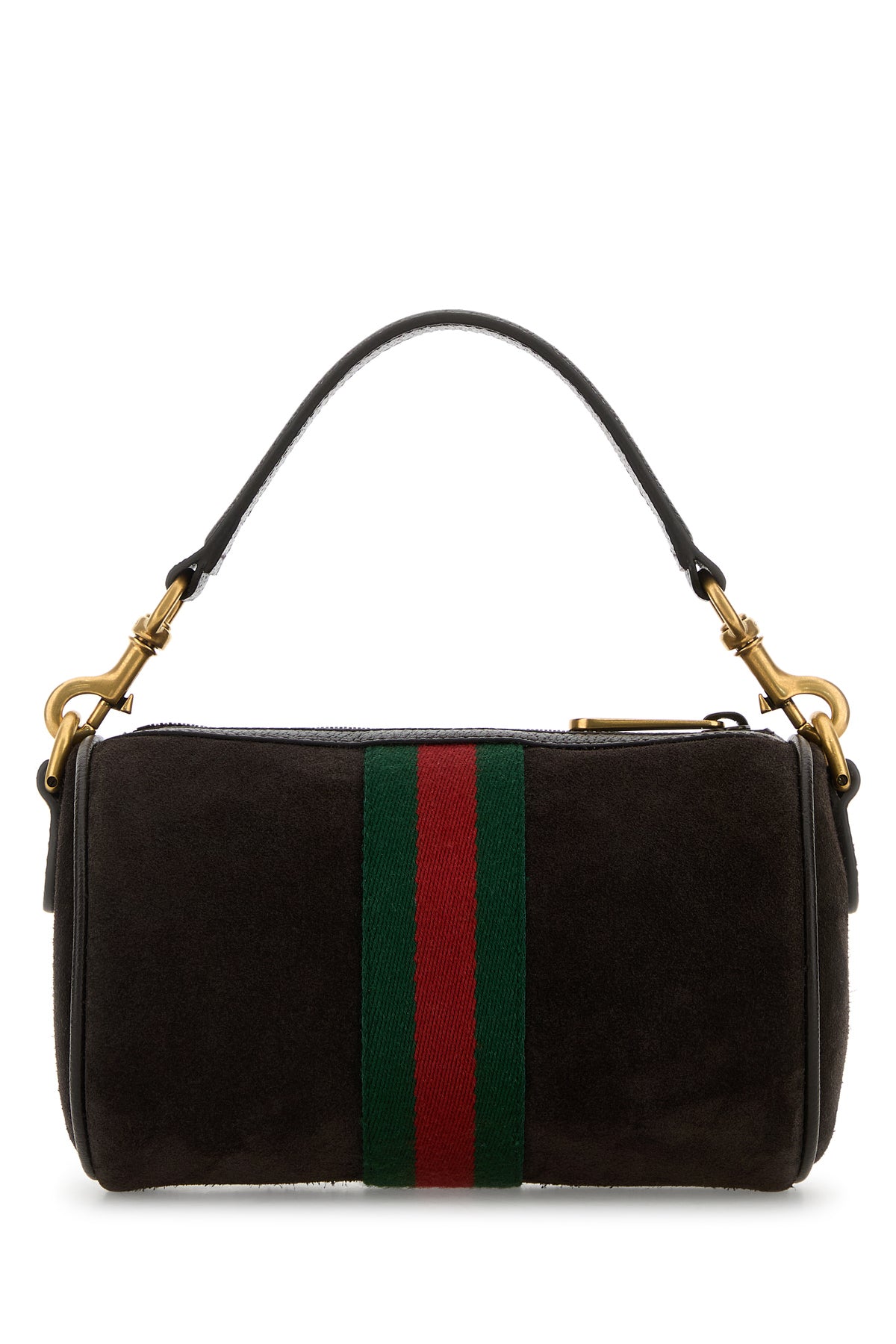 Handbag realized in suede enriched by GG metal detail at the front and Web patch.