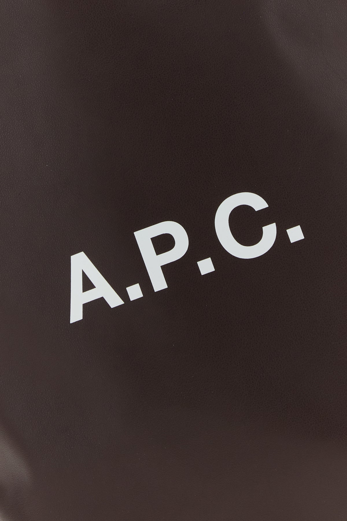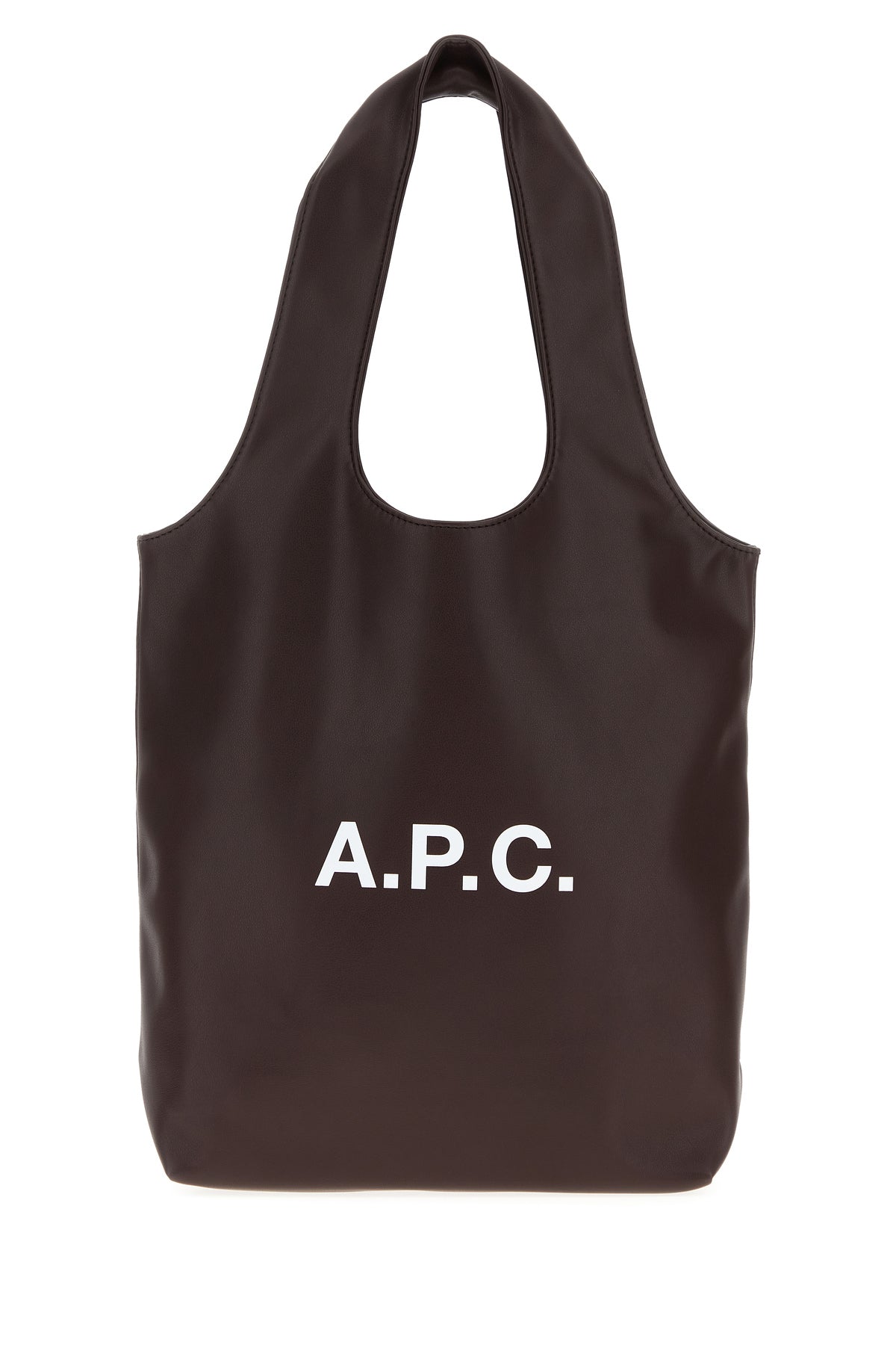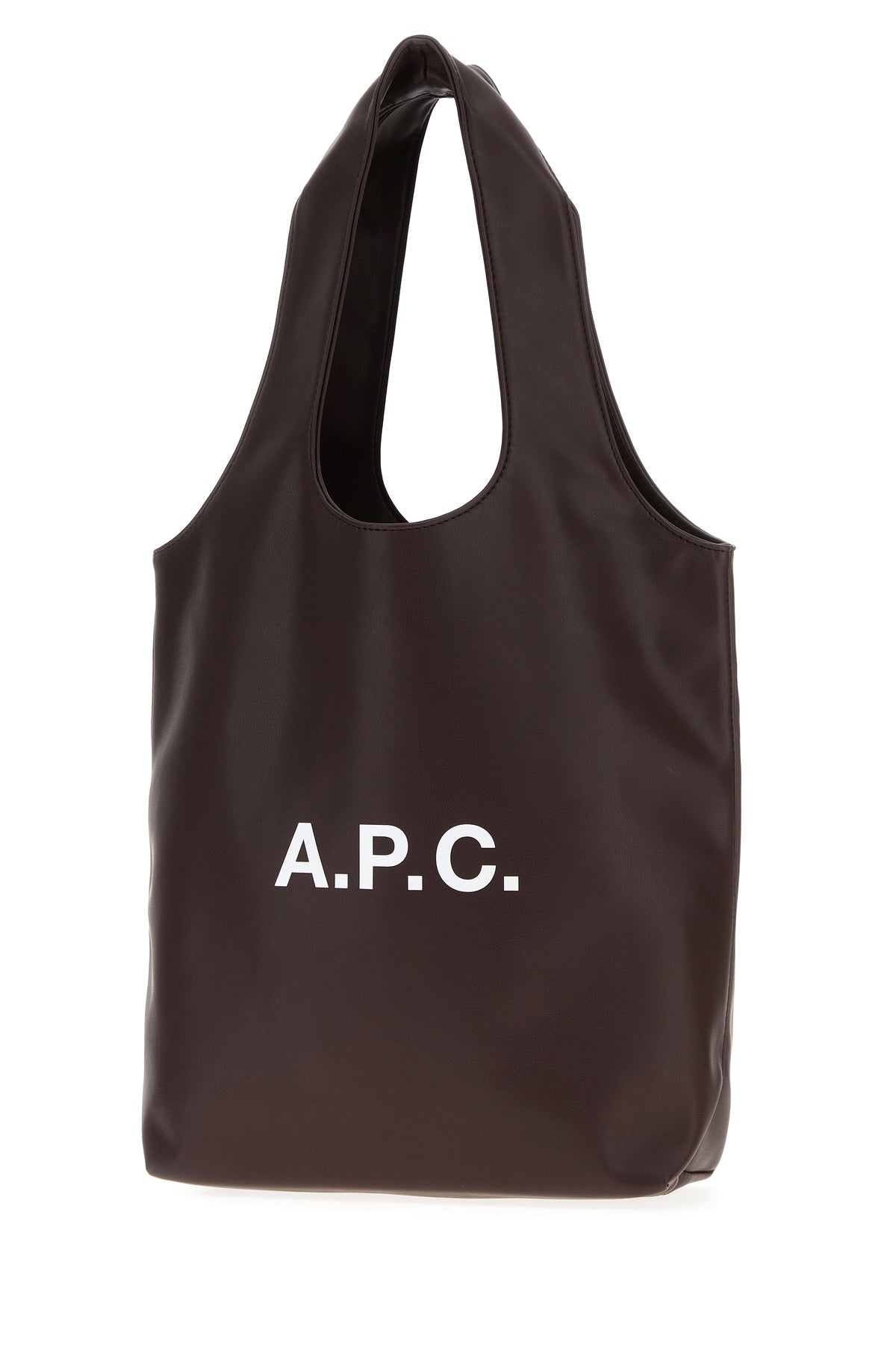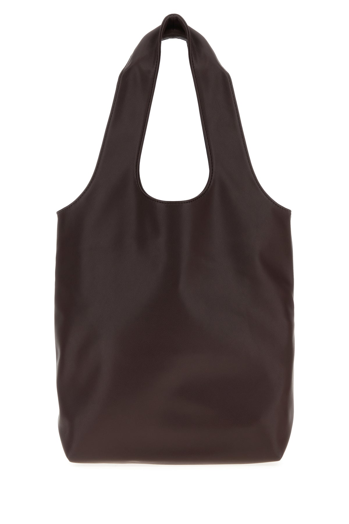Shopping bag realized in synthetic leather characterized by contrasting printed logo at the front.