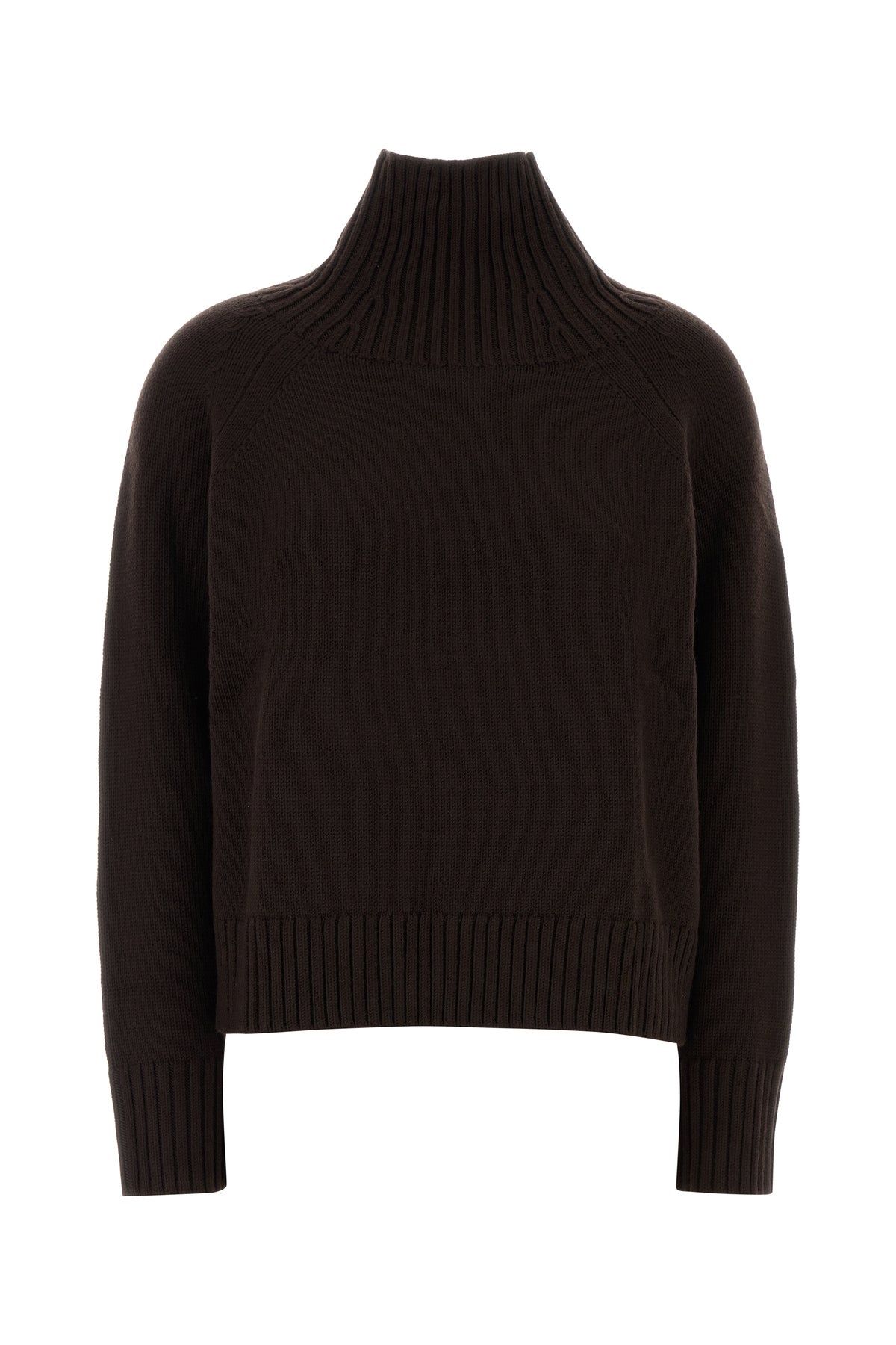 Sweater realized in pure woo enriched by logoed metal detail at the back.