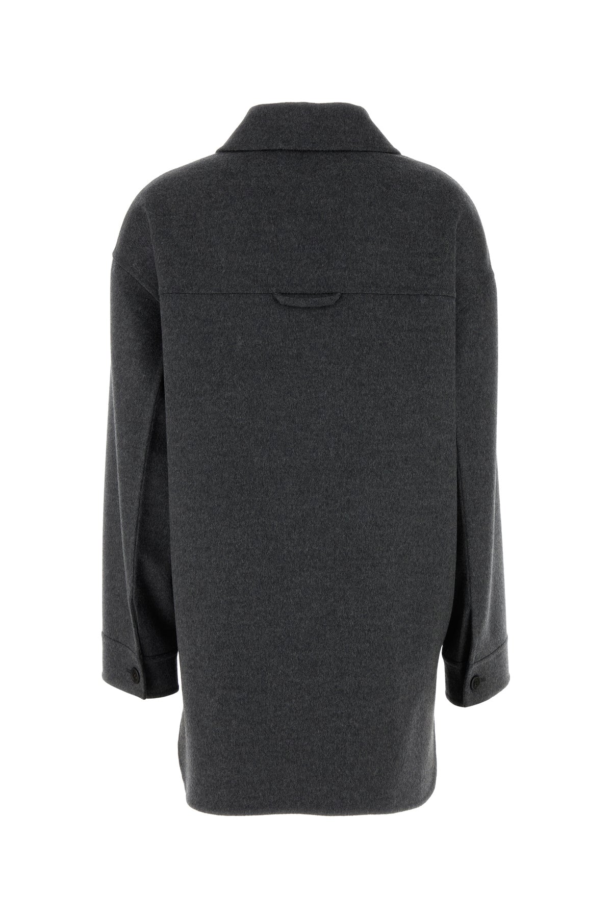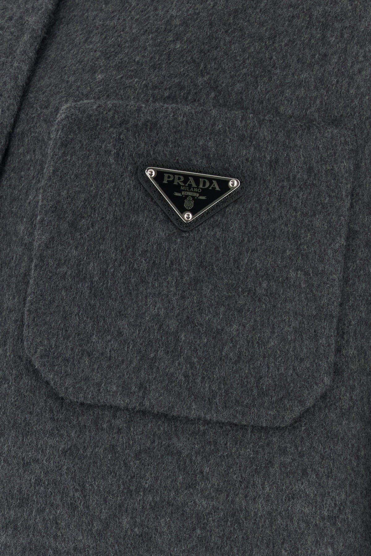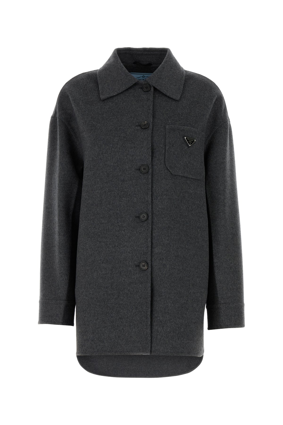 Short-cut coat realized in virgin wool and cashmere enriched by metal iconic logoed triangle on the chest.