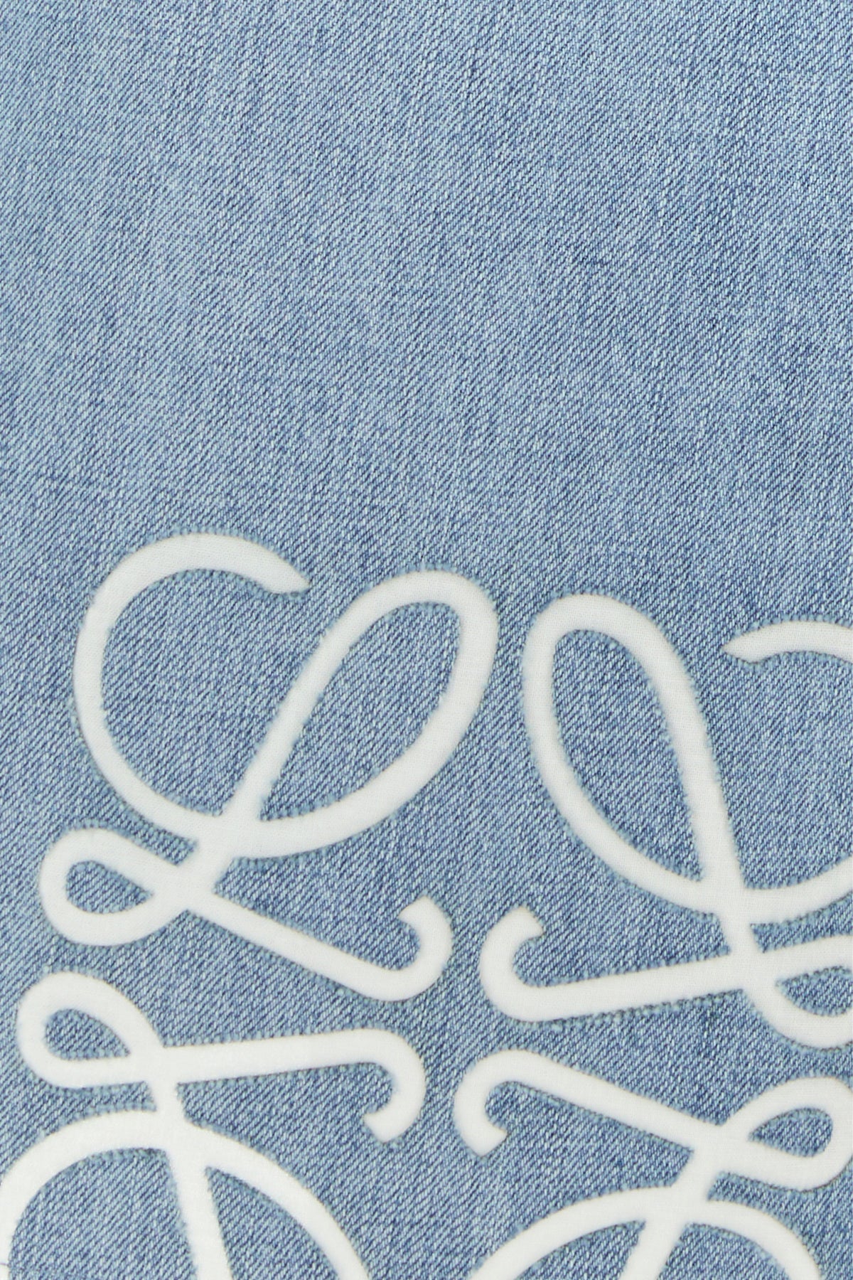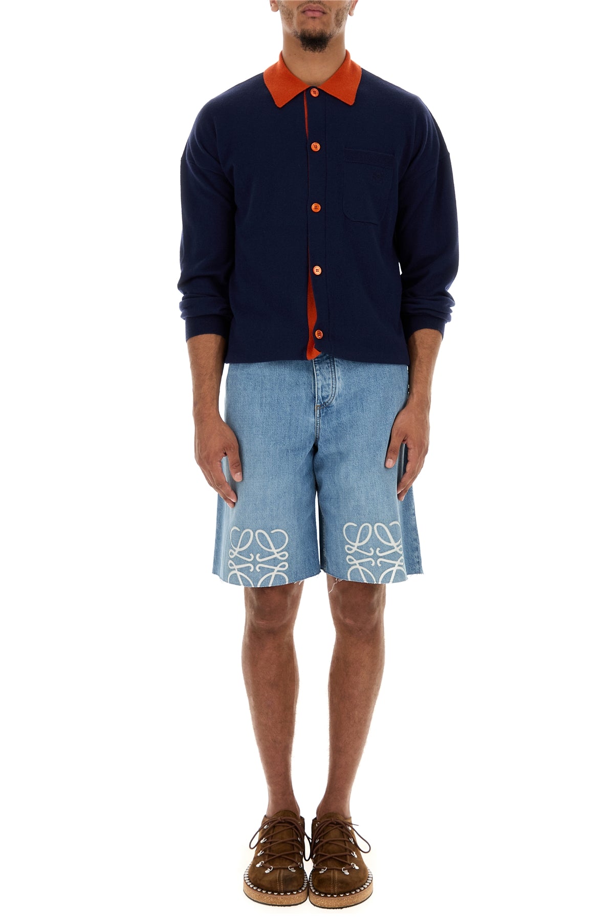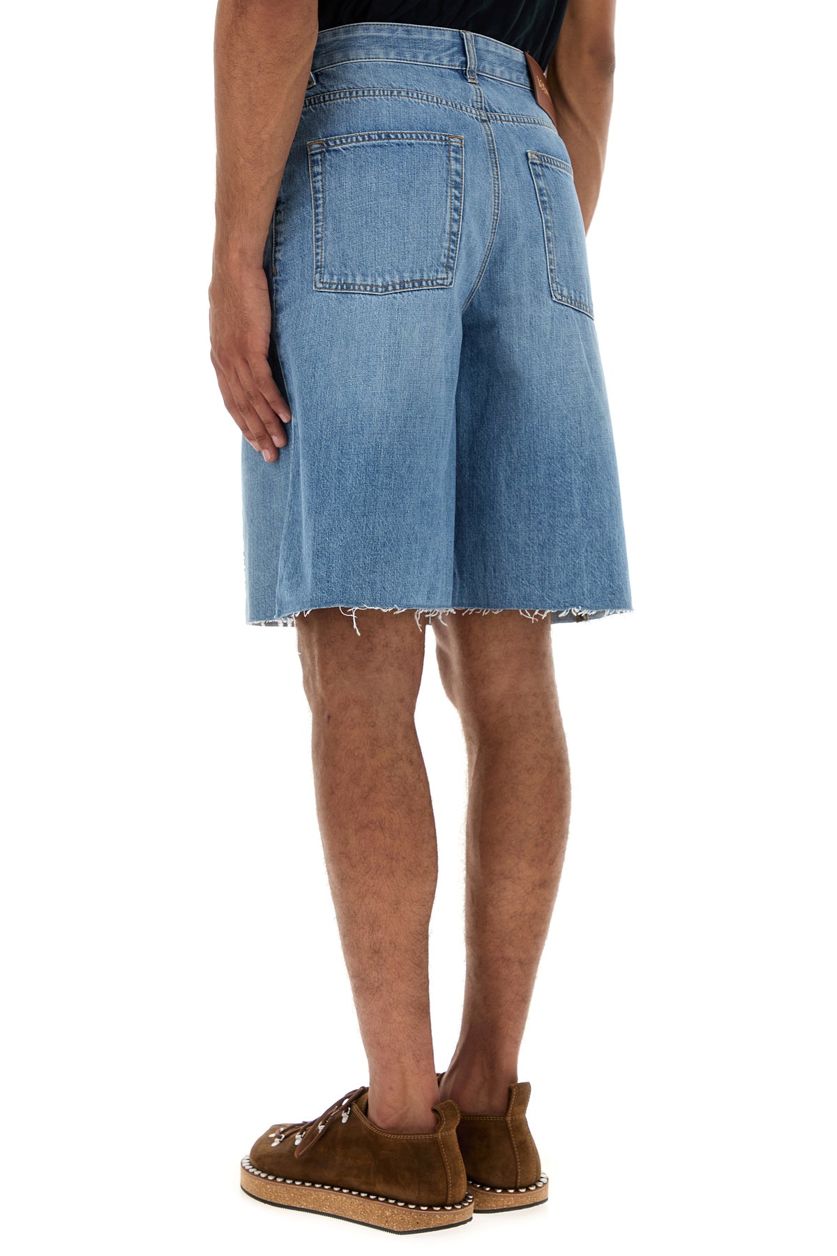 Bermuda shorts realized in slightly stonewashed pure cotton denim characterized by Anagram motif on the hemline enriched by leather LOEWE label at the back.