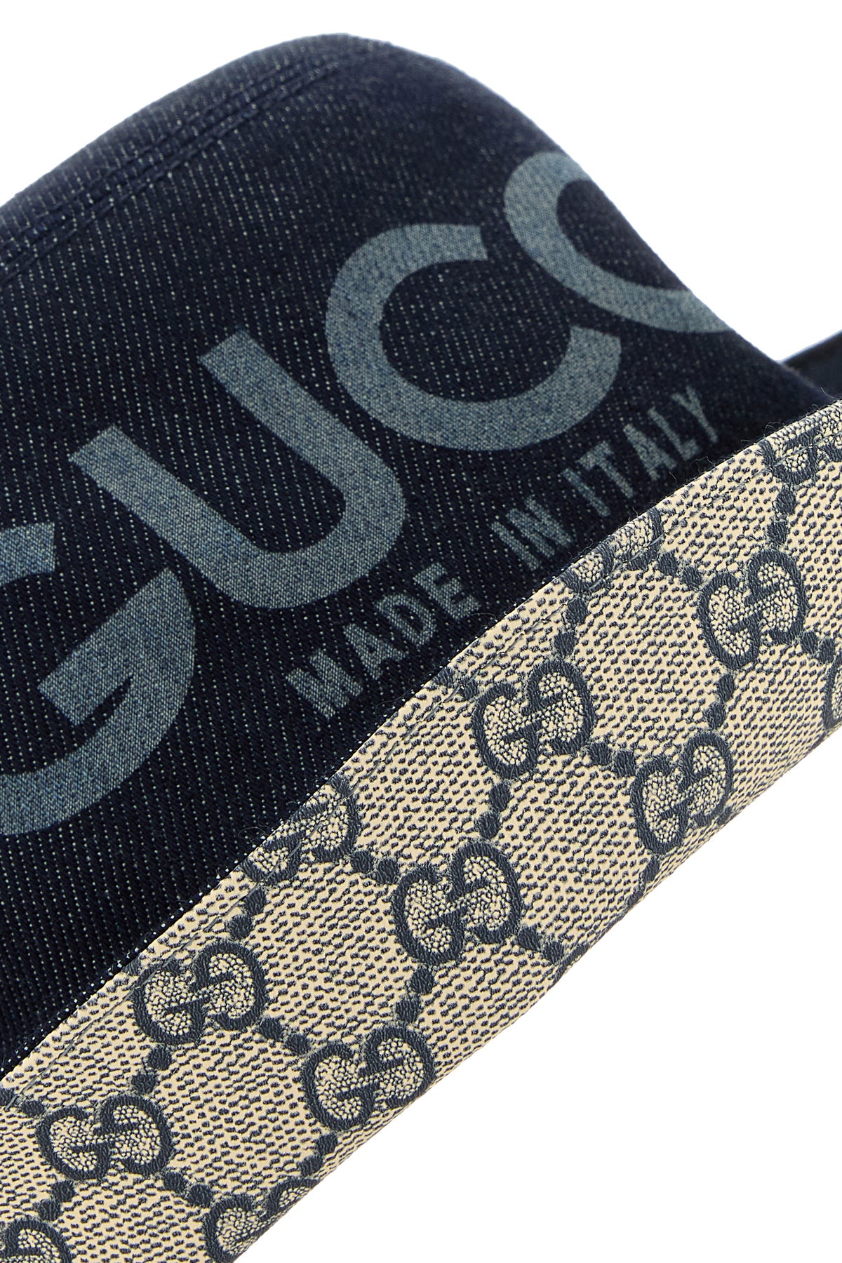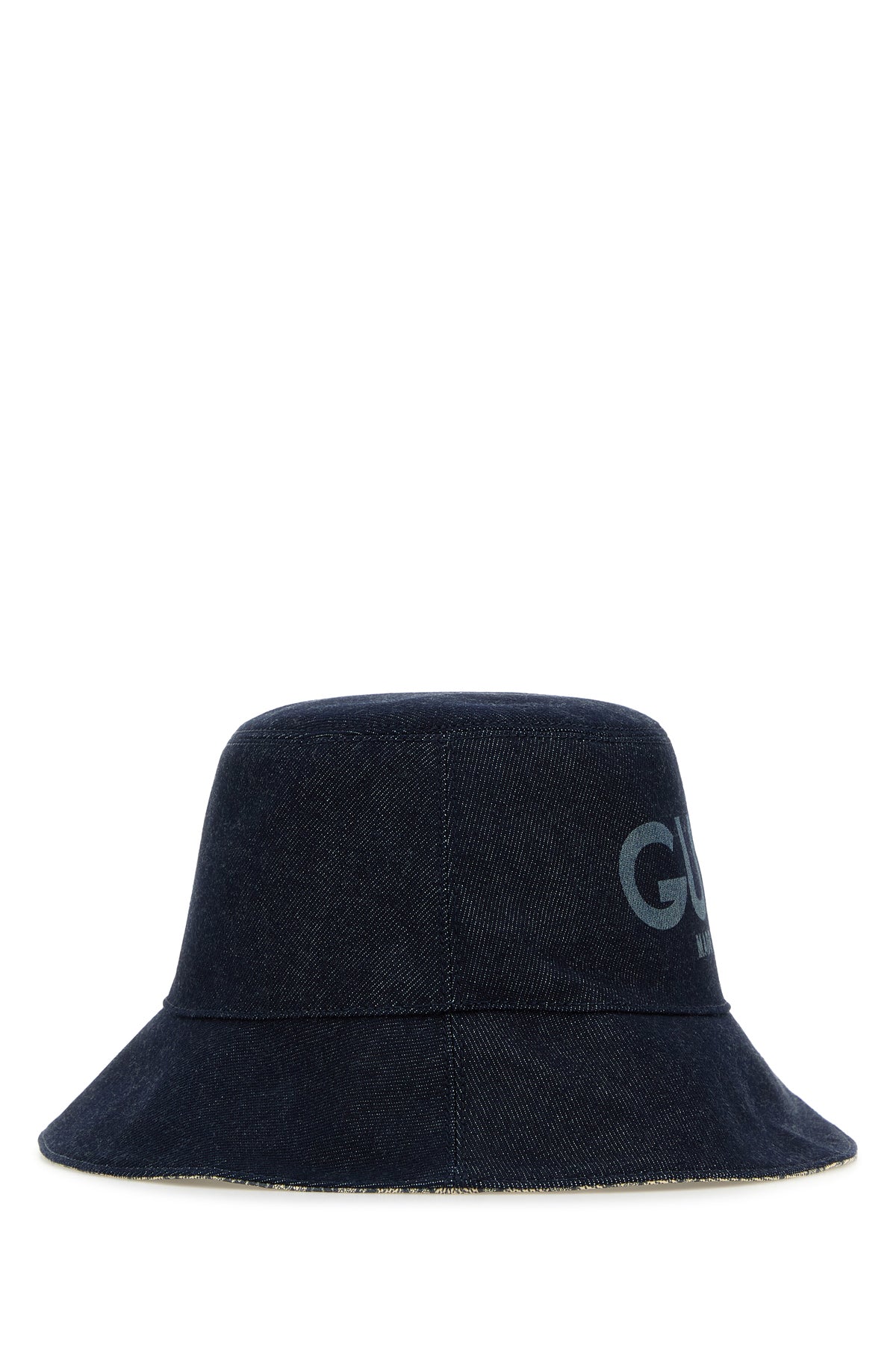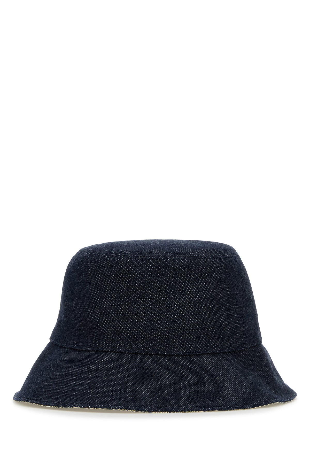 Bucket hat realized in pure cotton denim characterized by contrasting printed logo at the front.