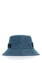 Bucket hat realized in pure cotton denim enriched by contrasting logoed patch at the front.