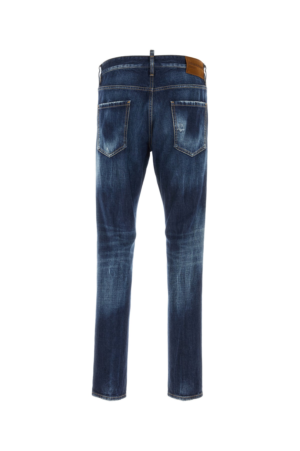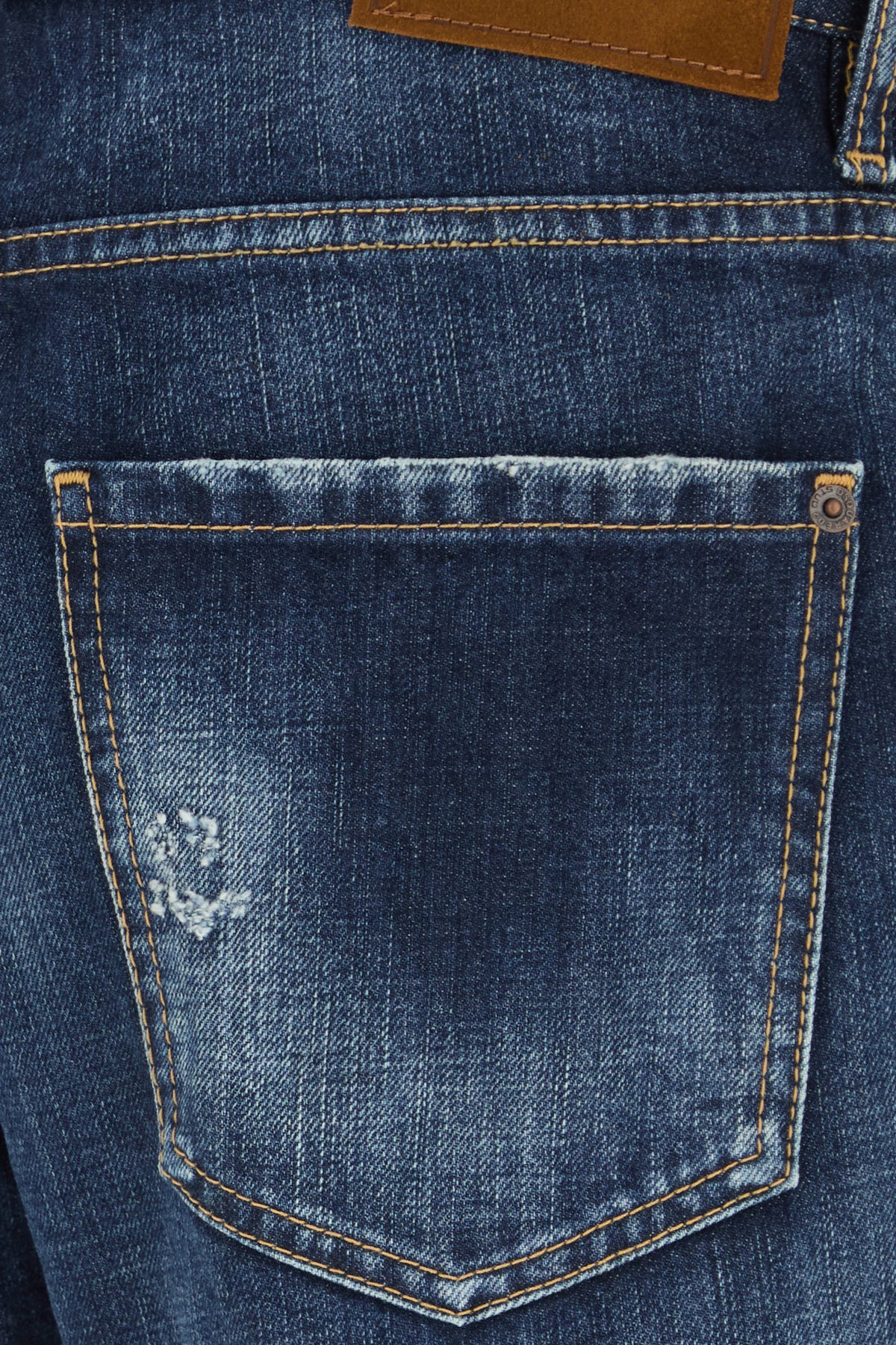 Jeans realized in stonewashed and distressed pure cotton denim enriched by contrasting logoed label at the back.