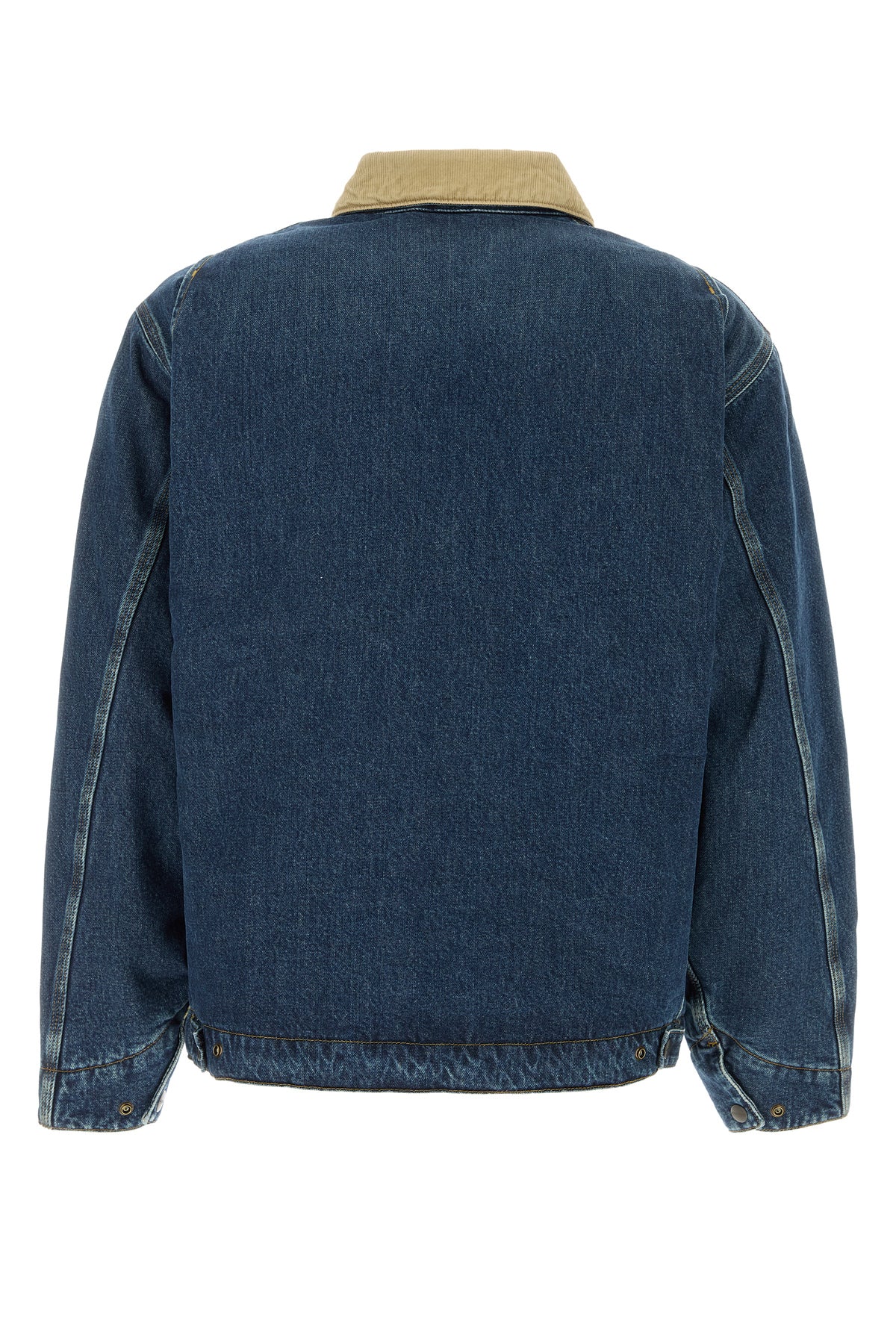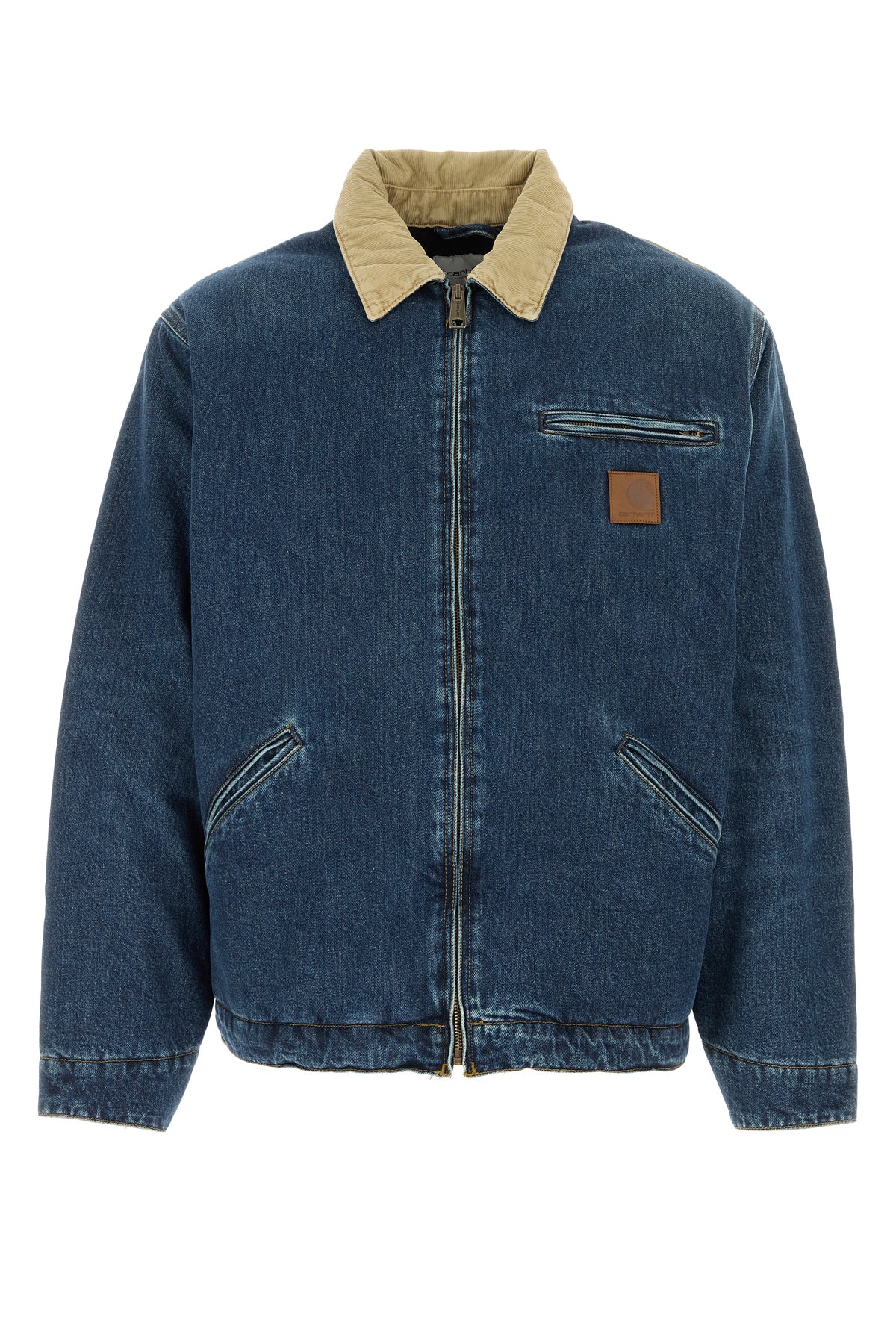 Padded jacket realized in slightly stonewashed pure cotton denim enriched by contrasting logoed patch on the chest.