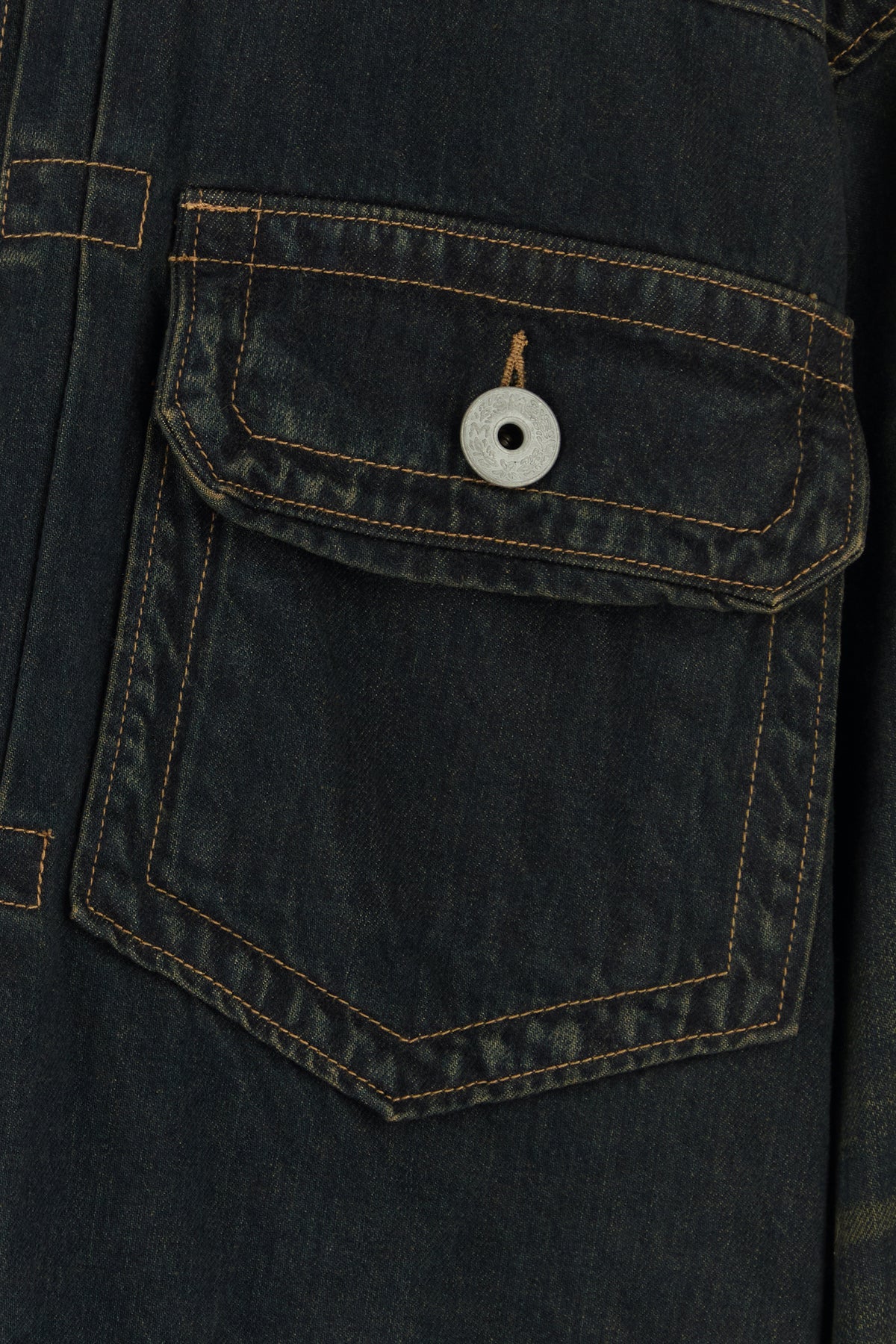 Jacket realized in pure cotton denim enriched by contrasting logoed label at the front.
