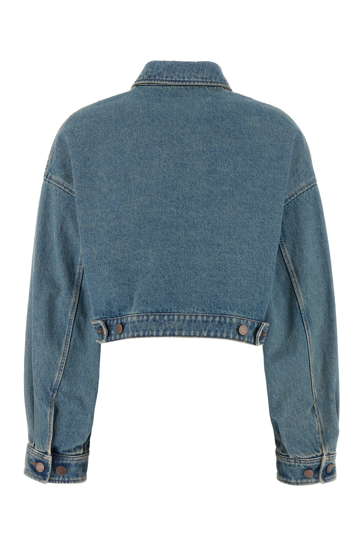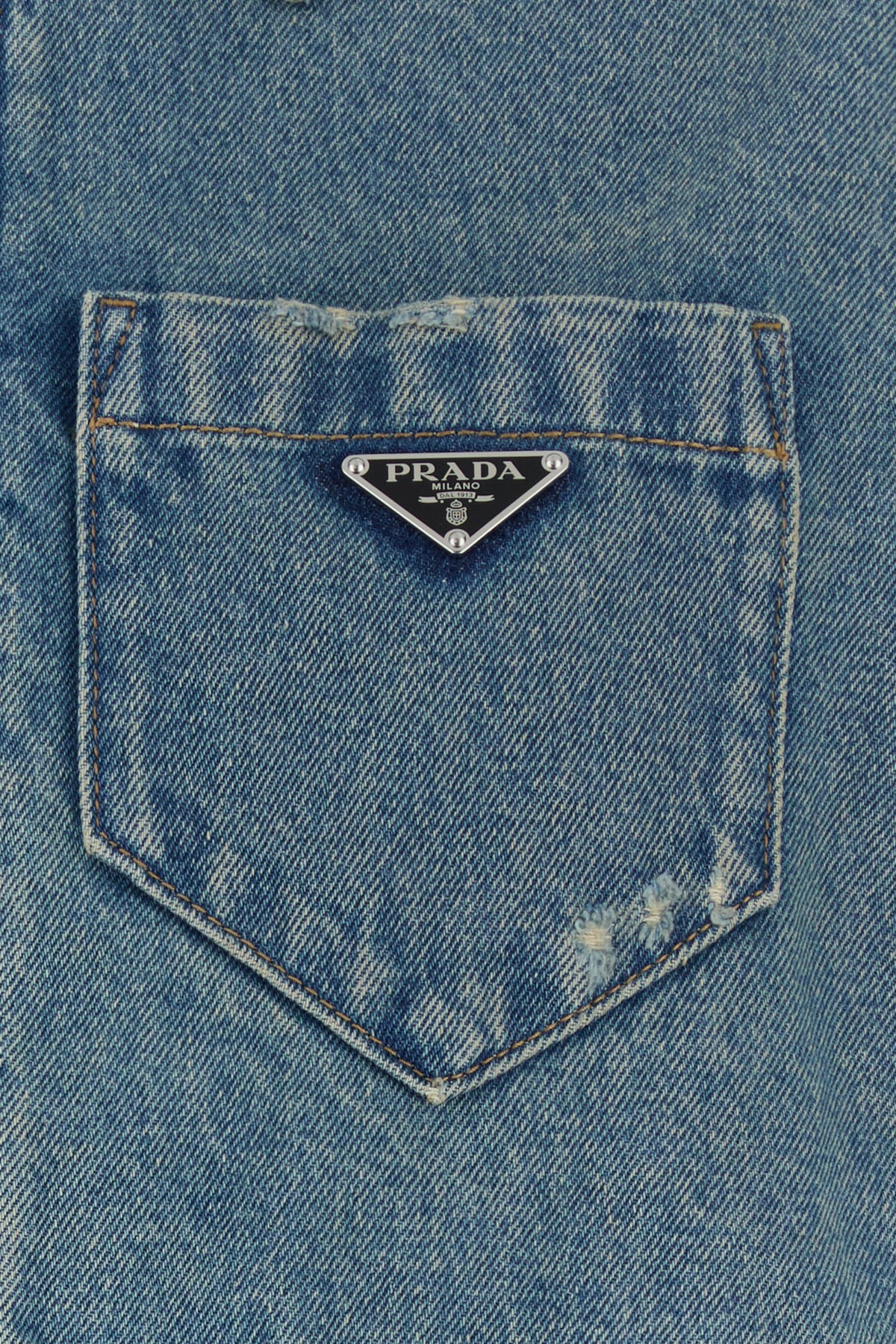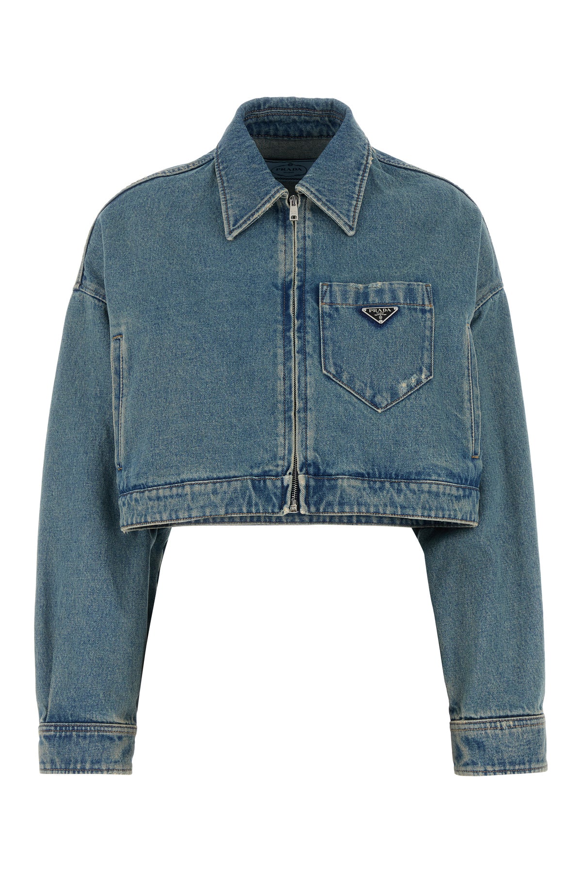 Jacket realized in stonewashed and slightly distressed pure cotton enriched by iconic logoed metal triangle.