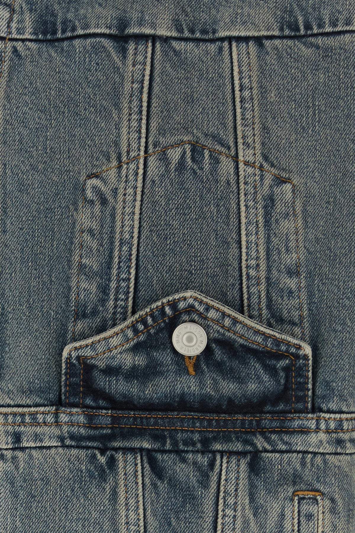 Jacket realized in pure cotton denim characterized by iconic contrasting stitching at the back.