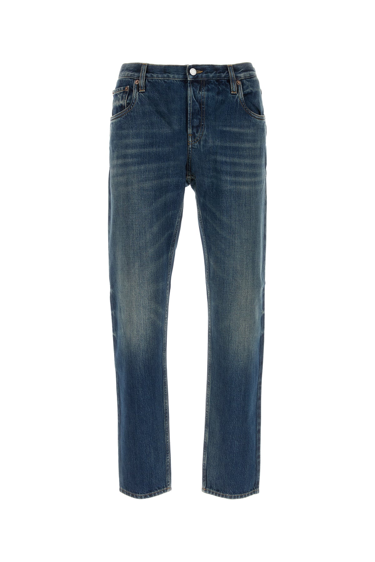 Jeans realized in stonewashed pure cotton denim enriched by contrasting logoed label at the back.