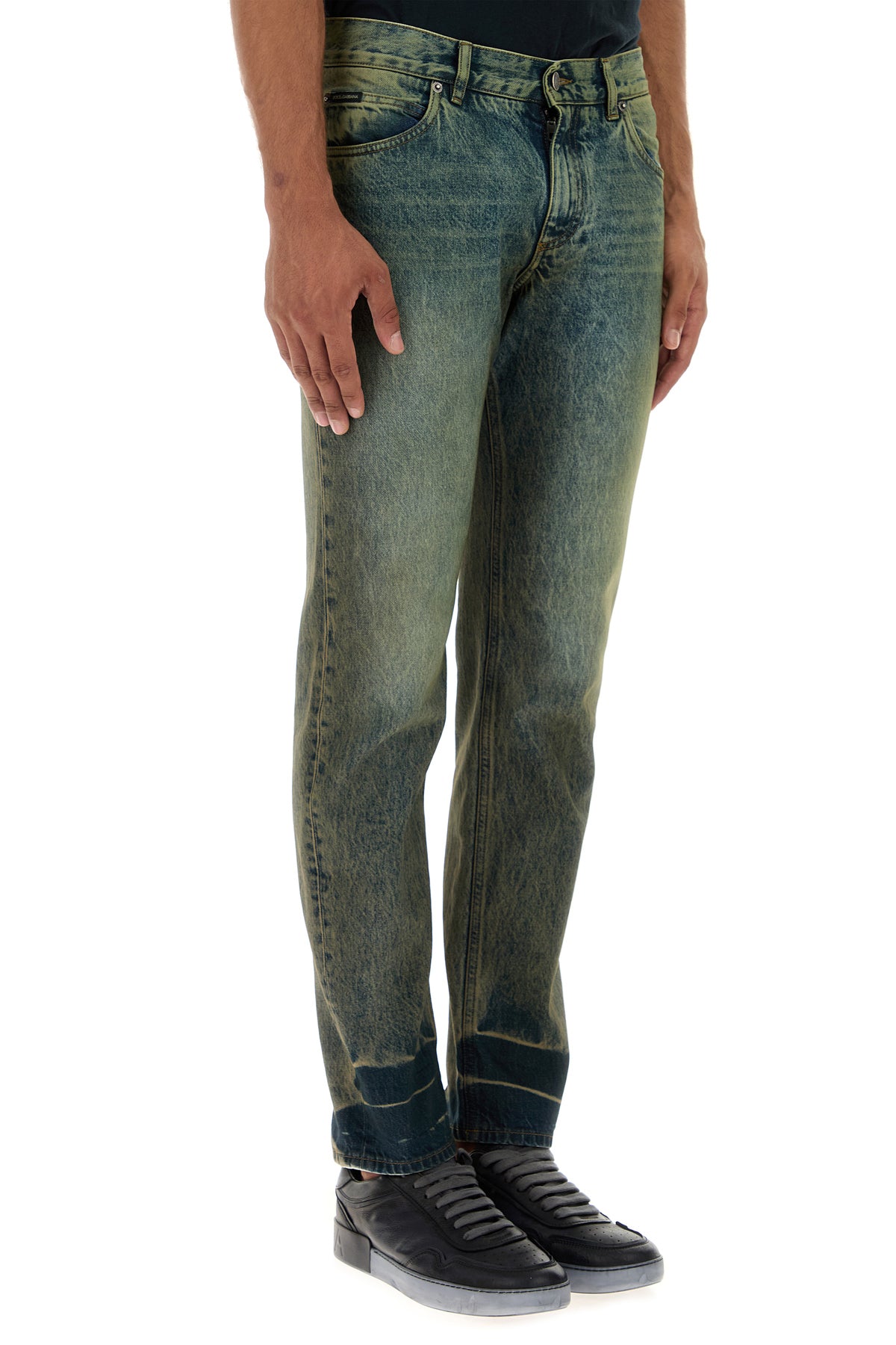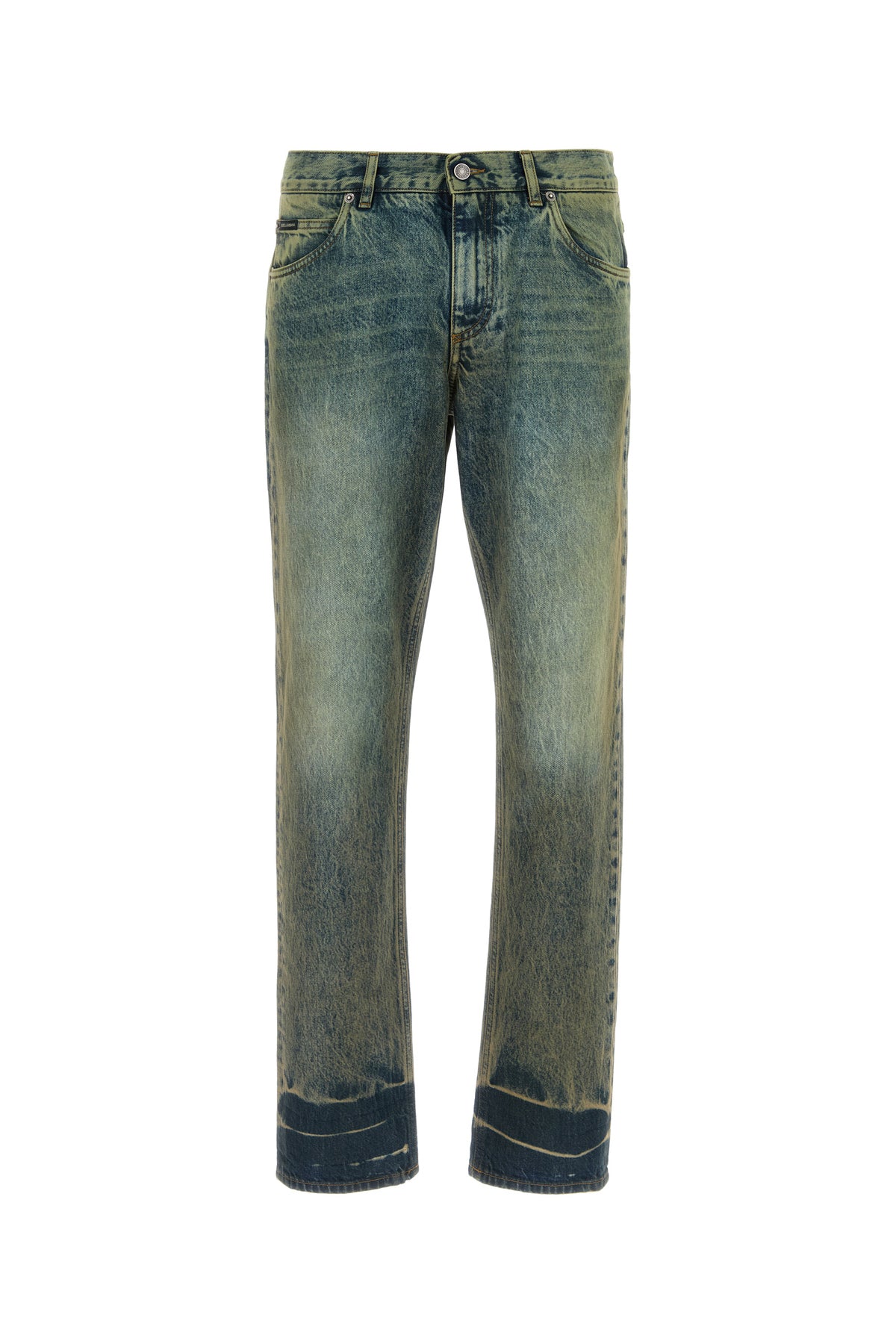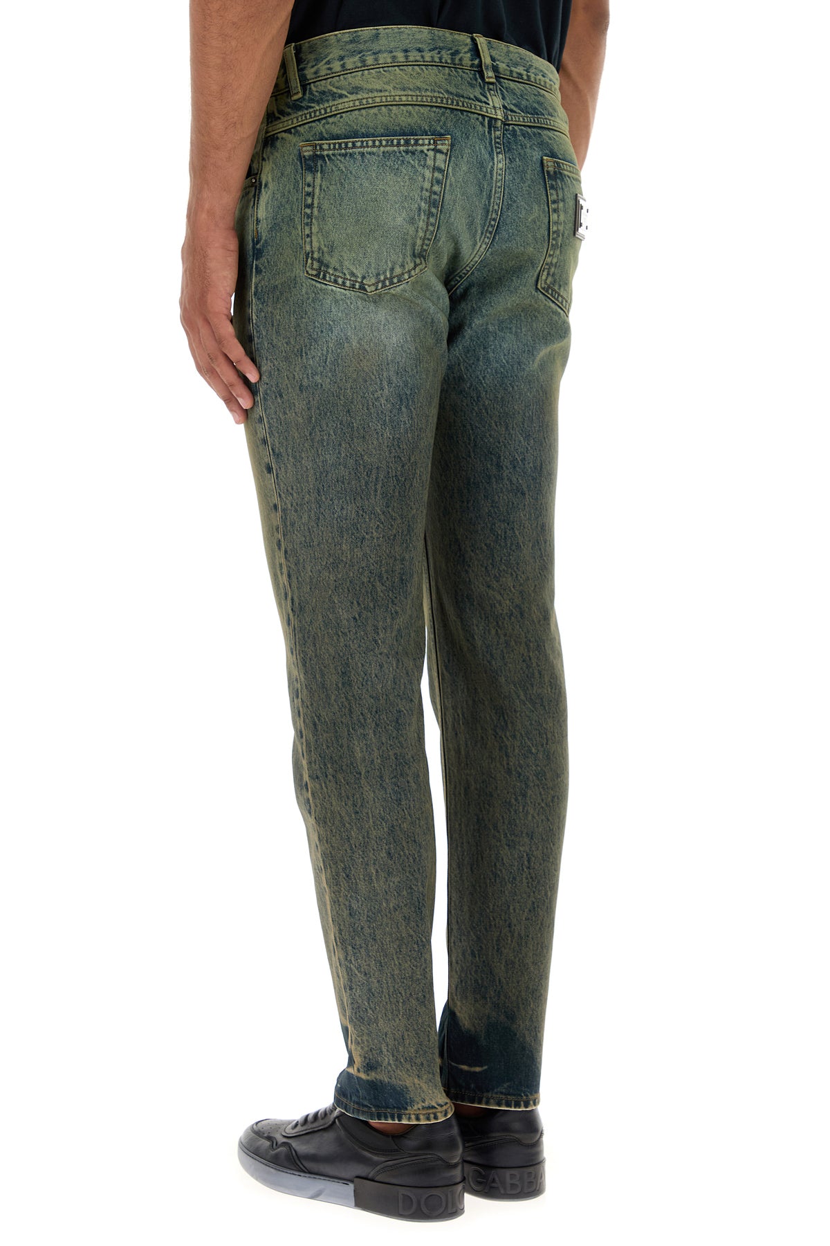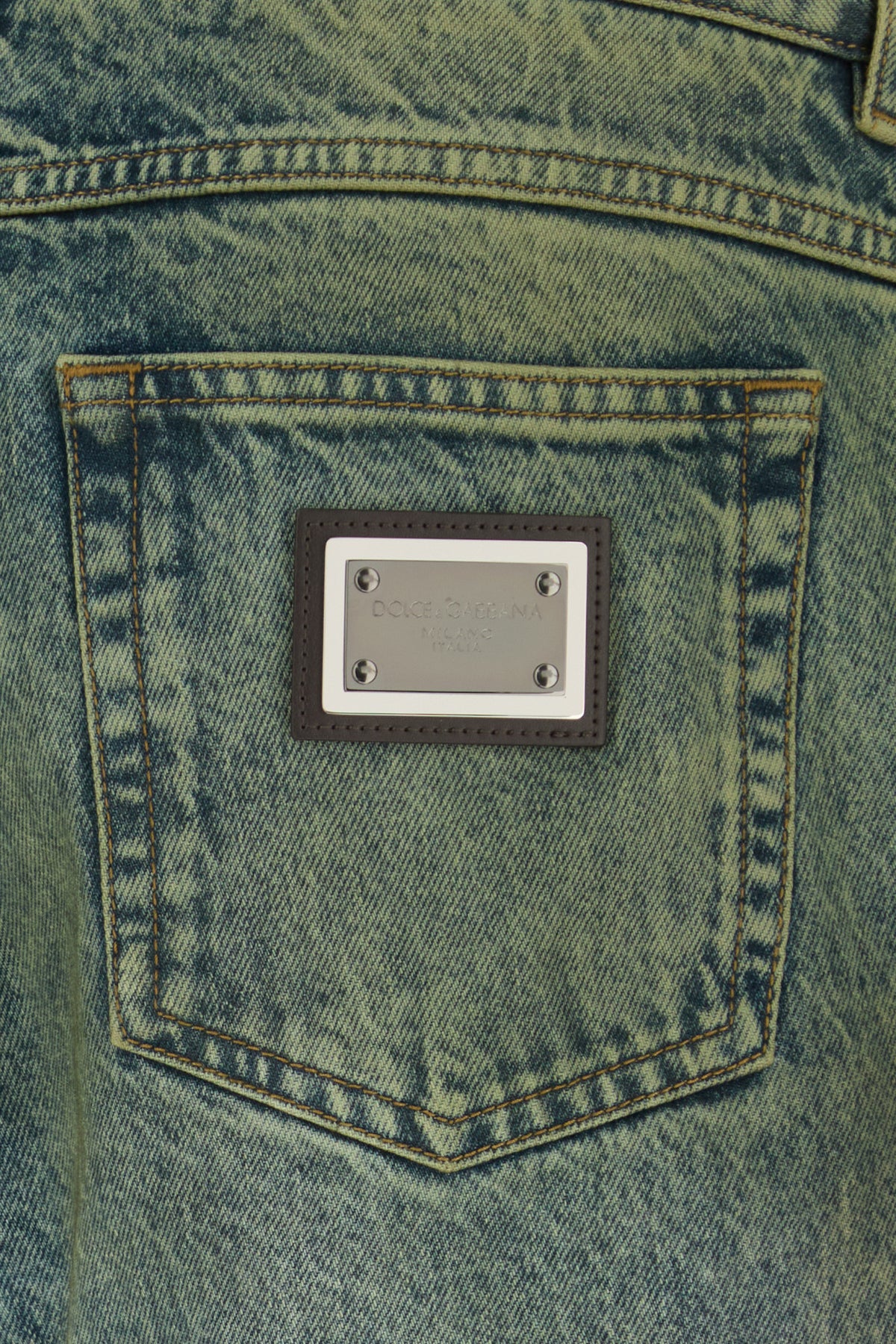 Jeans realized in stonewashed and vintage effect pure cotton denim enriched by logoed plate at the back.