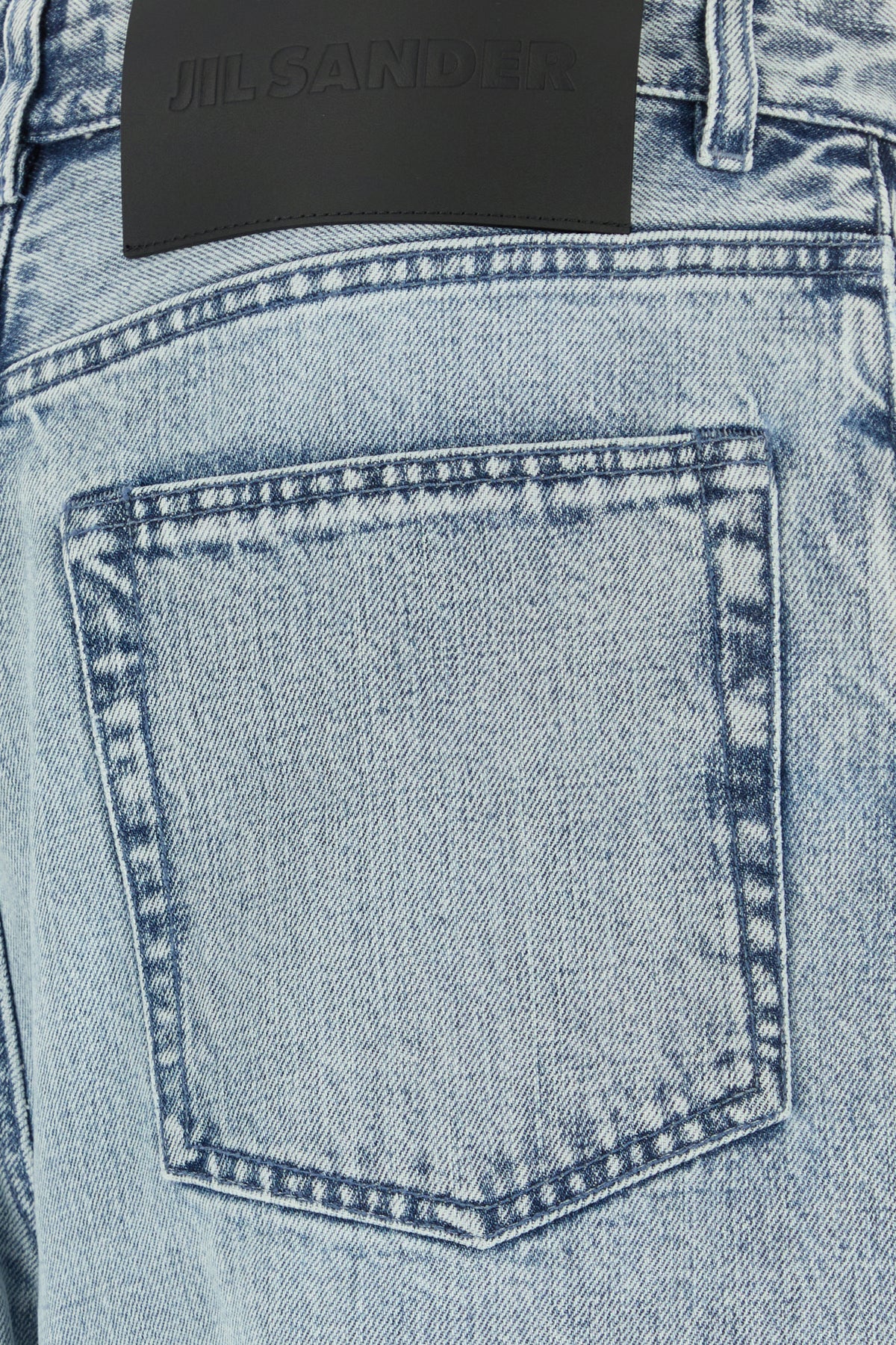 Jeans realized in stonewashed pure cotton denim enriched by contrasting logoed label at the back.