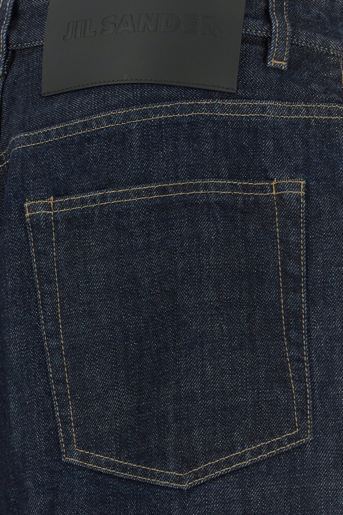 Jeans realized in pure cotton denim enriched by contrasting logoed label at the back.