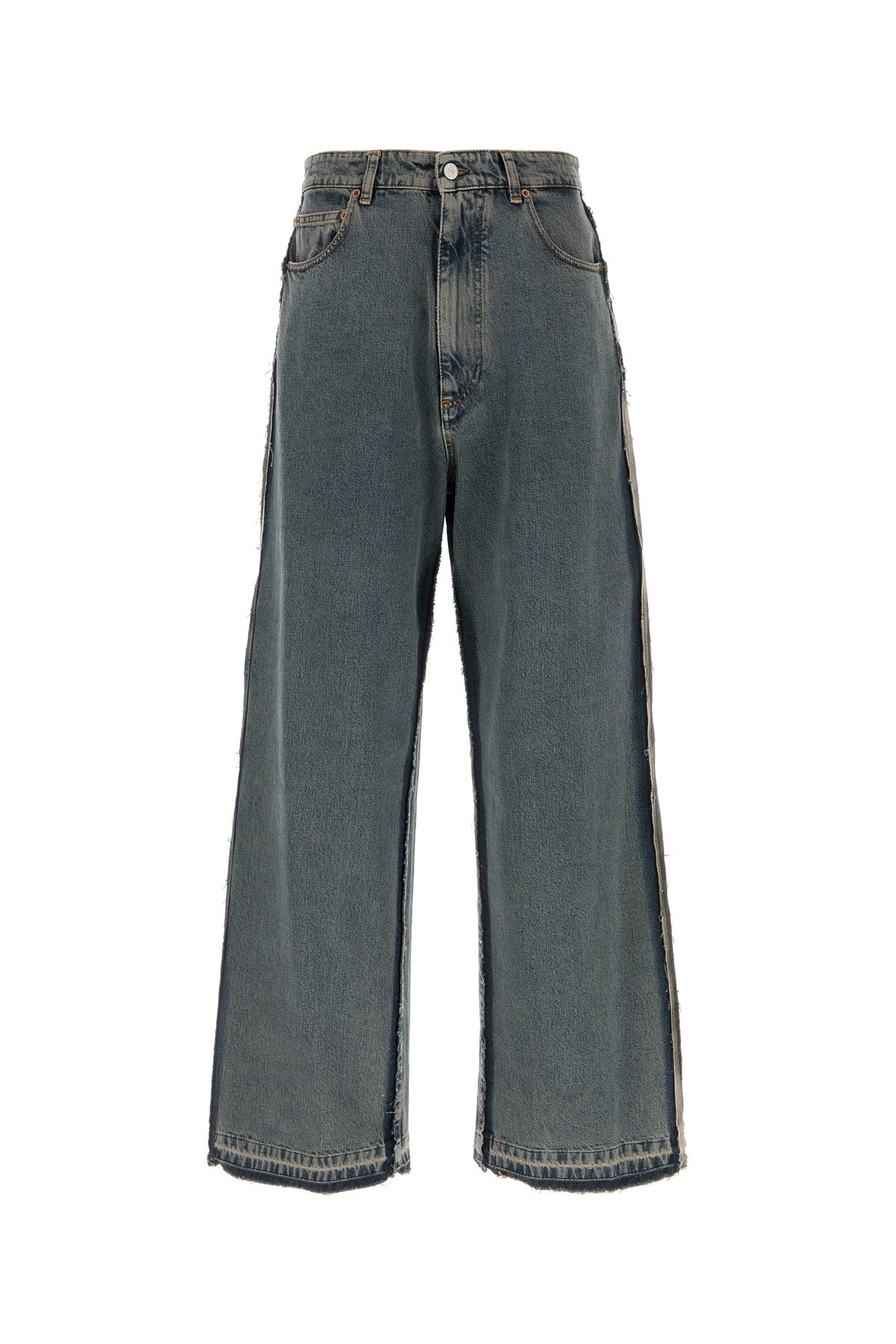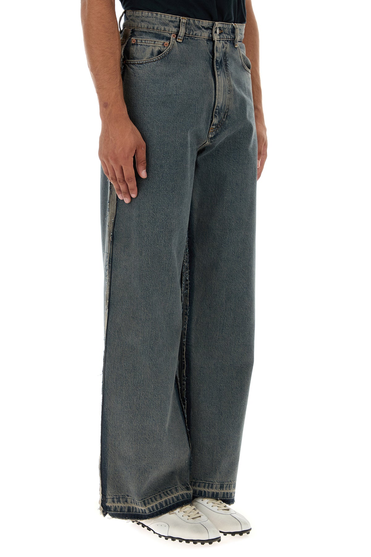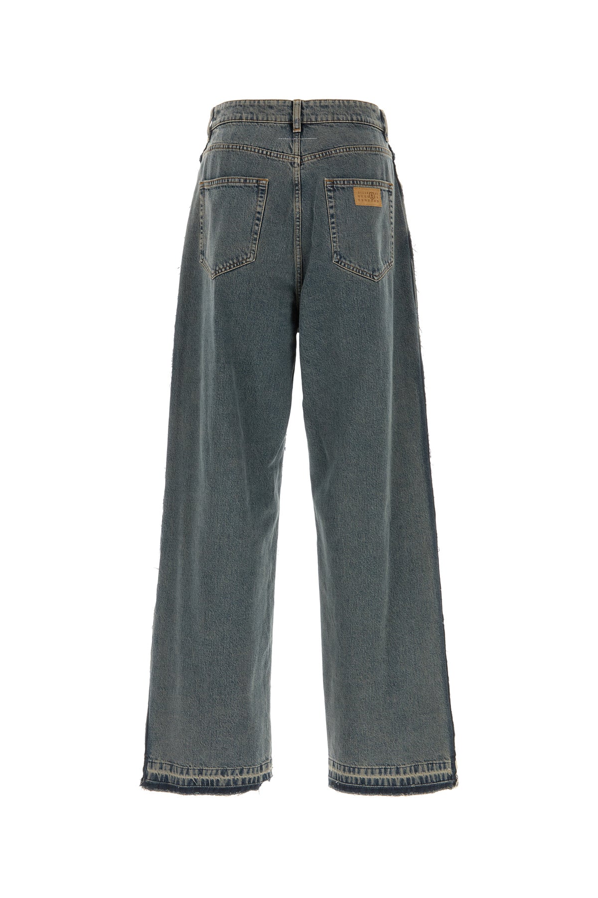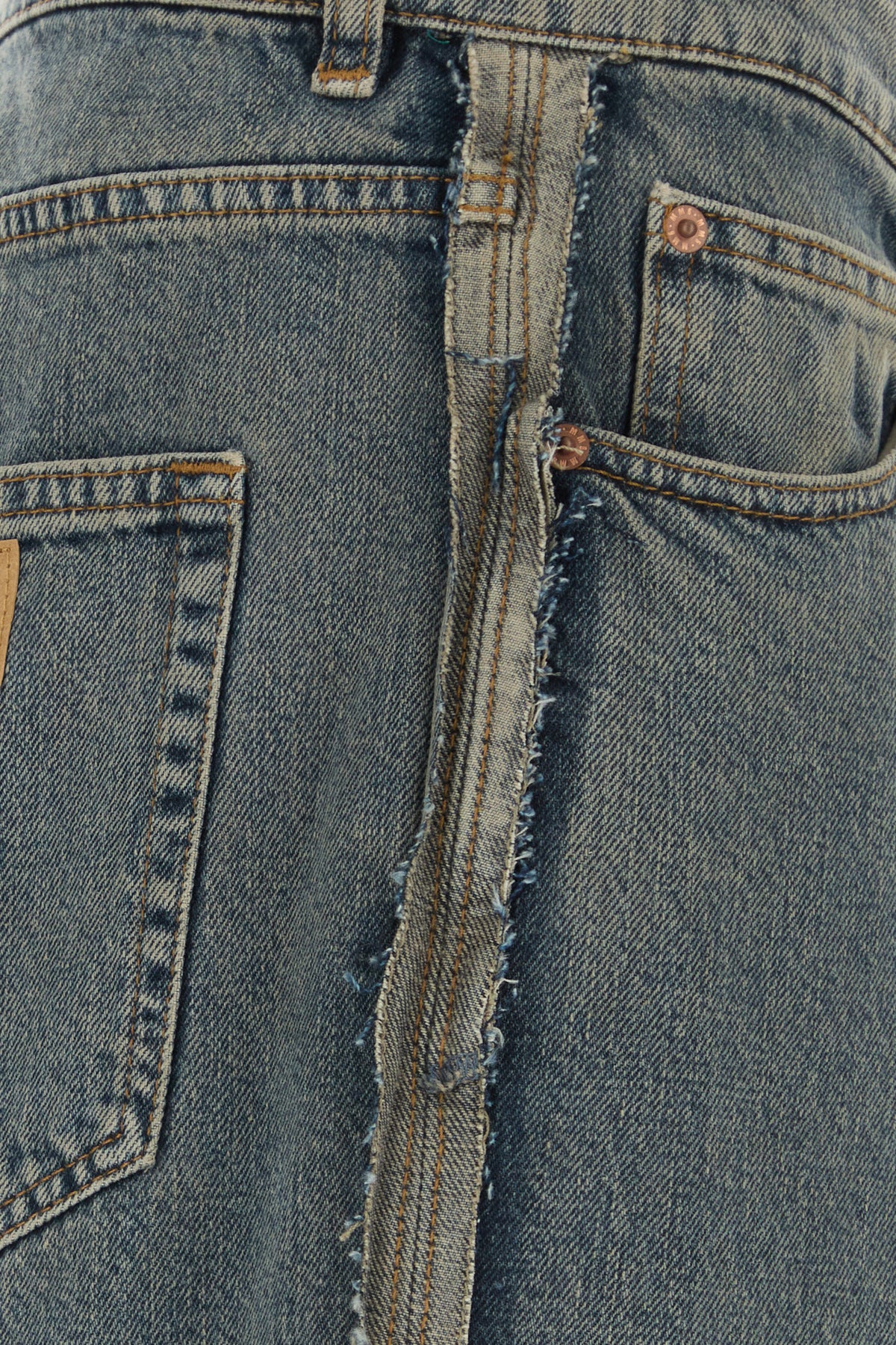Jeans realized in pure cotton denim enriched by contrasting logoed label at the back.