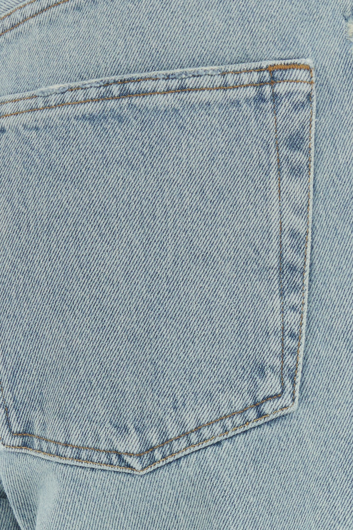 Jeans realized in stonewashed and slightly distressed pure cotton denim.