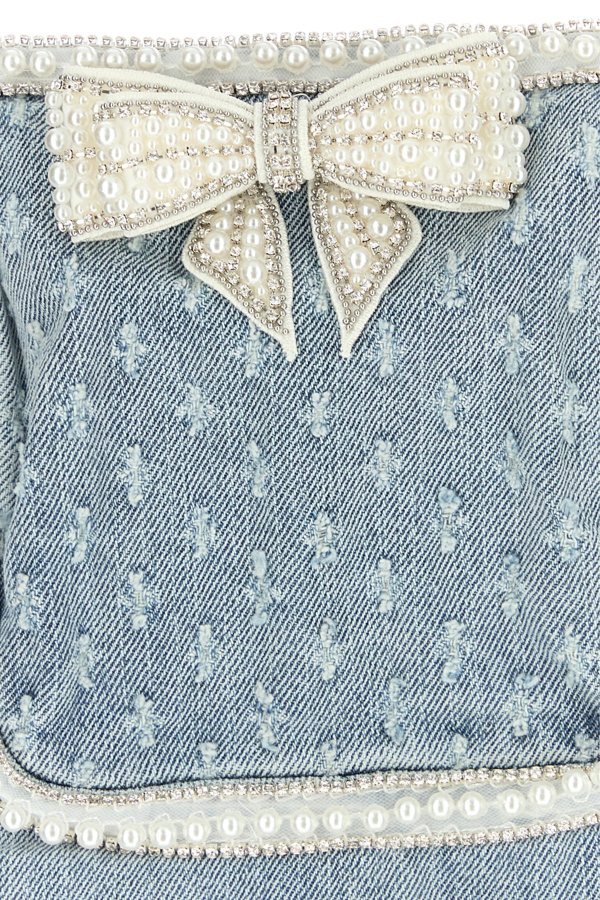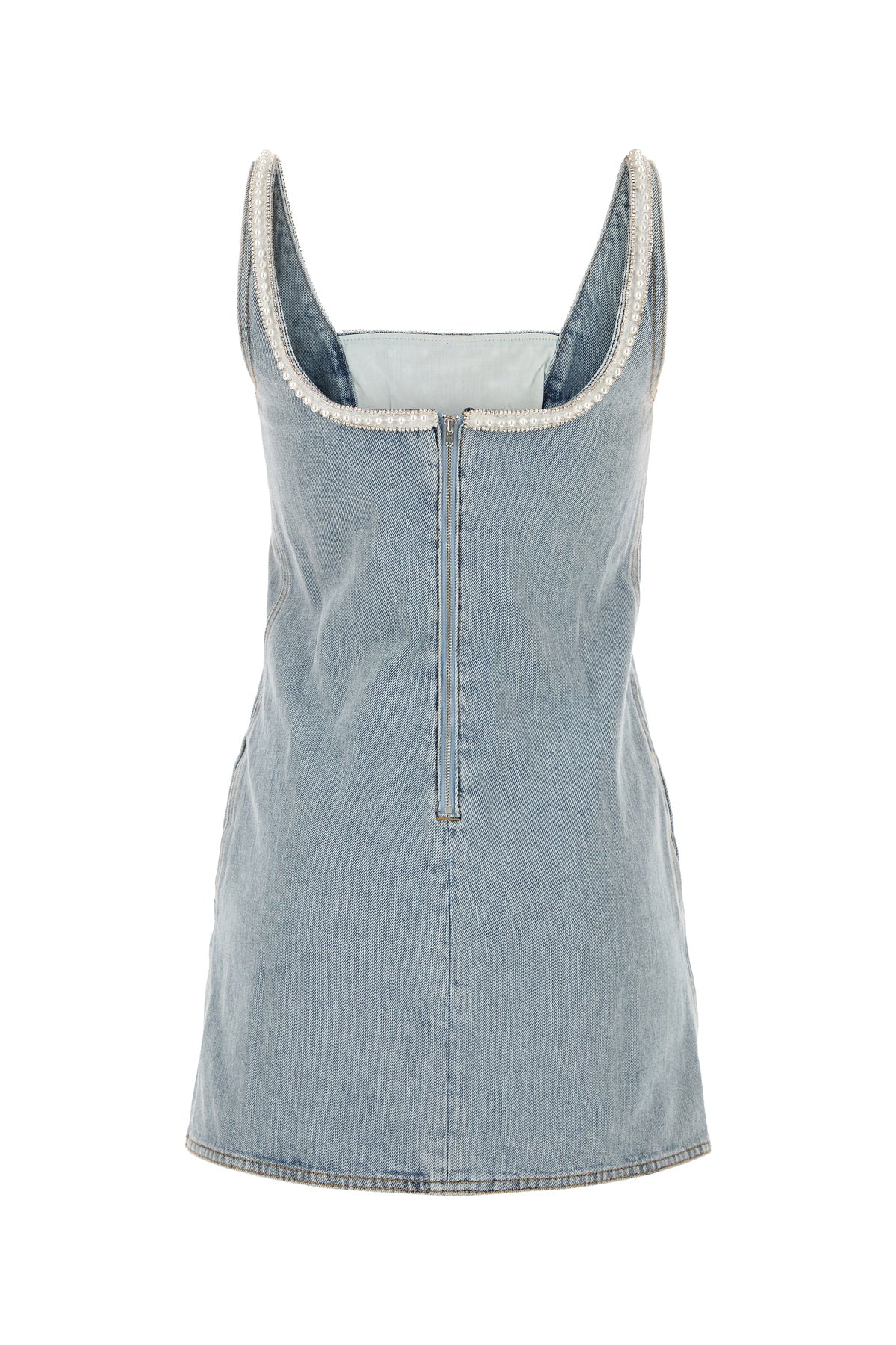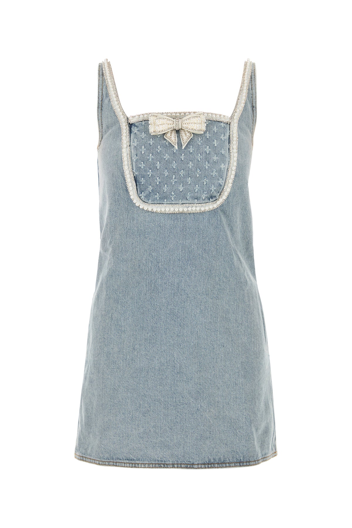 Mini dress realized in pure cotton denim enriched by decorative bow on the round neckline.