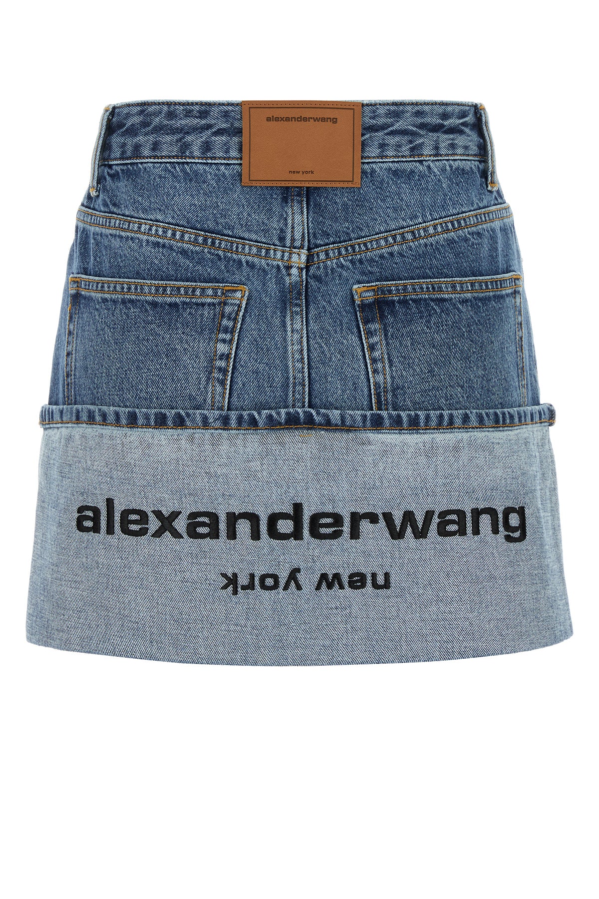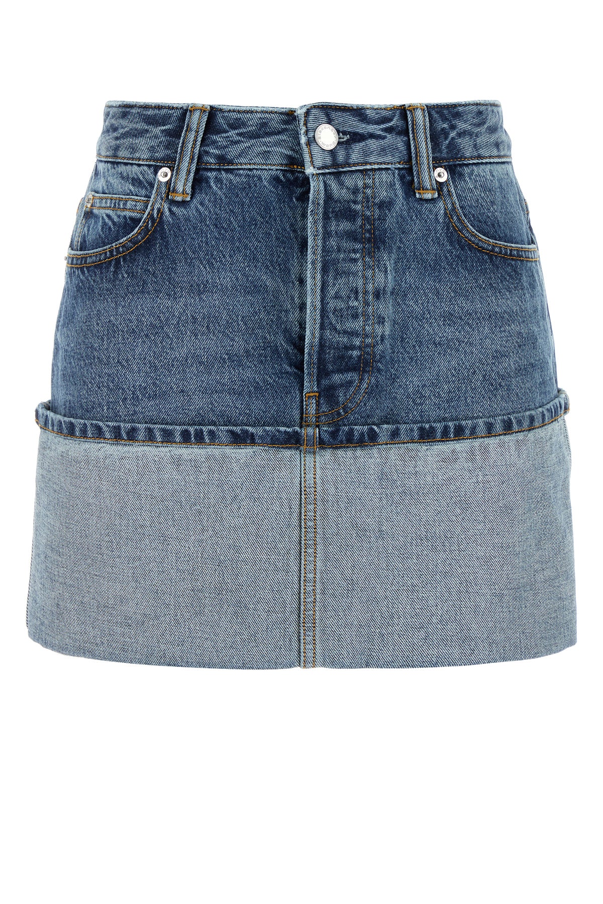 Mini skirt realized in pure cotton denim characterized by contrasting embroidered logo at the back.