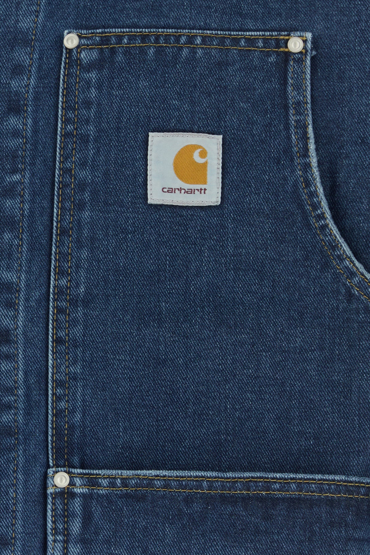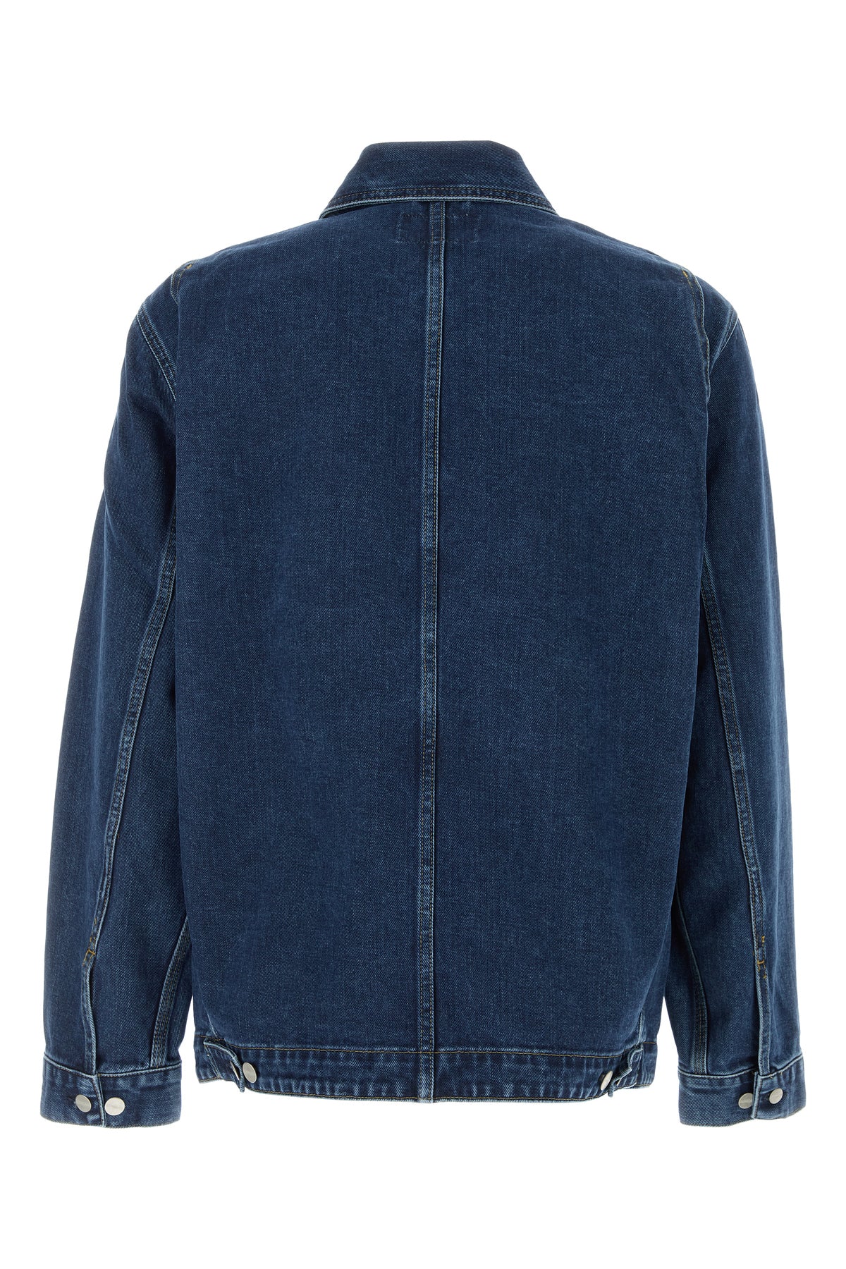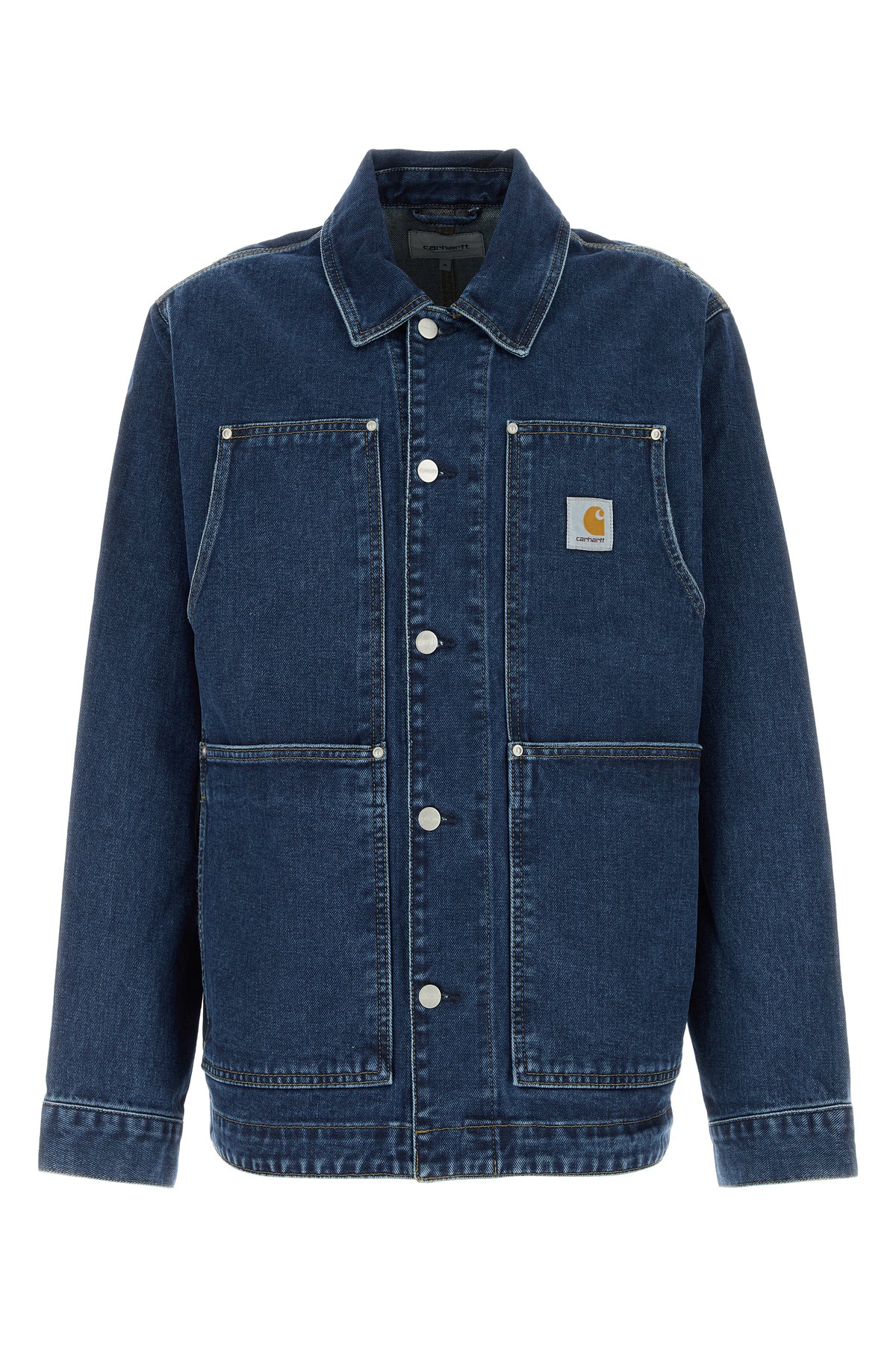 Jacket realized in pure cotton denim enriched by contrasting logoed label on the chest.