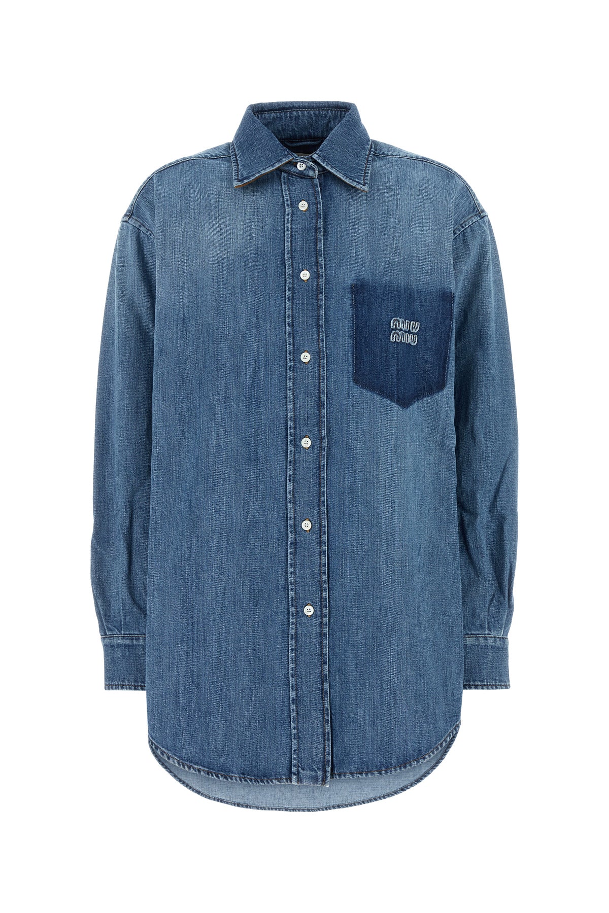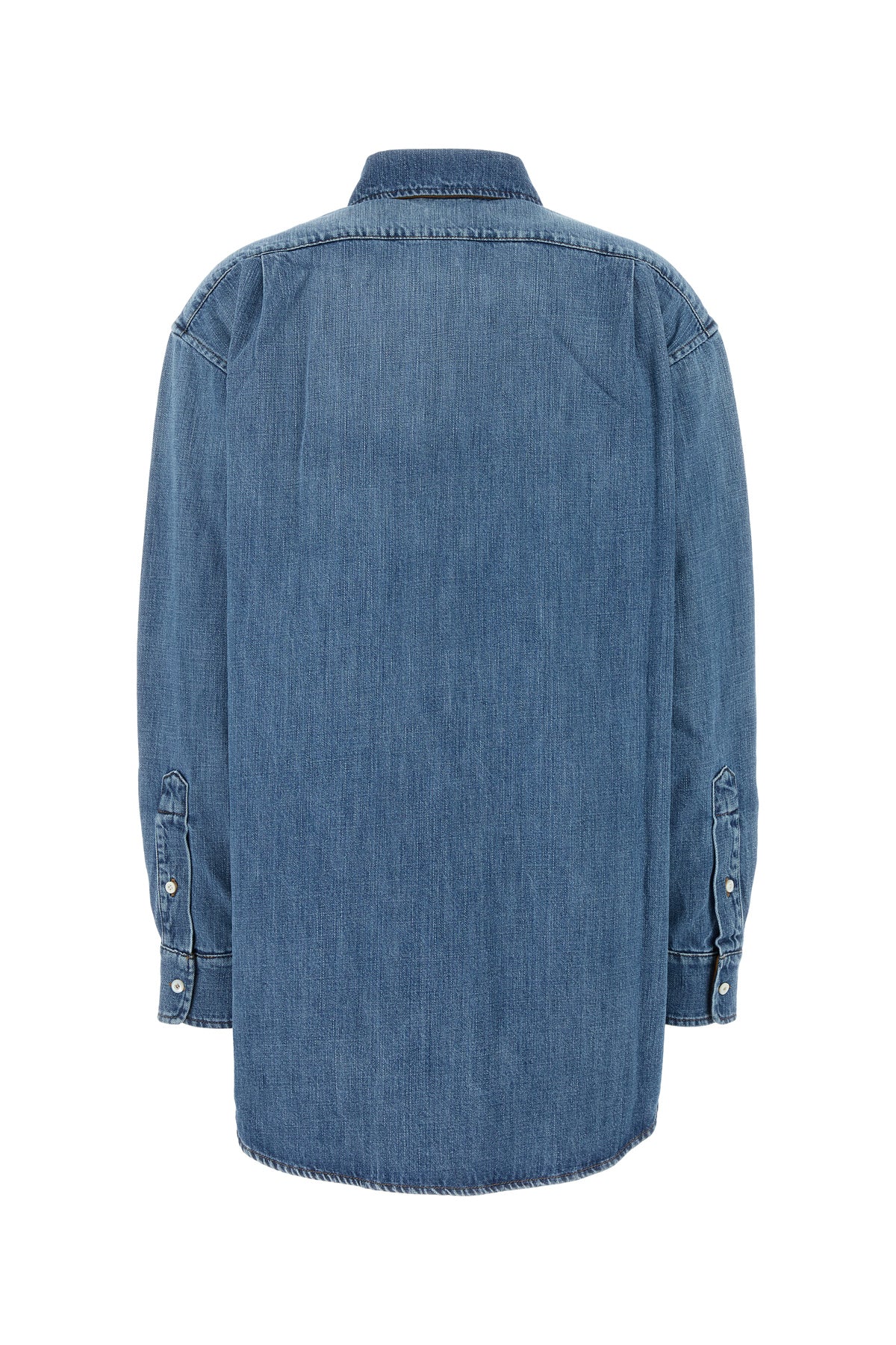 Oversize shirt realized in stonewashed pure cotton denim enriched by tonal logoed patch on the chest.