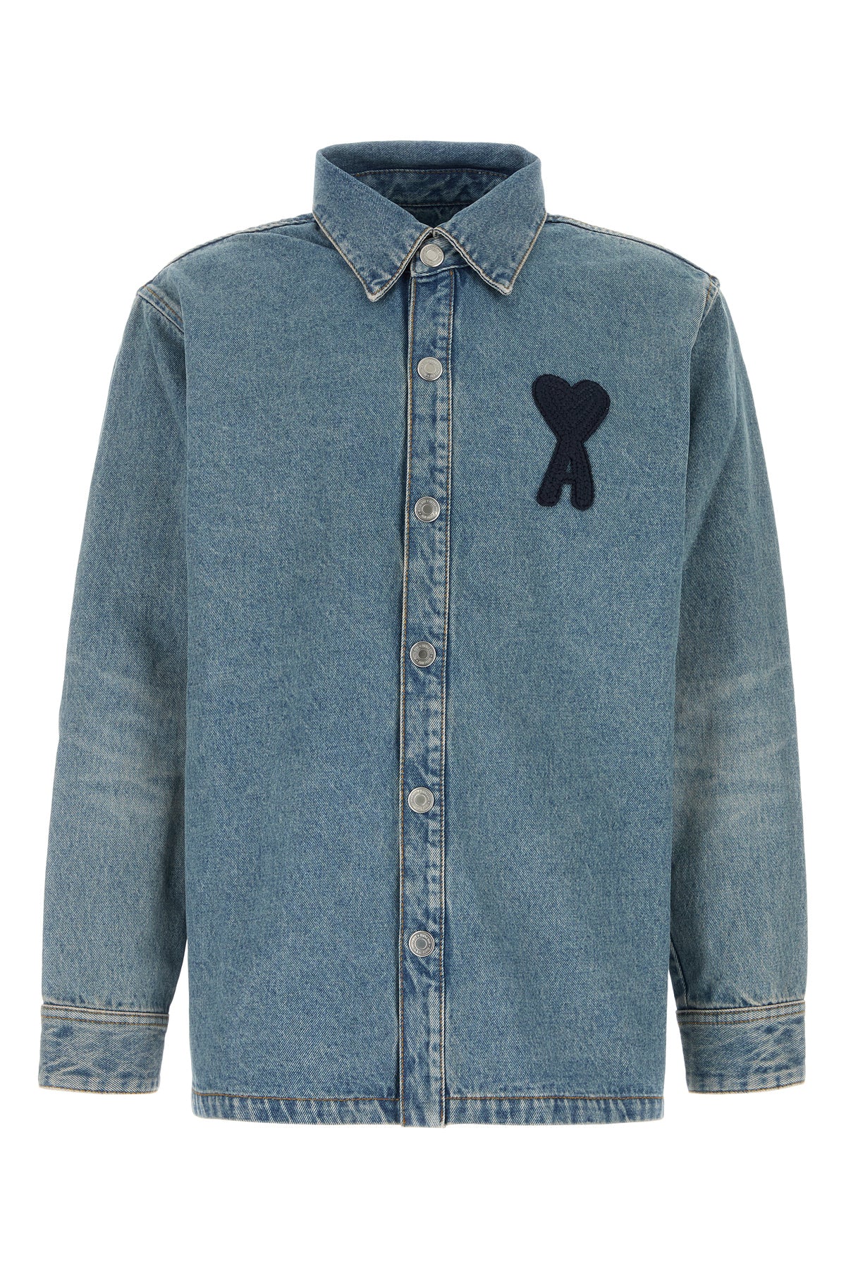 Shirt realized in vintage-effect pure cotton denim enriched by Ami de Coeur patch on the chest.