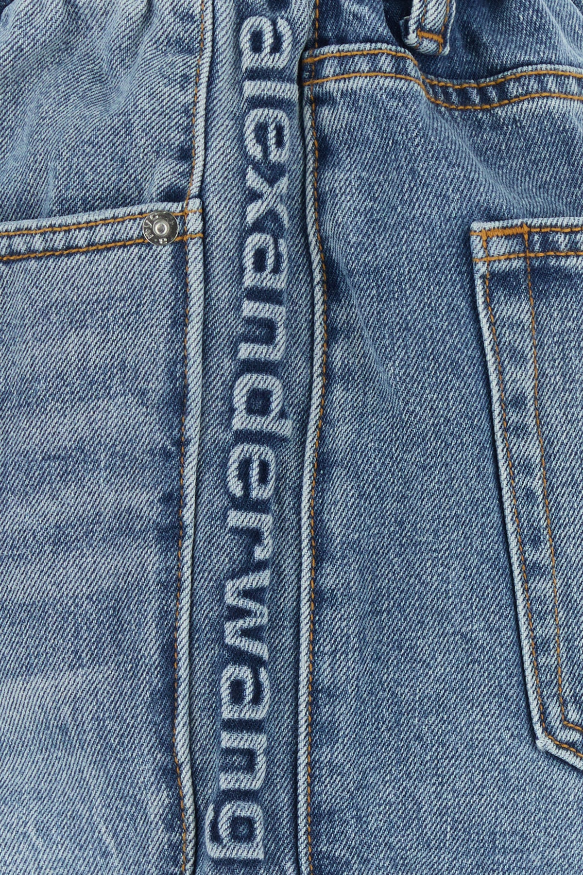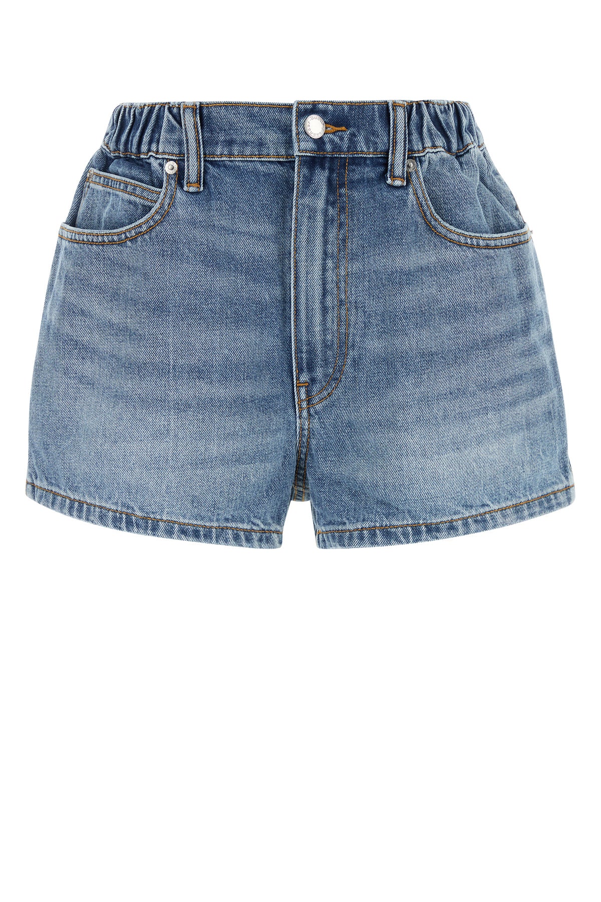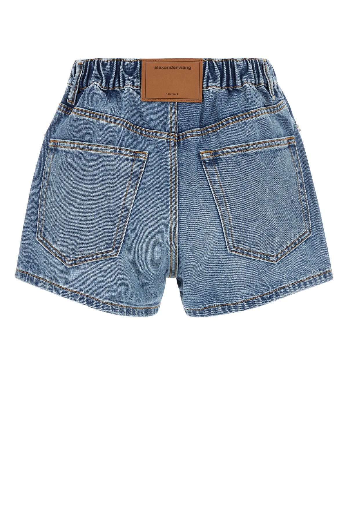 Shorts realized in stonewashed denim enriched by contrasting logoed label at the back.