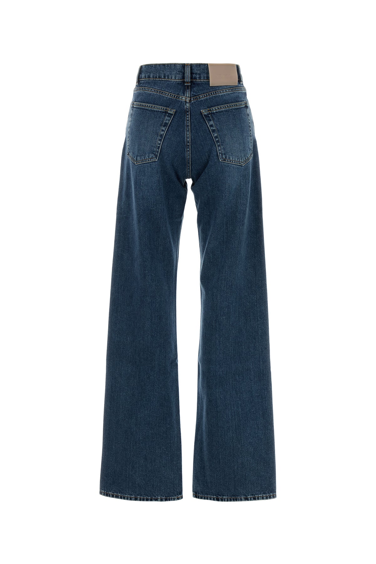 Wide-leg jeans realized in stonewashed pure cotton denim enriched by contrasting logoed label at the back.