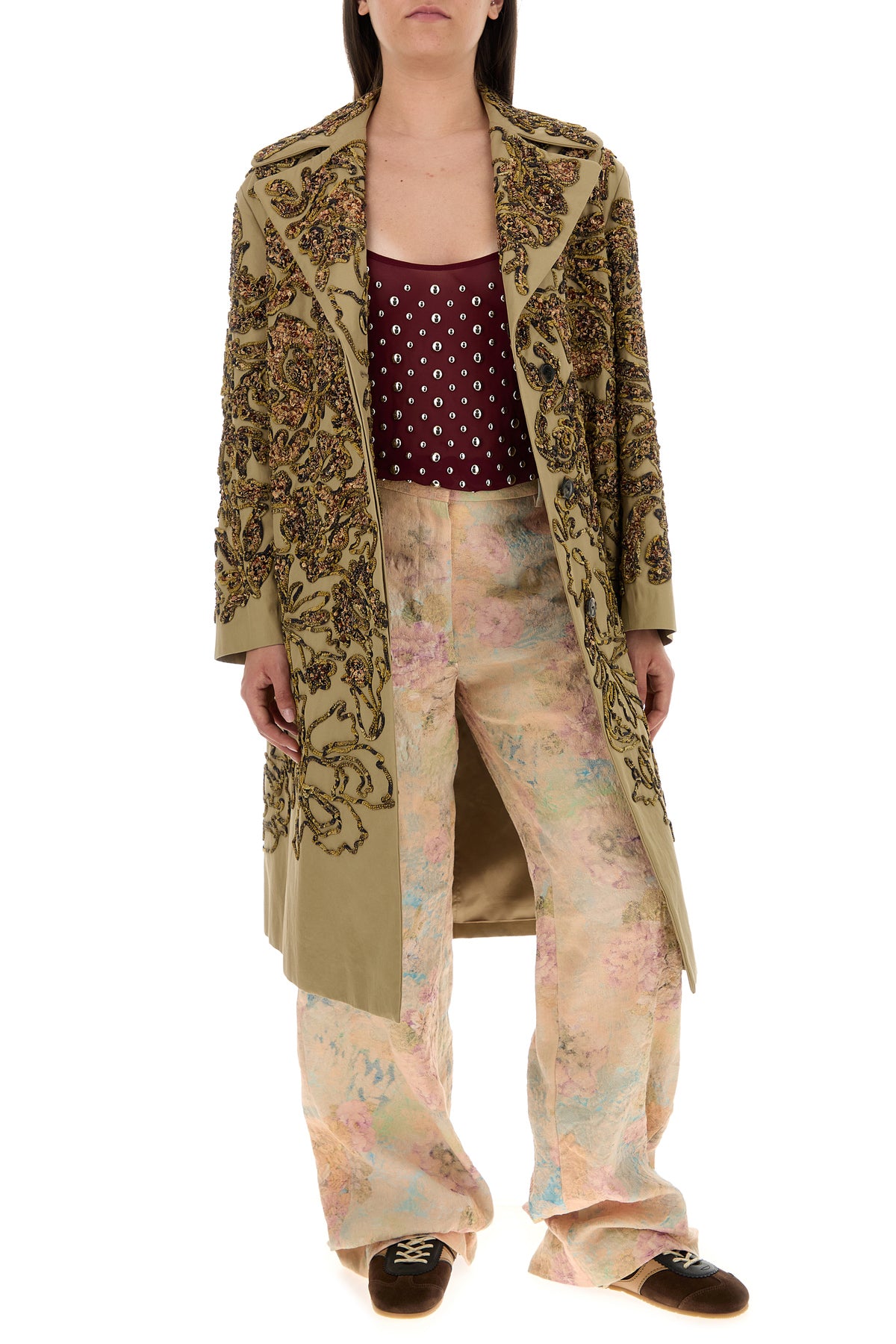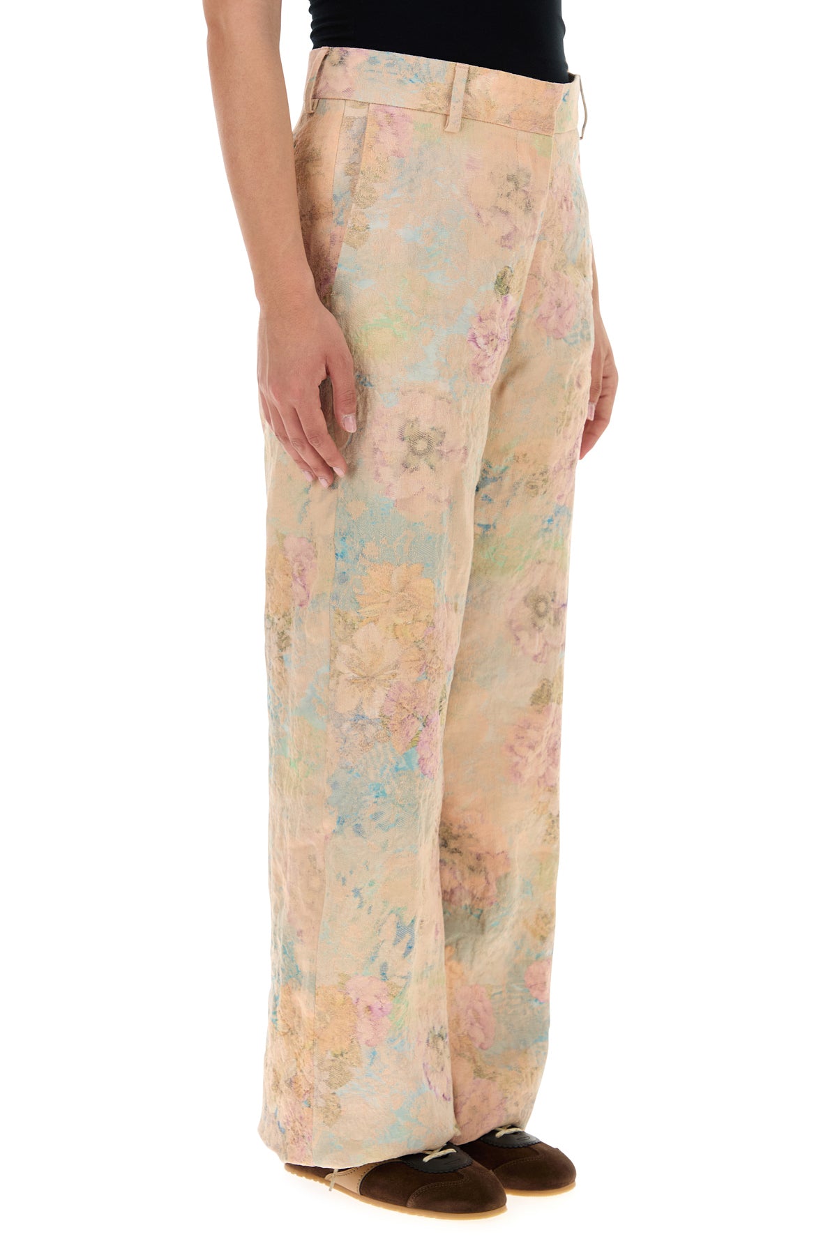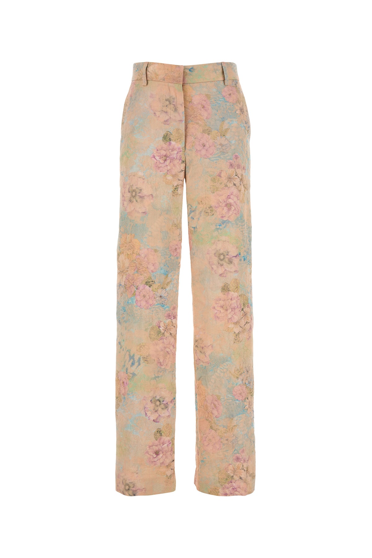Pant realized in linen blend characterized by peculiar embroidery on the entire surface.