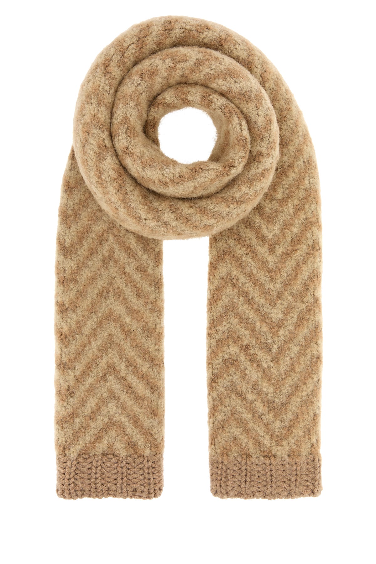 Scarf realized in alpaca blend characterized by chevron embroidery on the entire surface and FF embroidery on the hemline.