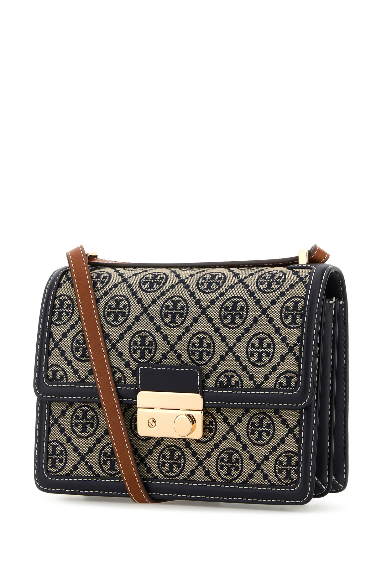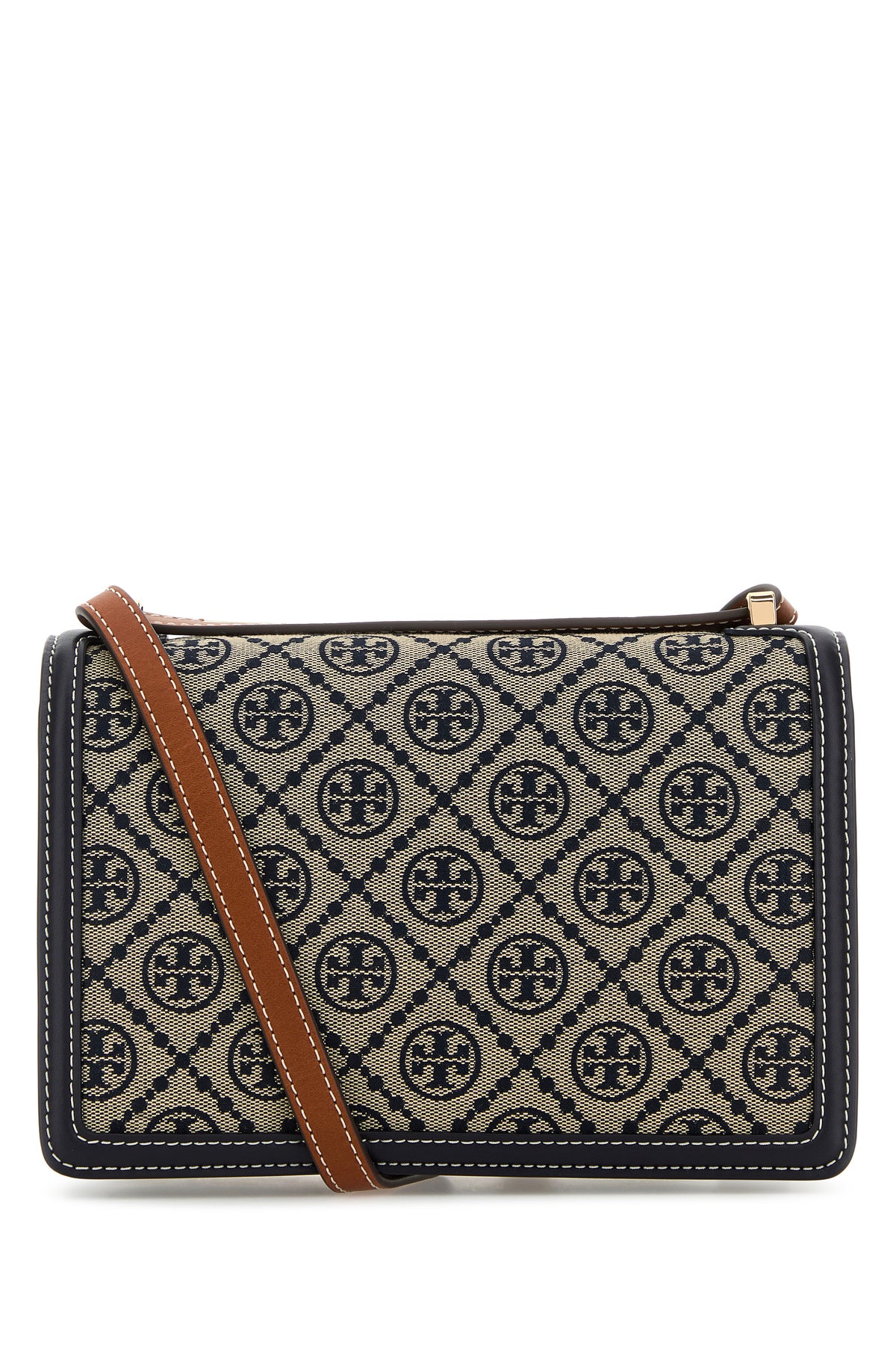 Crossbody bag realized in canvas with leather insert on the trimmings characterized by logoed embroidery on the entire surface.