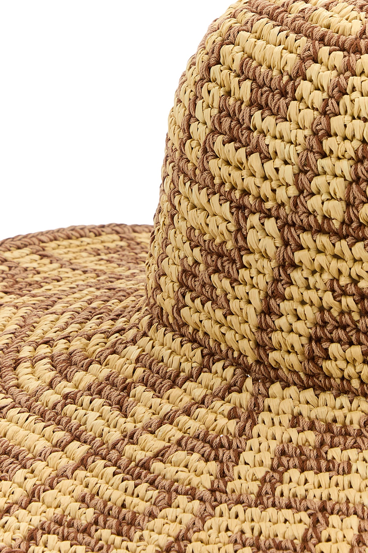 Hat realized in woven cotton blend and raffia characterized by FF embroidery on the entire surface.
