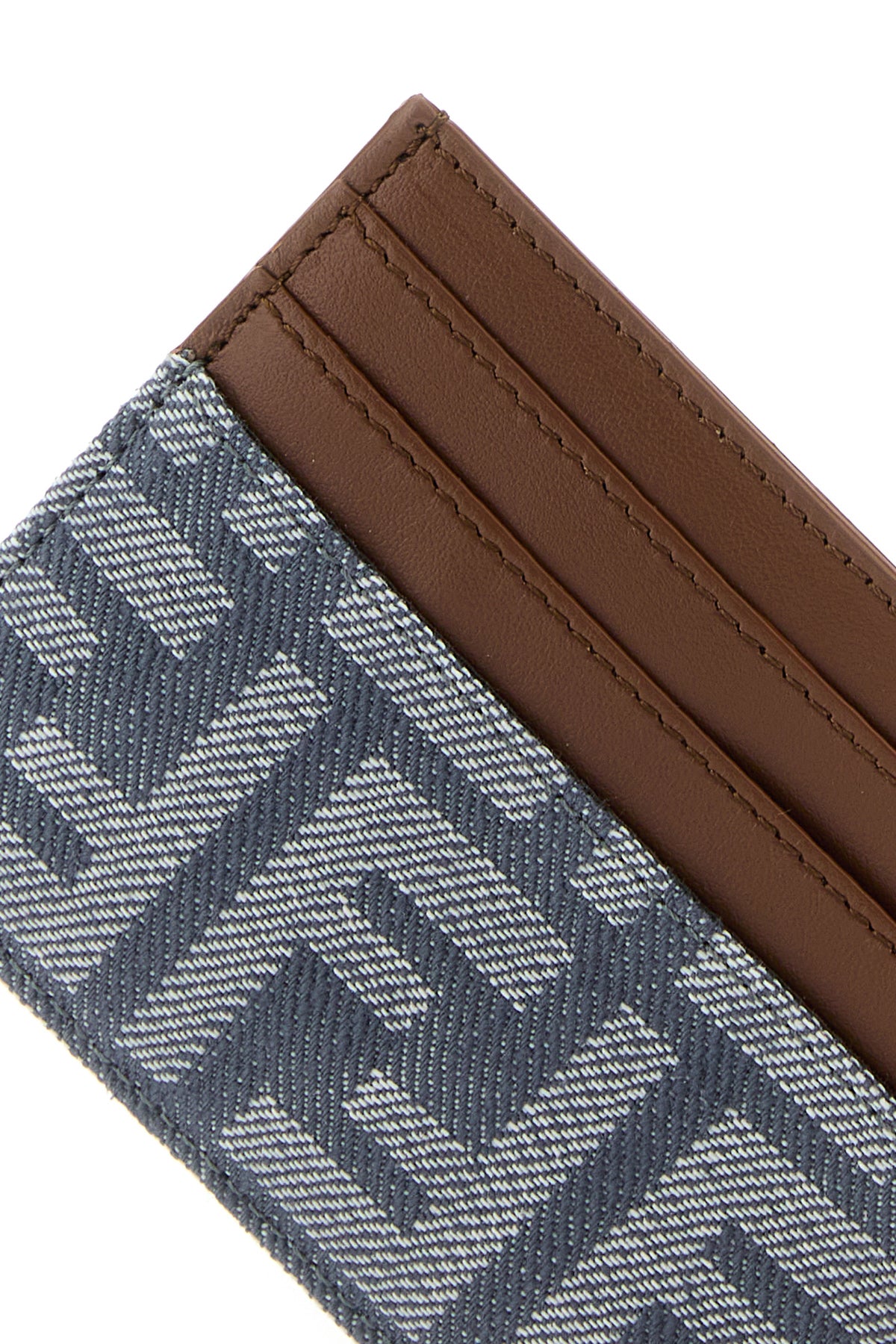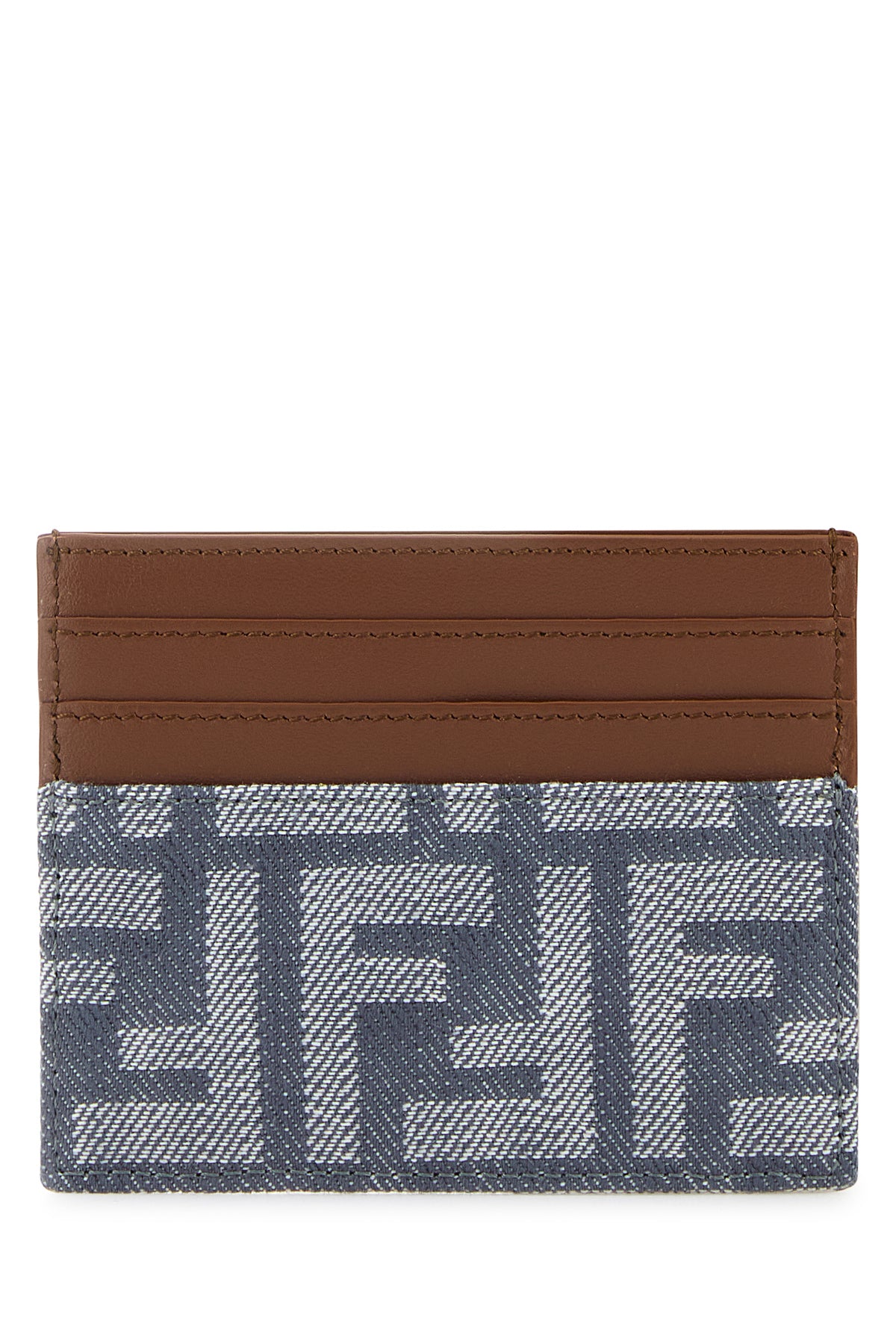 Card holder realized in denim characterized by FF embroidery on the entire surface.