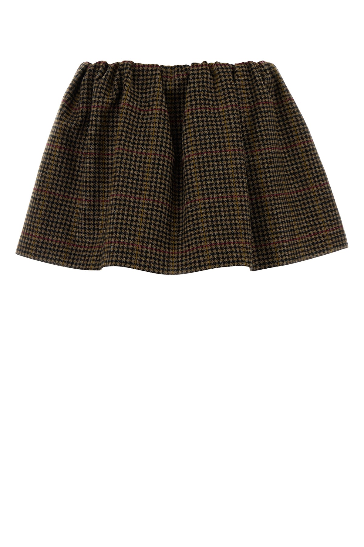 Flared mini skirt realized in pure virgin wool houndstooth) characterized by checked motif embroidery on the entire surface enriched by logoed patch on the hemline.