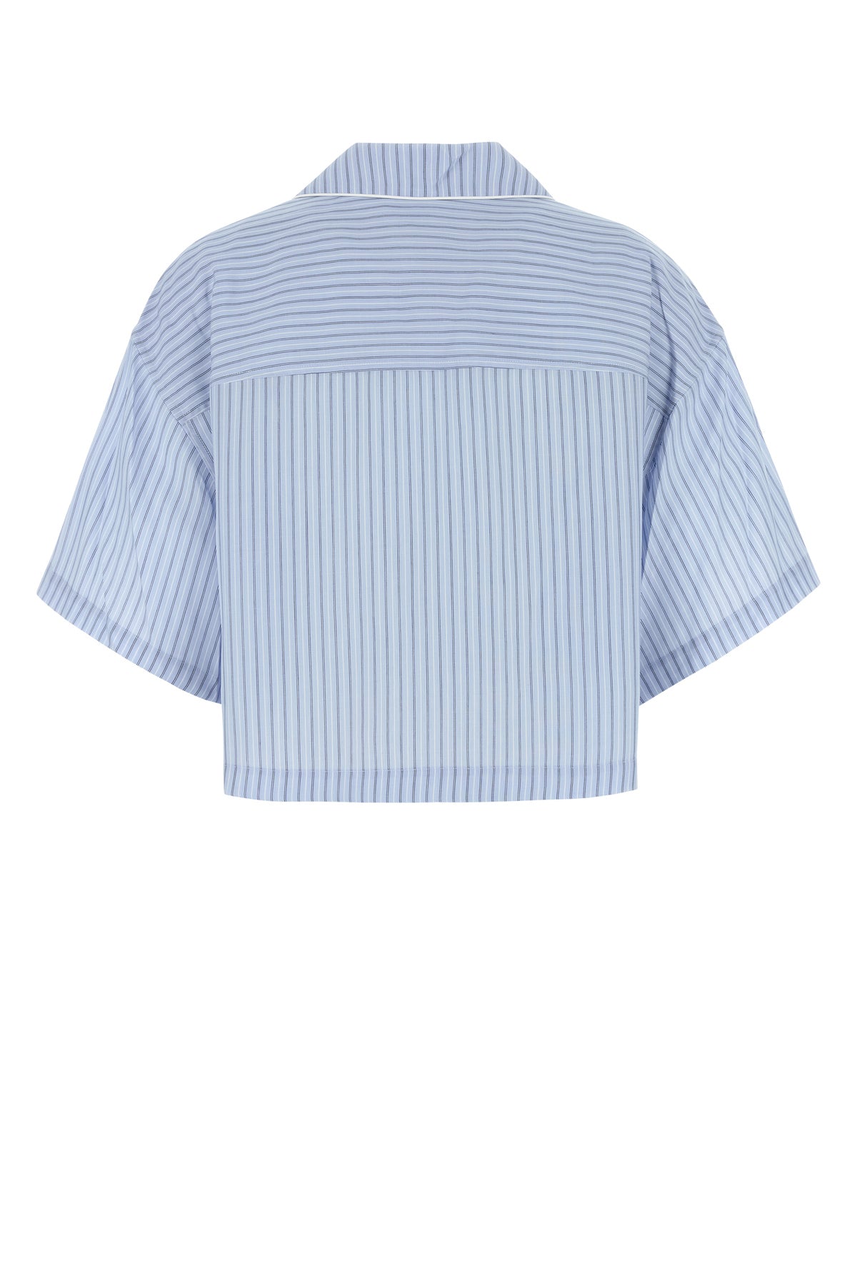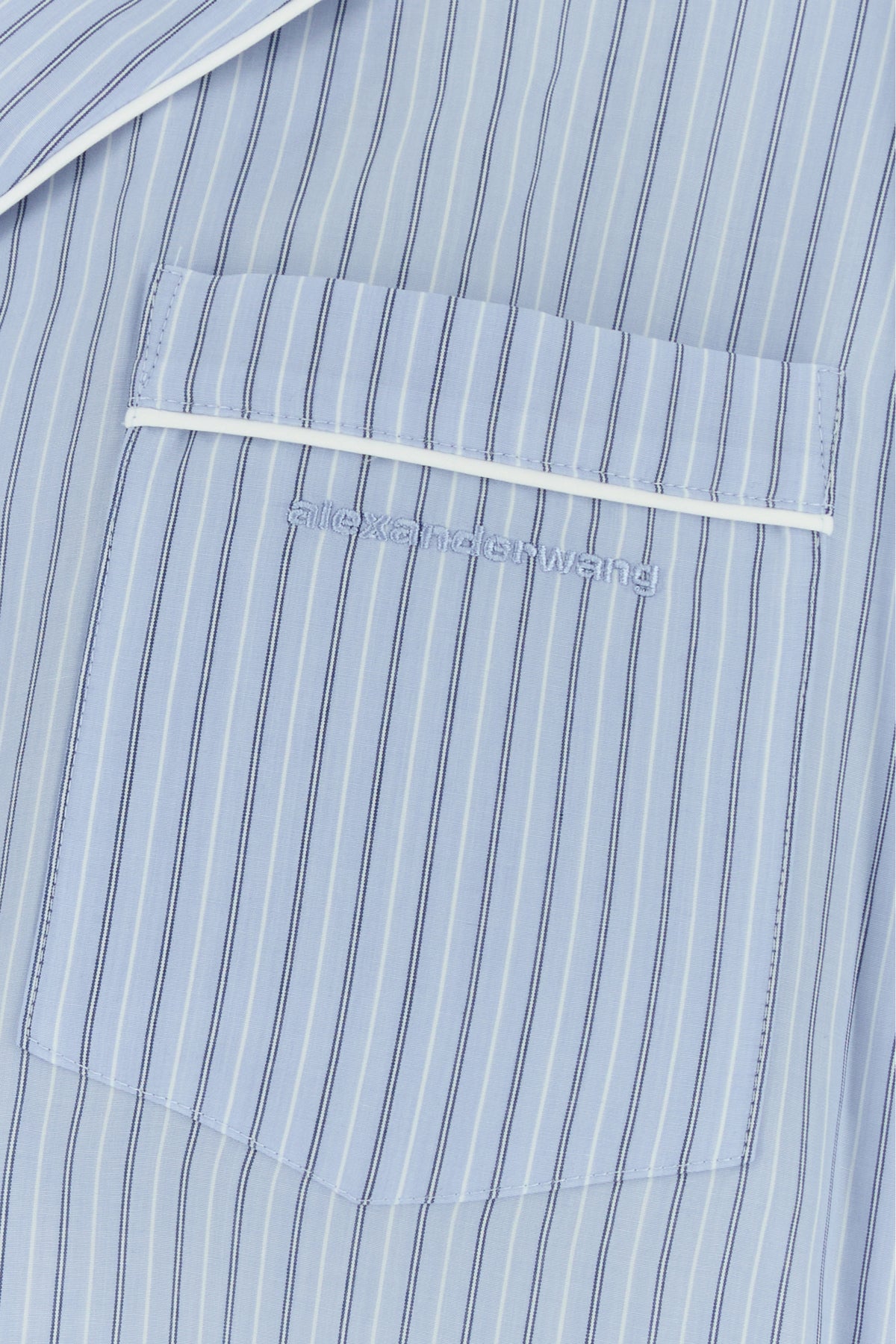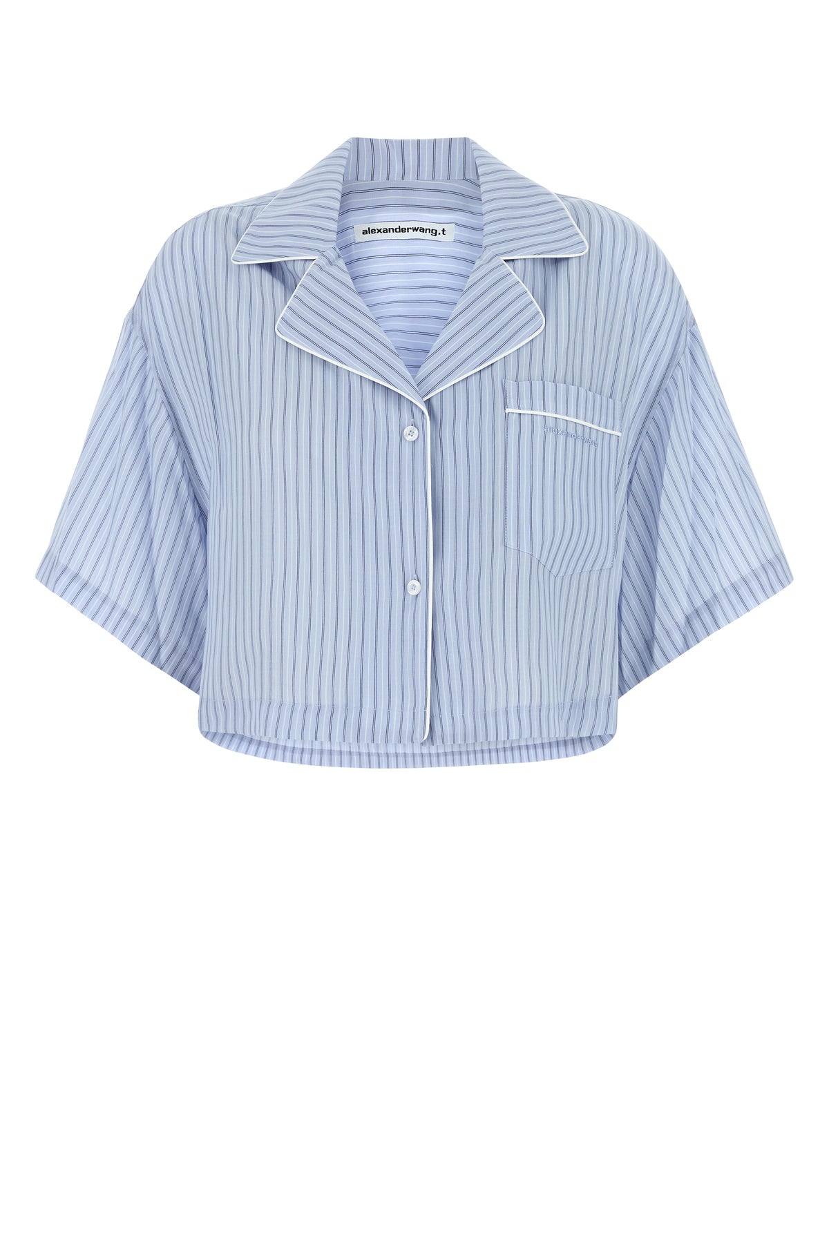 Short-sleeves shirt realized in lyocell characterized by striped embroidery on the entire surface and embroidered logo on the chest.