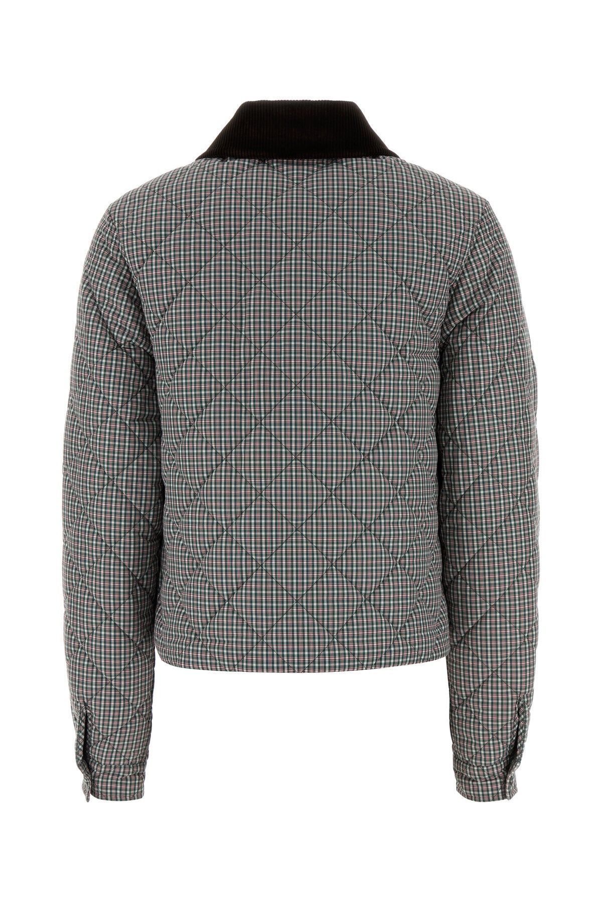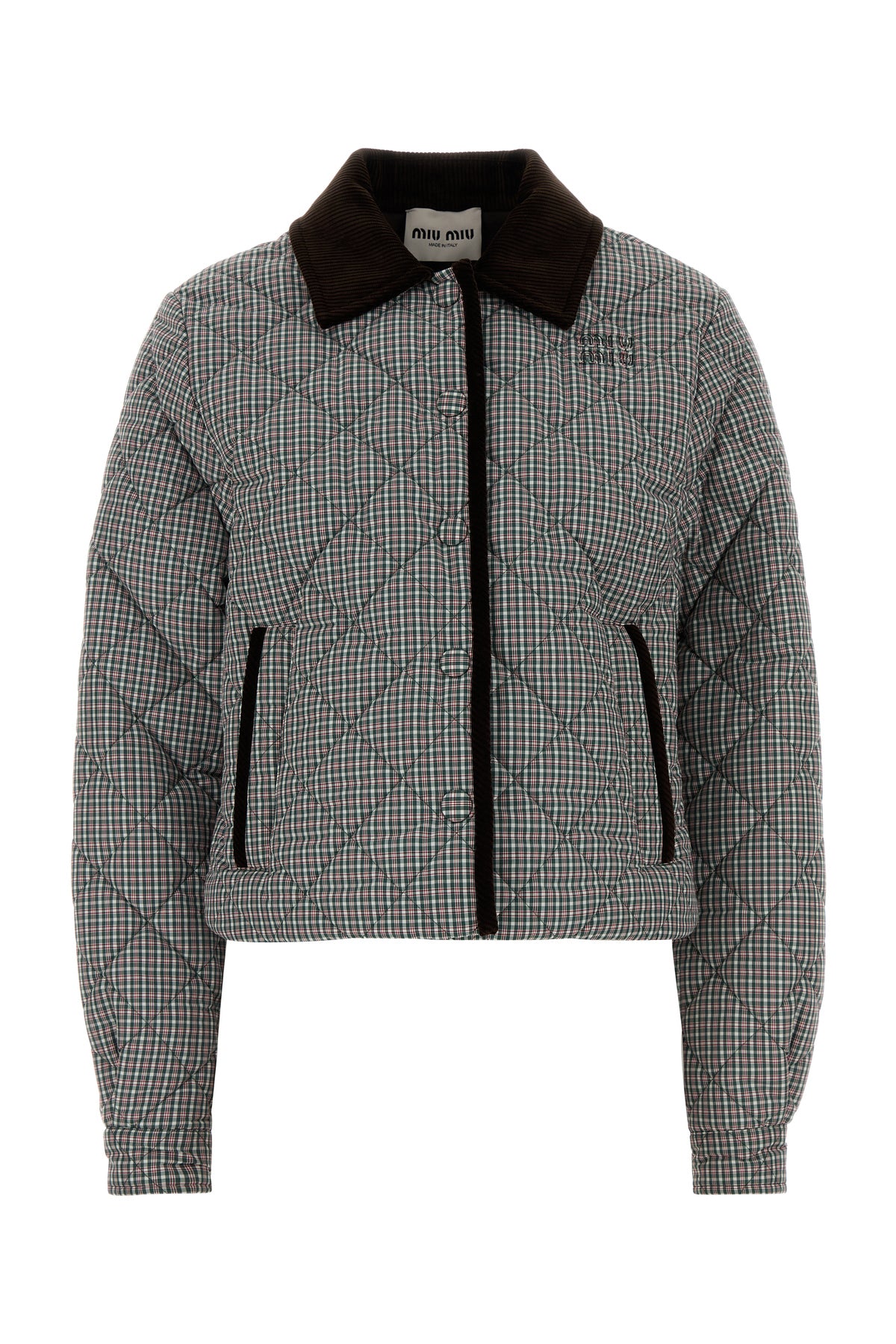 Jacket realized in recycled nylon blend characterized by checked embroidery on the entire surface enriched by logoed patch on the chest.