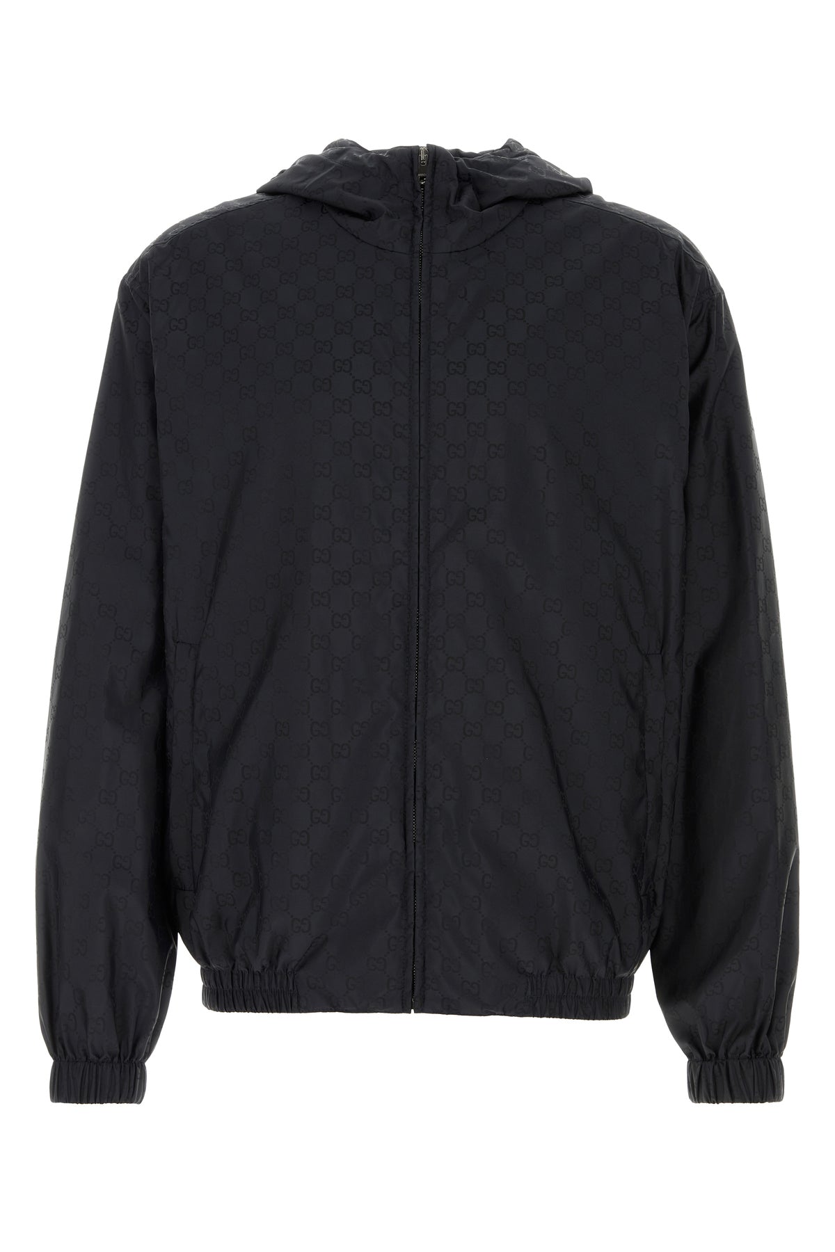 Jacket realized in nylon characterized by GG embroidery on the entire surface.
