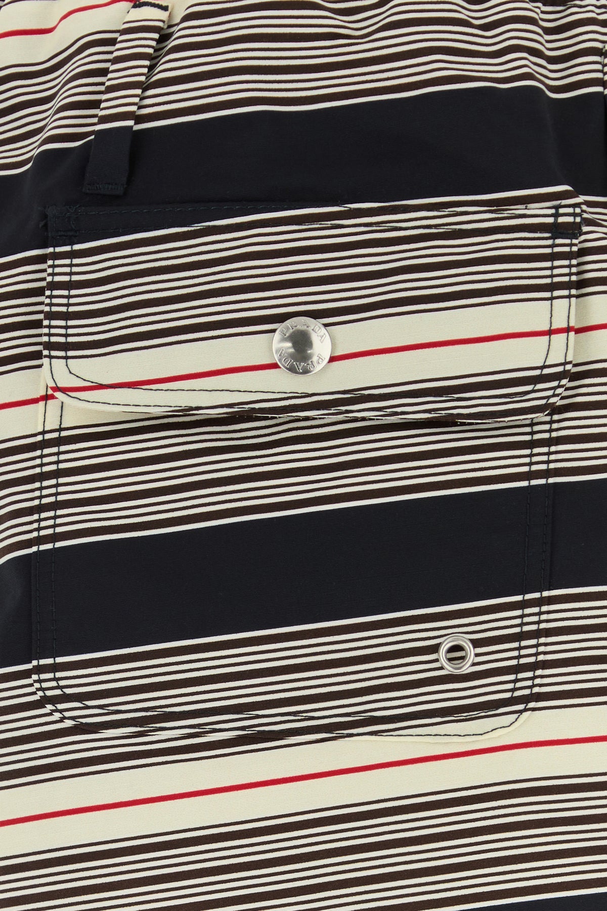Swimming shorts realized in nylon characterized by striped embroidery on the entire surface.