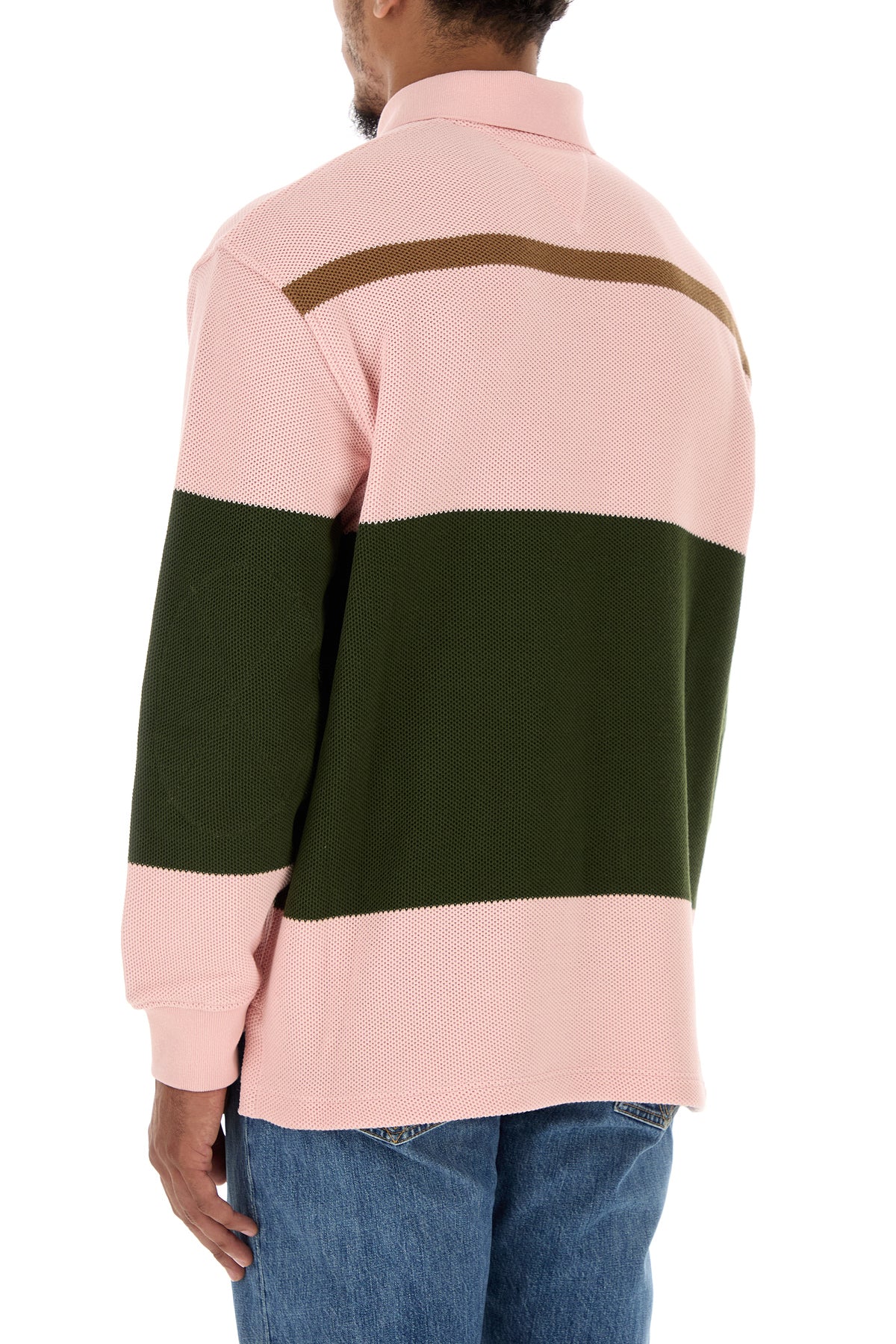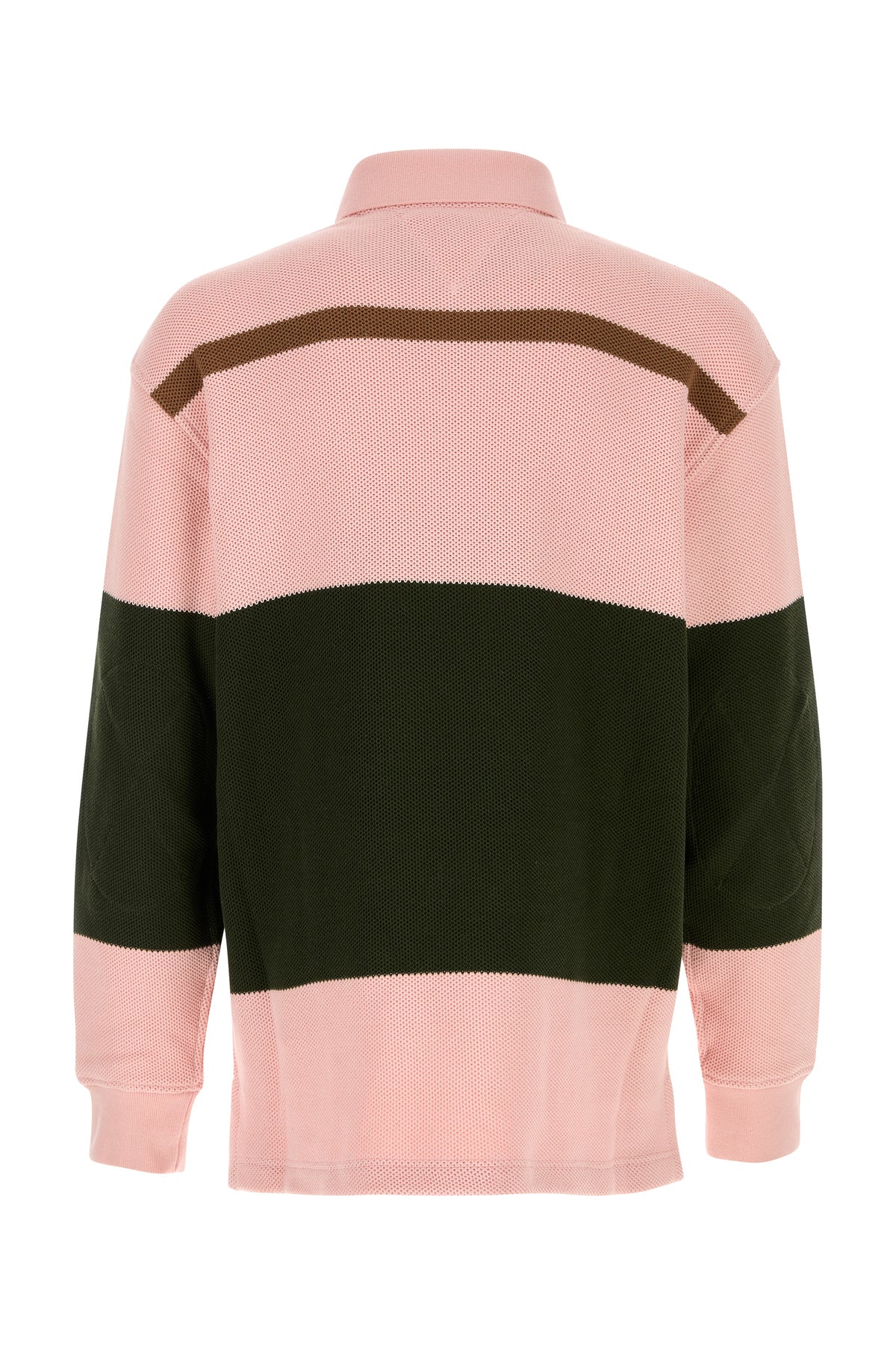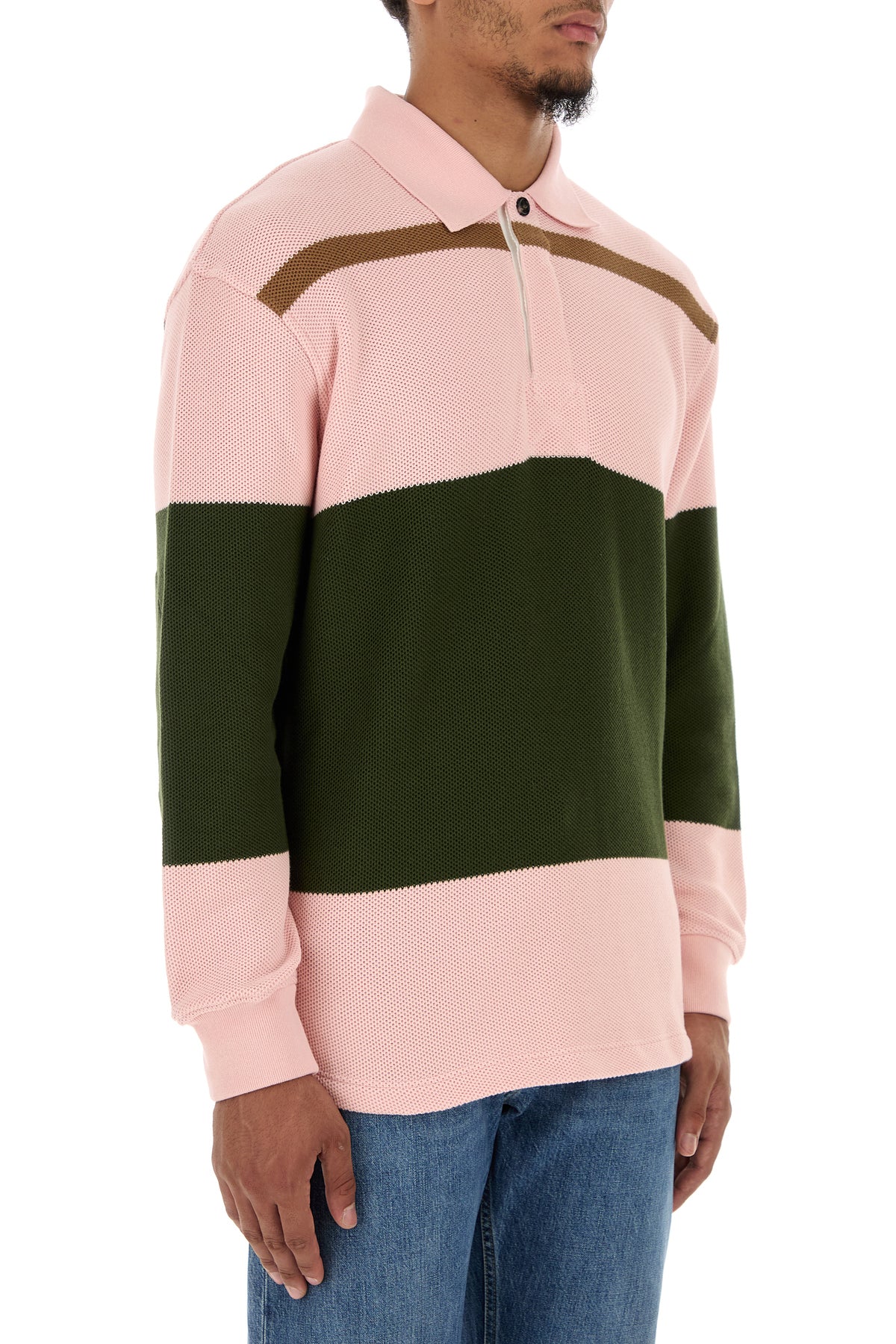 Polo shirt realized in pure cotton piquet characterized by striped embroidery on the entire surface.