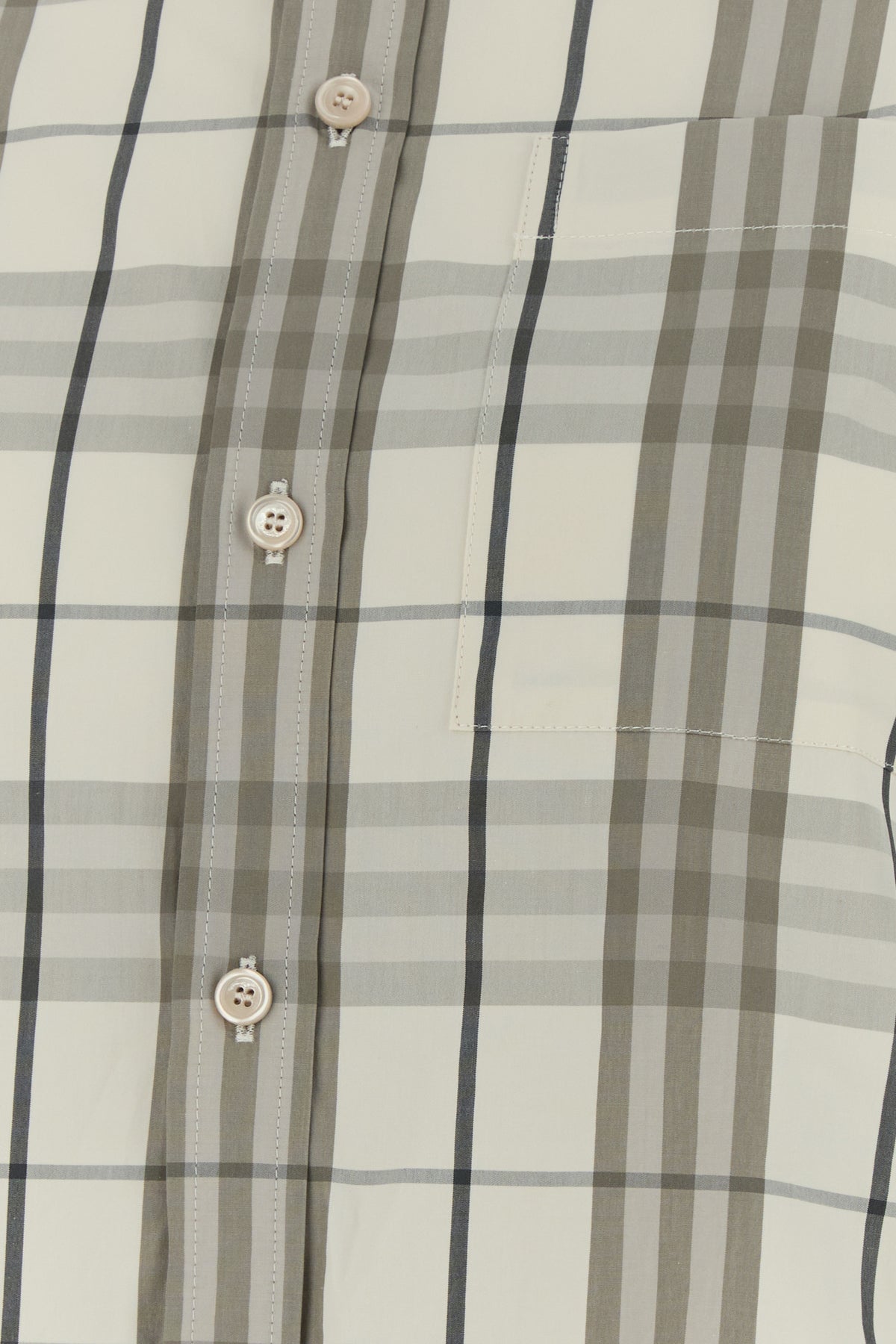 Short-sleeves shirt realized in pure cotton poplin characterized by Burberry Check embroidery on the entire surface.
