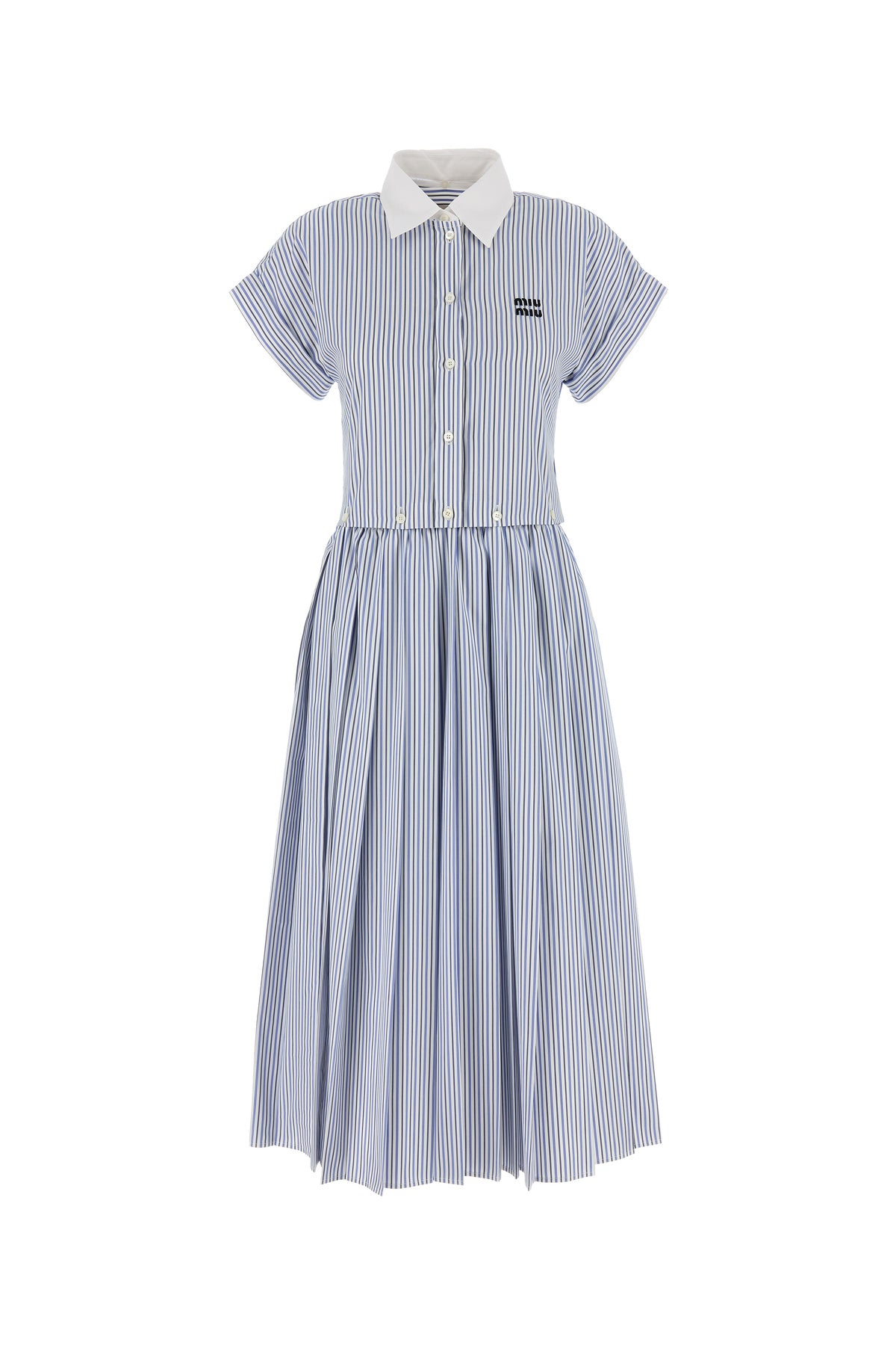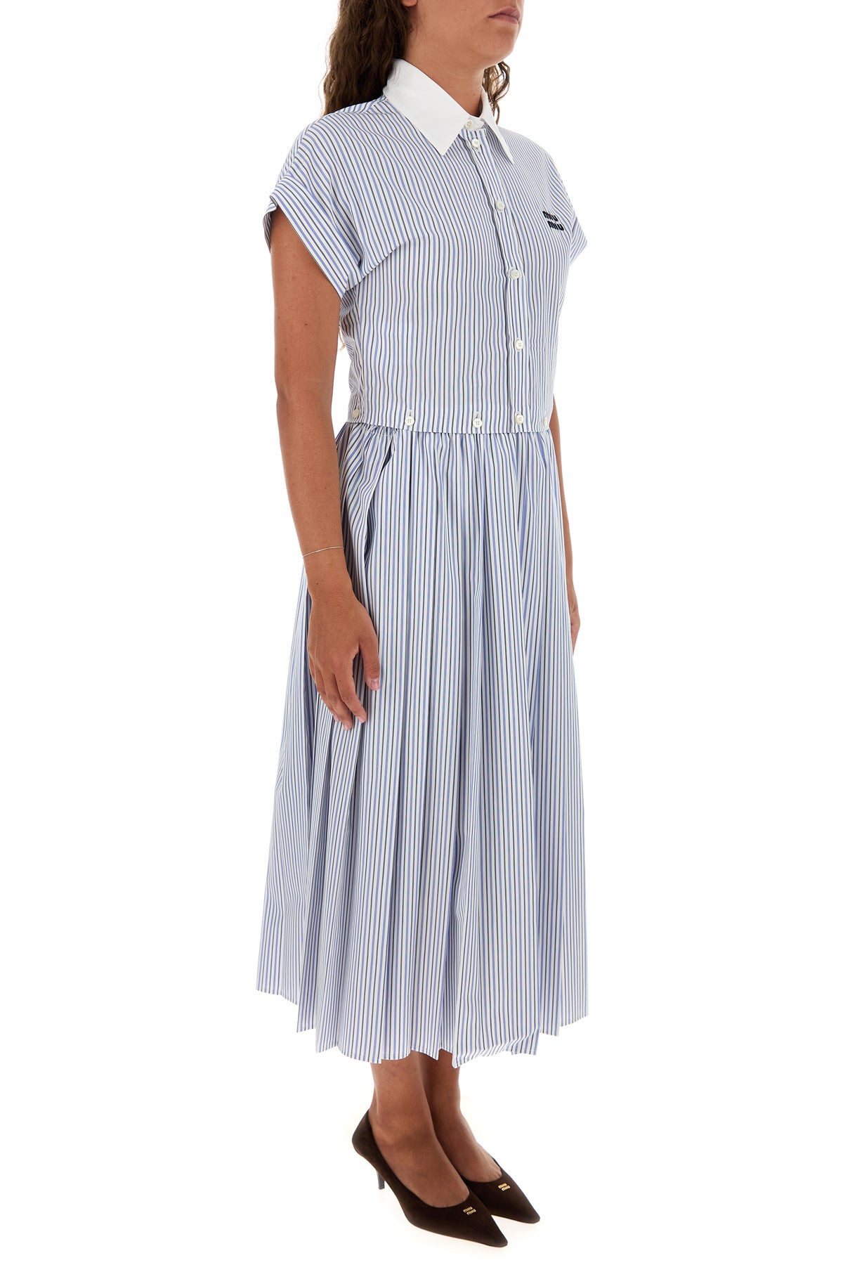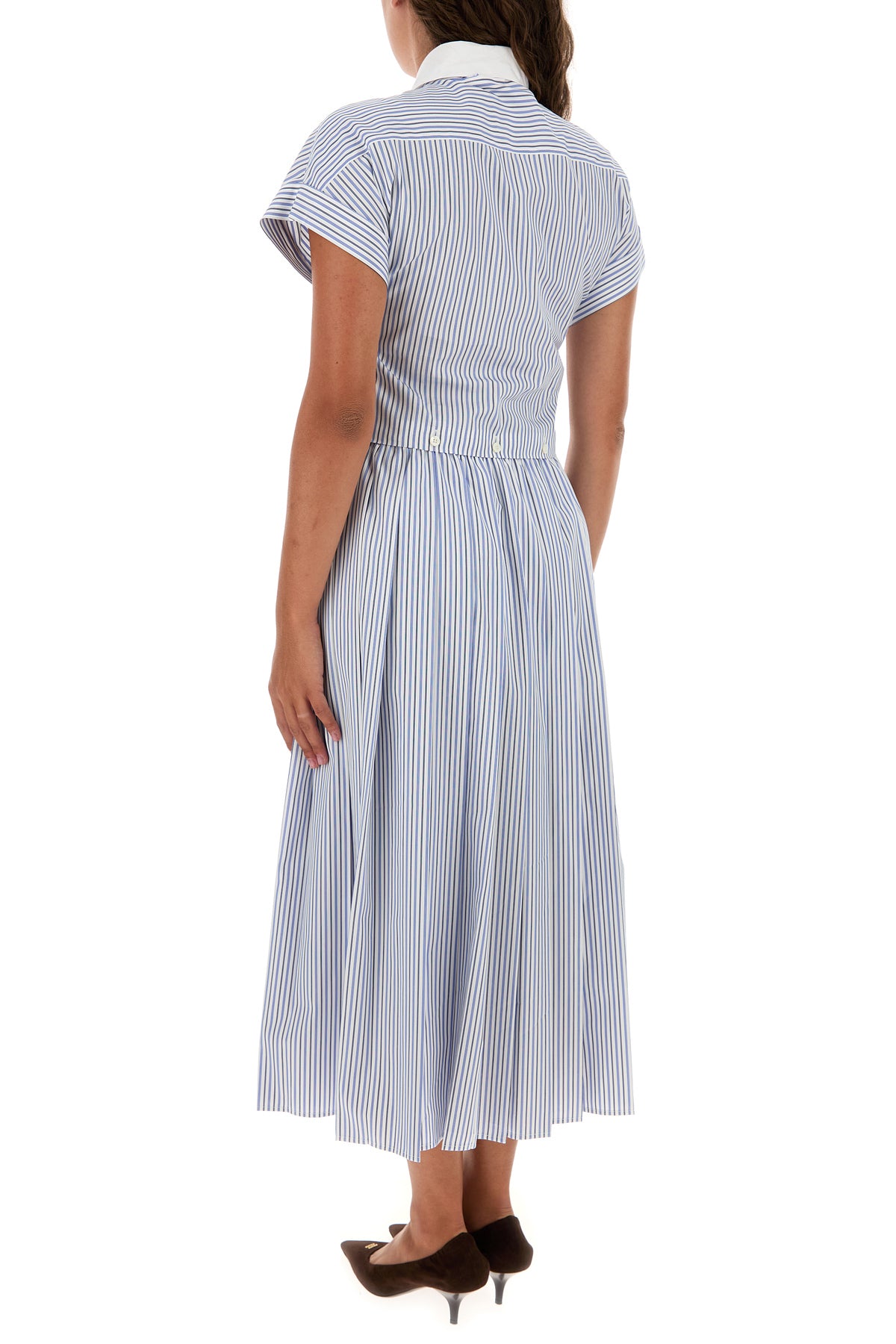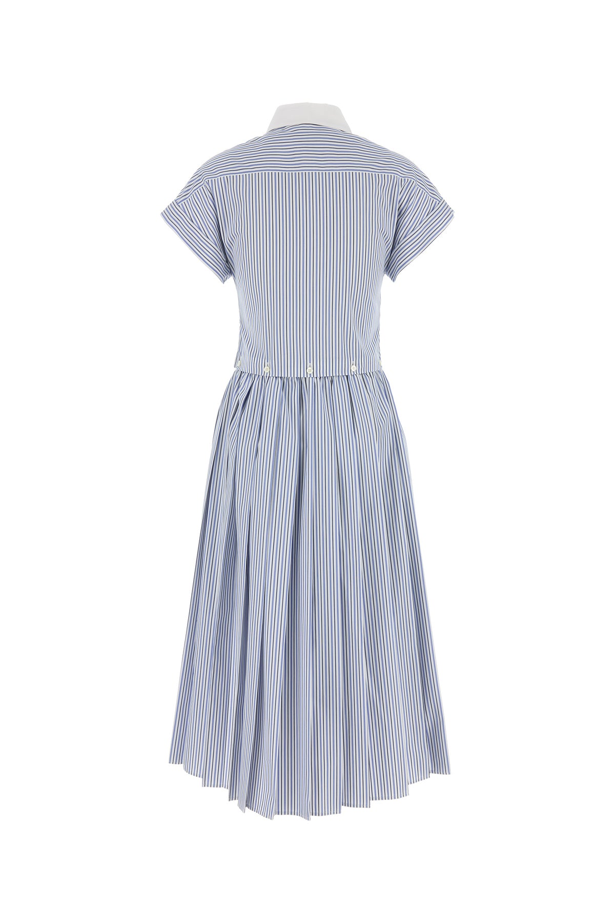 Shirt dress realized in pure cotton poplin characterized by striped embroidery on the entire surface and embroidered logo on the chest.