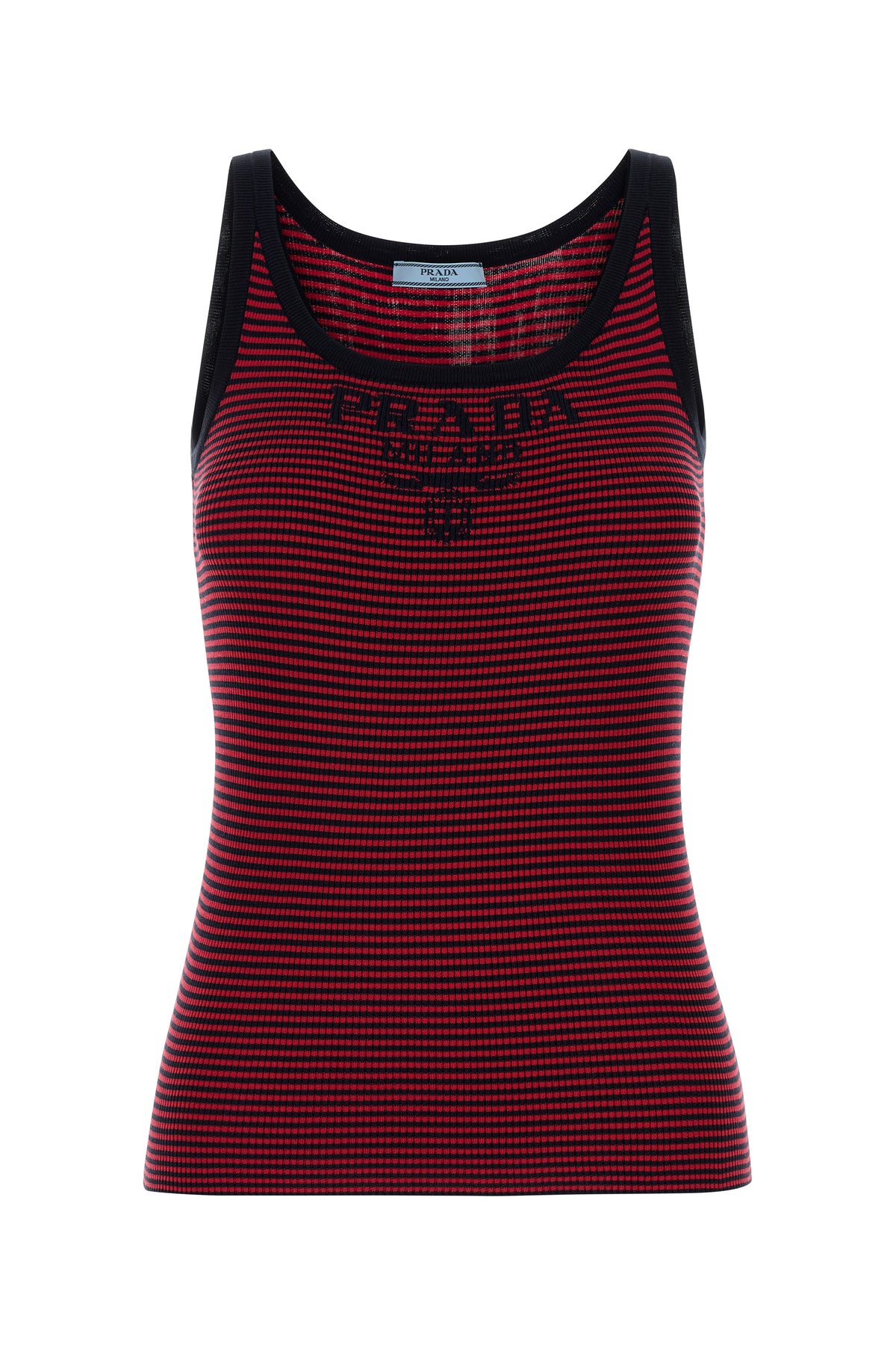 Tank top realized in pure recycled silk characterized by embroidered logo at the front and striped embroidery on the entire surface.