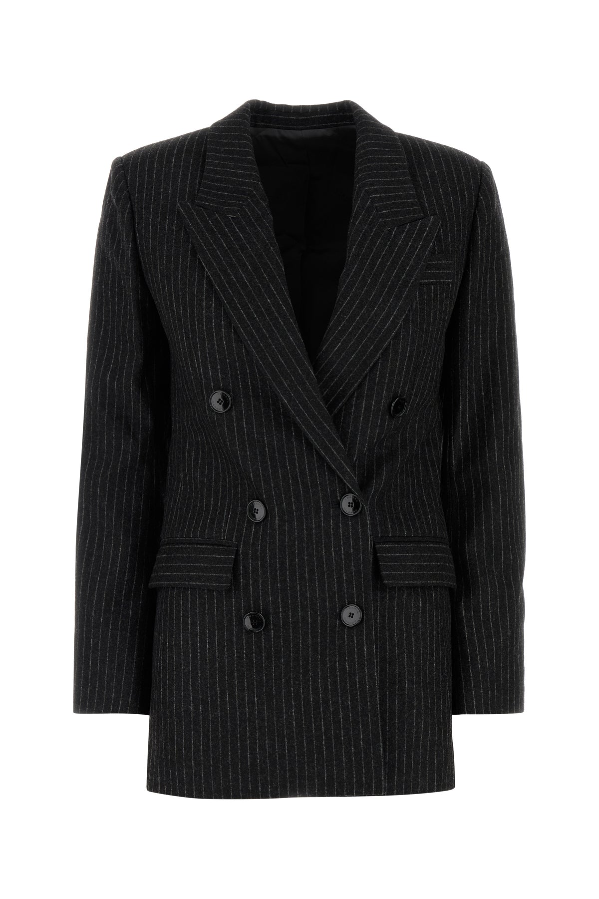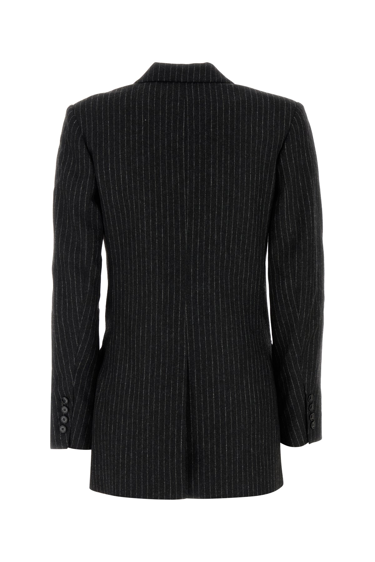 Blazer realized in stretch wool blend characterized by pinstriped motif embroidery on the entire surface.
