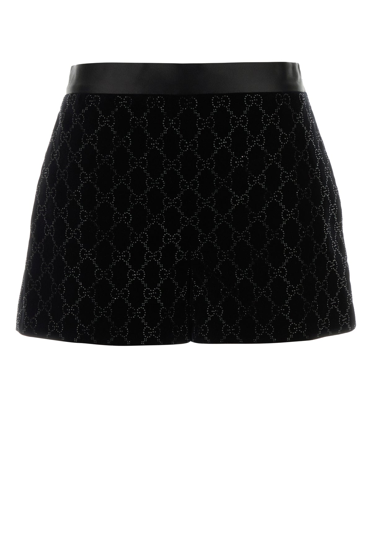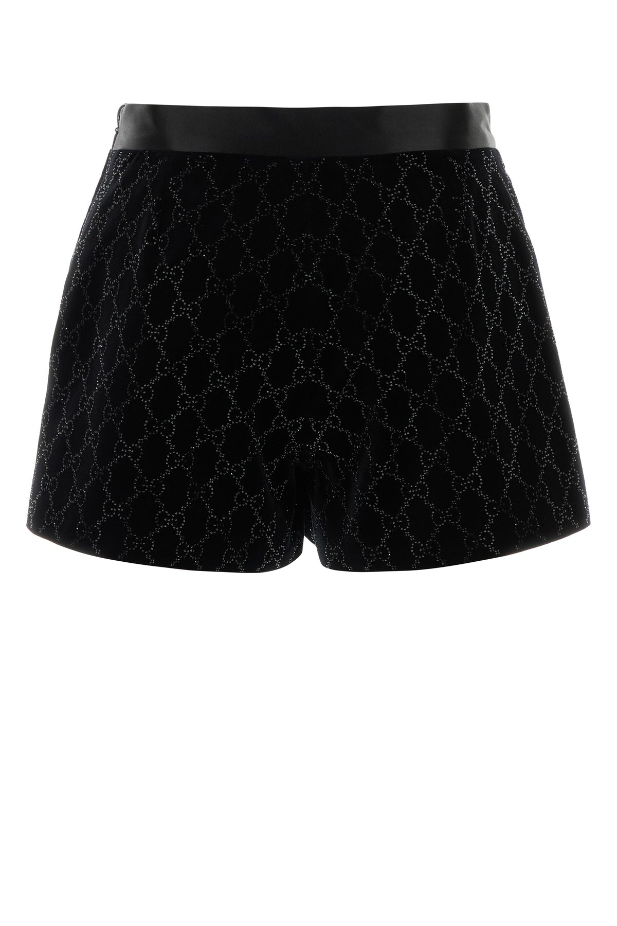 Shorts realized in pure silk velvet enriched by rhinestones GG motif on the entire surface.